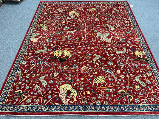 8X10 Afghan Tabrez Red/Navy Handmade Wool Rug # 14612