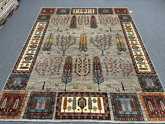 8X10 Afghan Tree of Life Silver Handmade Wool Rug # 14622