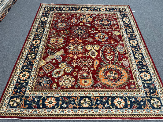 8X10 Afghan Tabrez Red/Navy Handmade Wool Rug # 14612