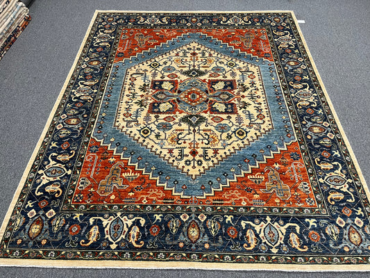 50% OFF SALE8X10 Afghan Heriz Red/Navy Handmade Wool Rug # 14613