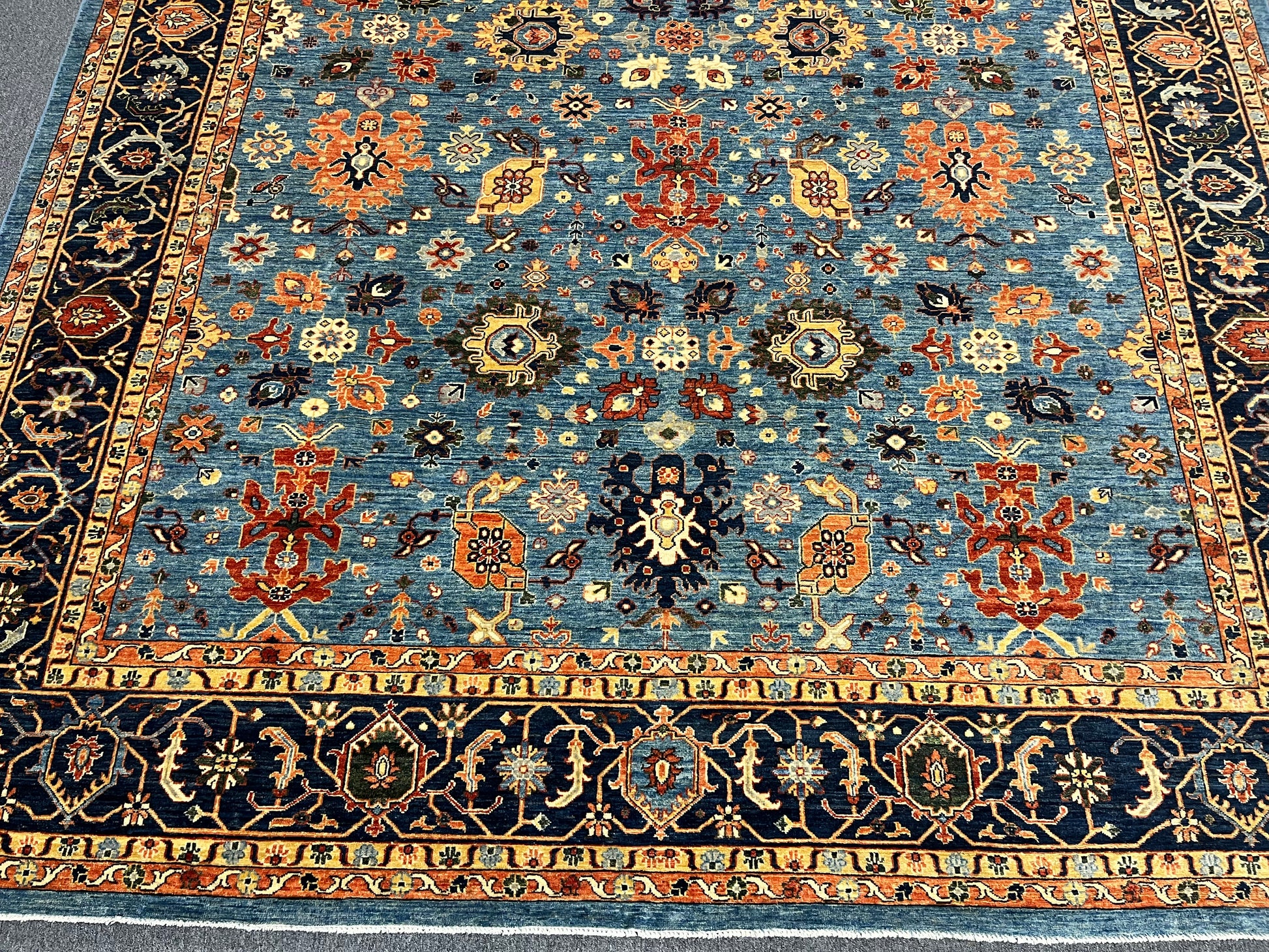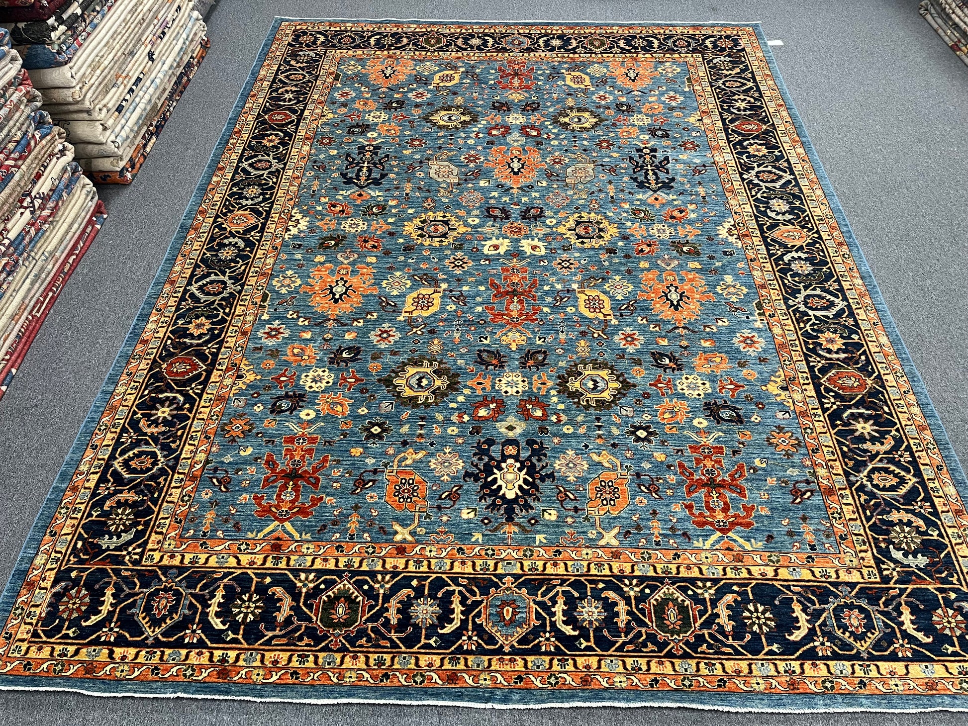 10X14 Afghan Tribal Light Blue Handmade Wool Rug # 14625