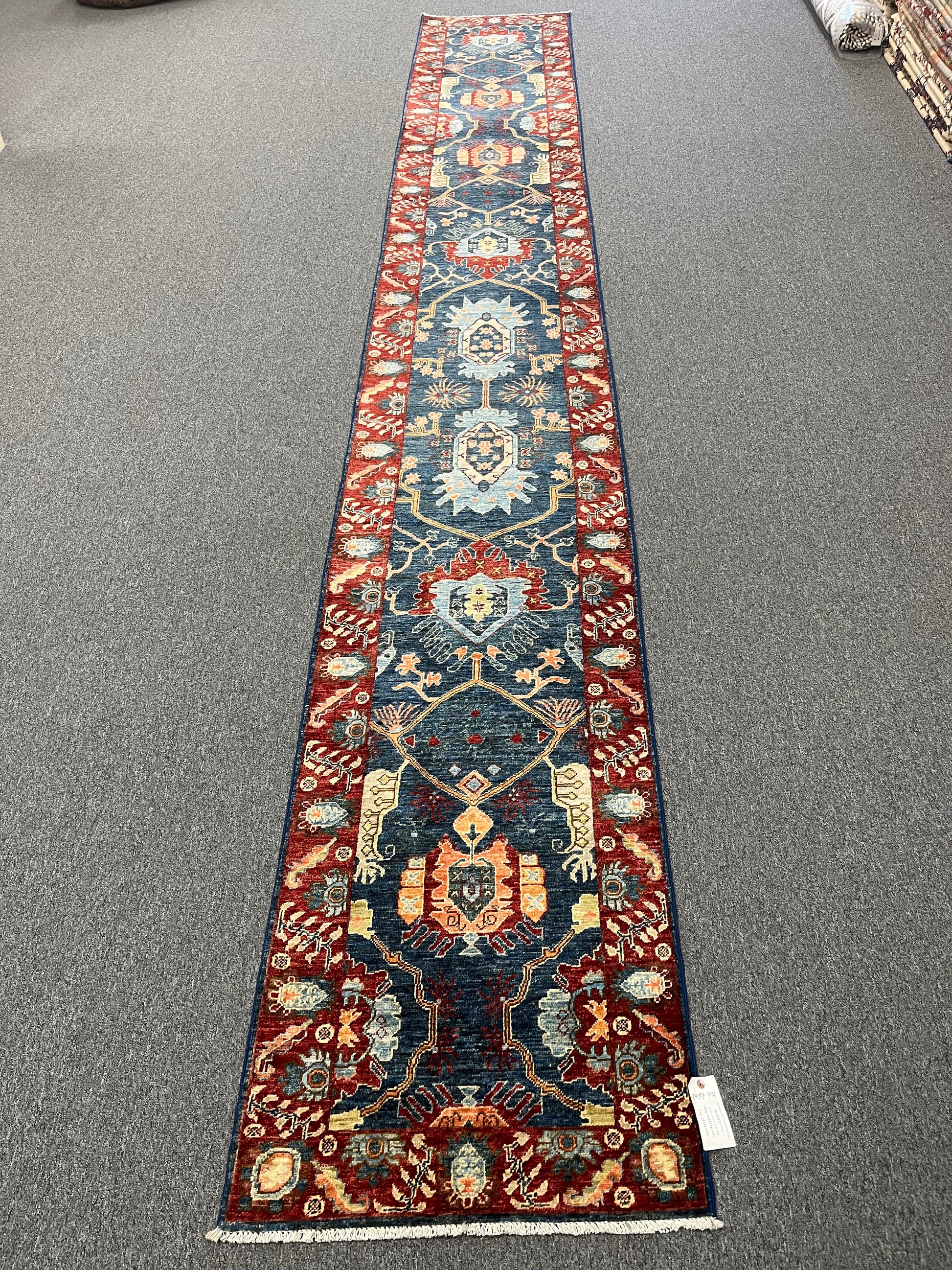 2' 5"X18 Afghan Bijar Handmade Wool Runner Rug # 14197