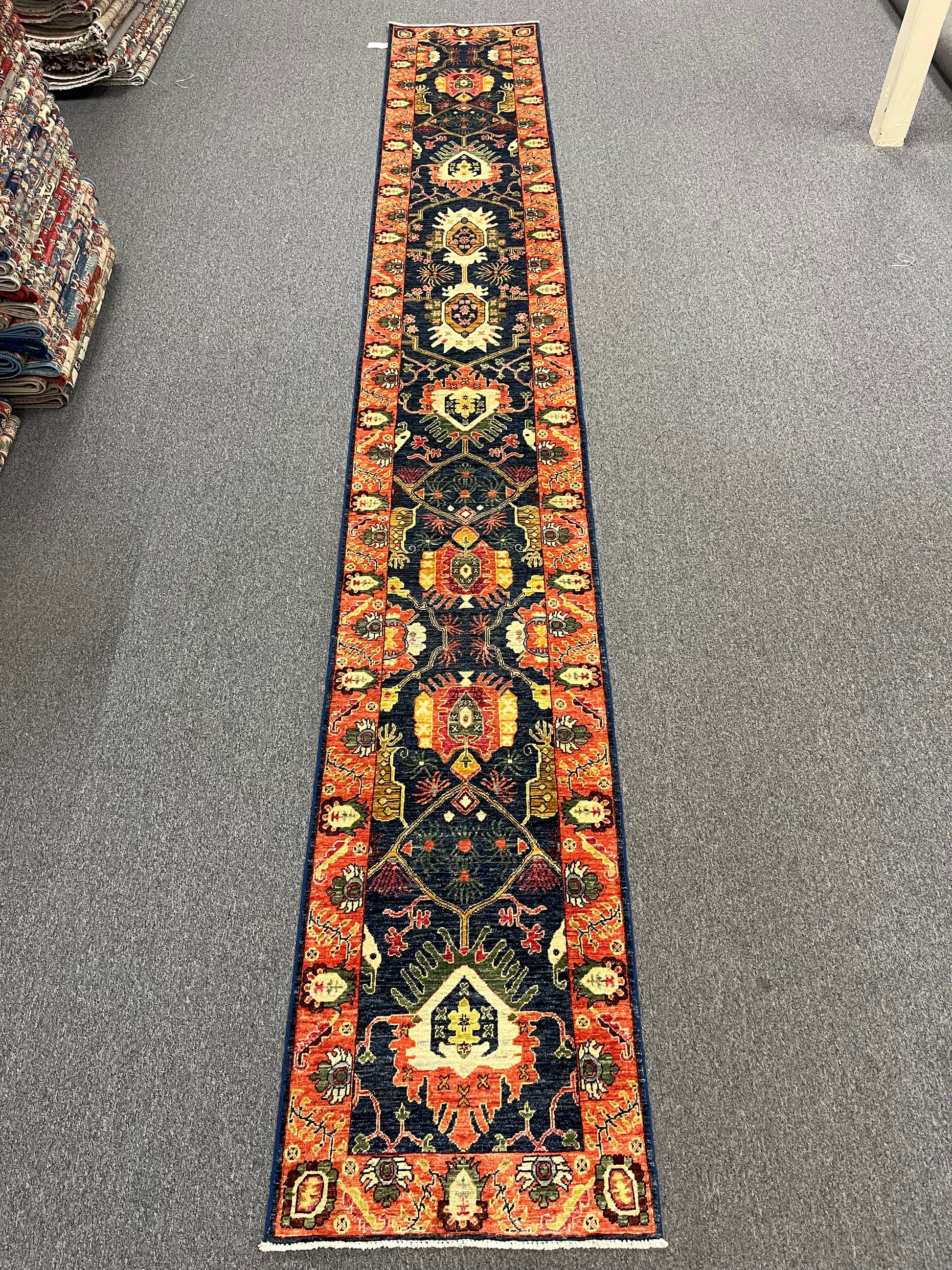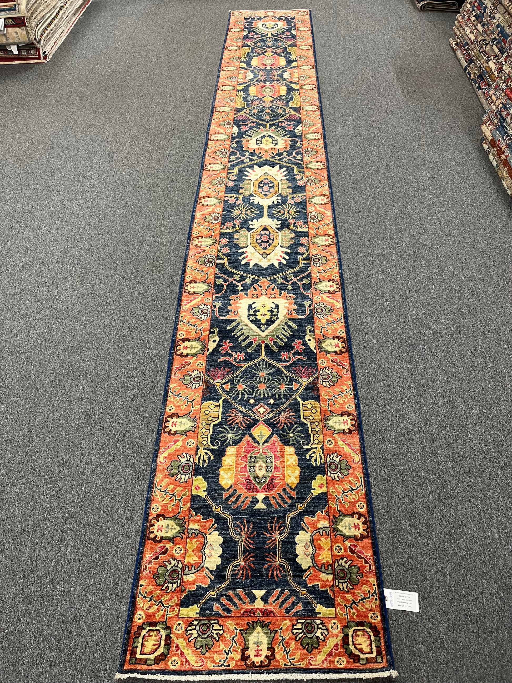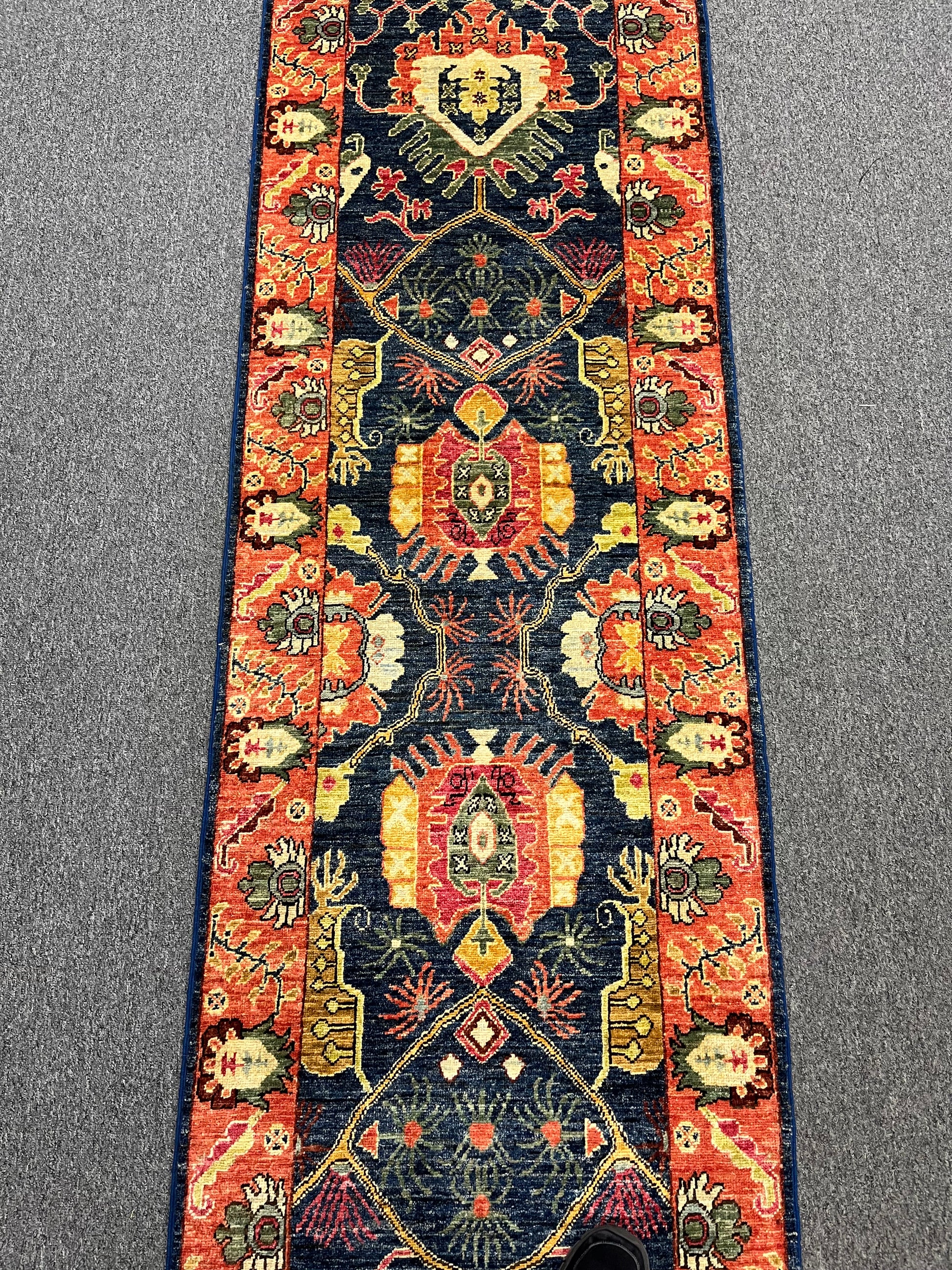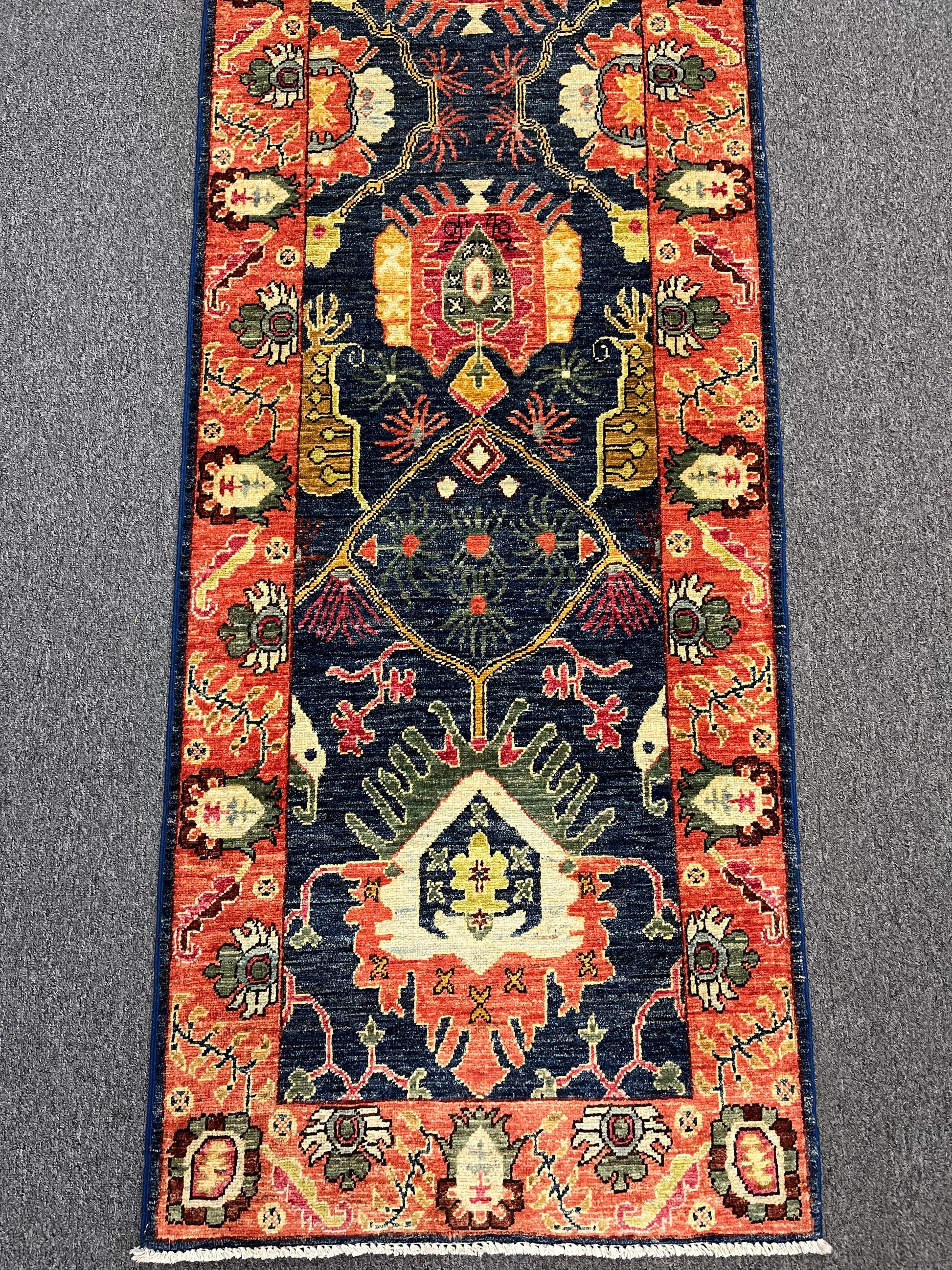 2' 6"X18 Afghan Bijar Handmade Wool Runner Rug # 14142