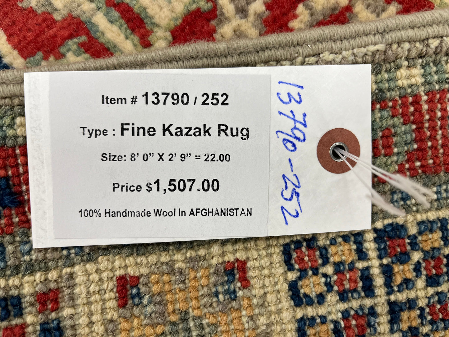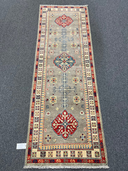 2' 9"X8' Kazak Gray Handmade Wool Runner Rug # 13790