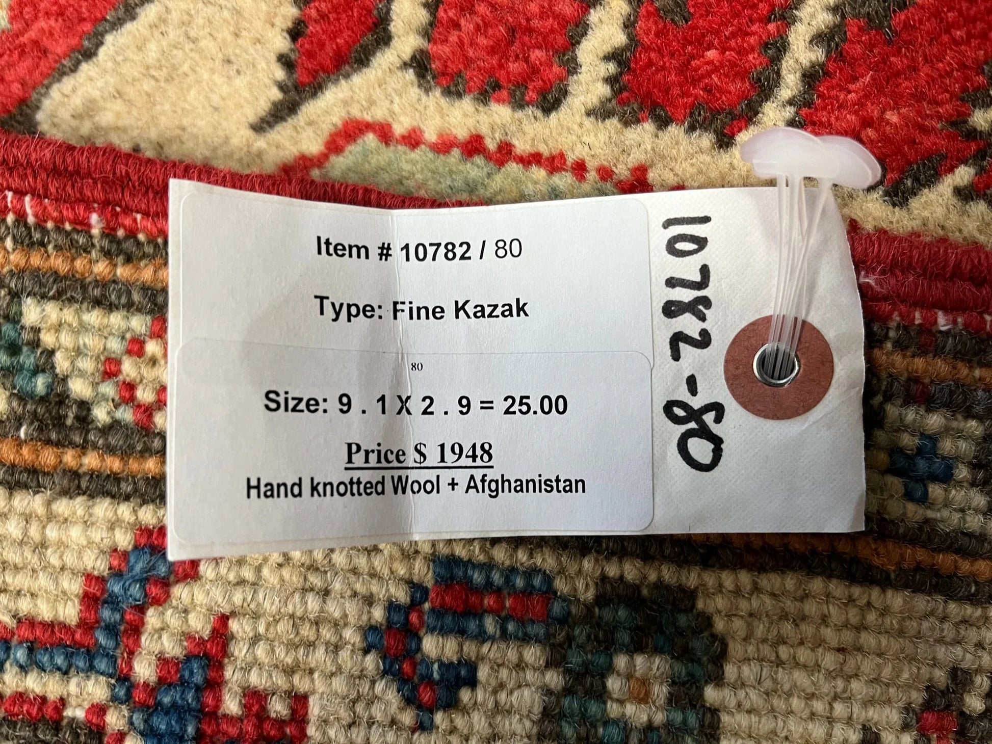 2' 9"X9' Kazak Handmade Wool Runner Rug # 10782