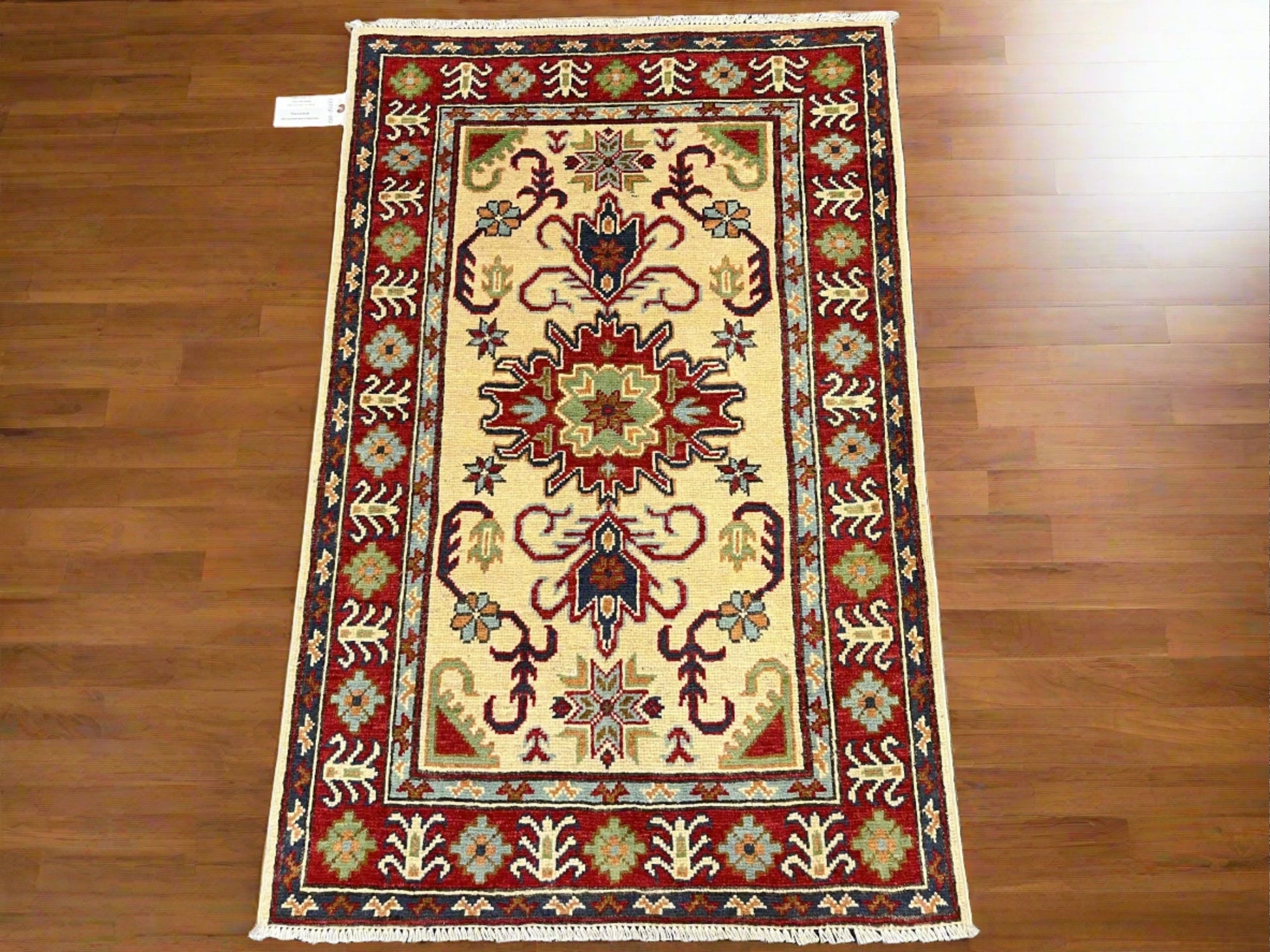 periodic professional cleaning is recommended3' X 4' Fine Kazak Handmade Wool Rug # 13356