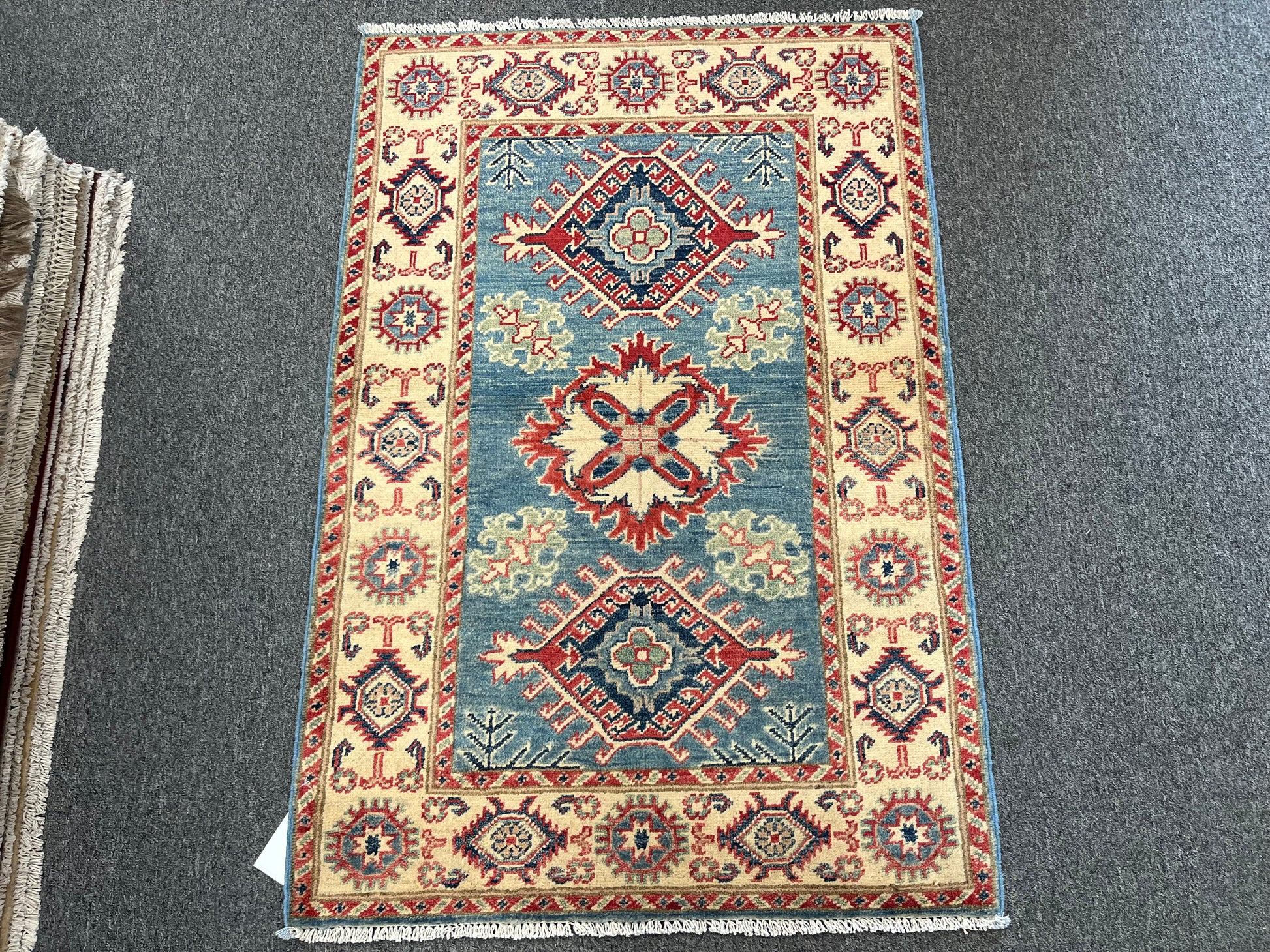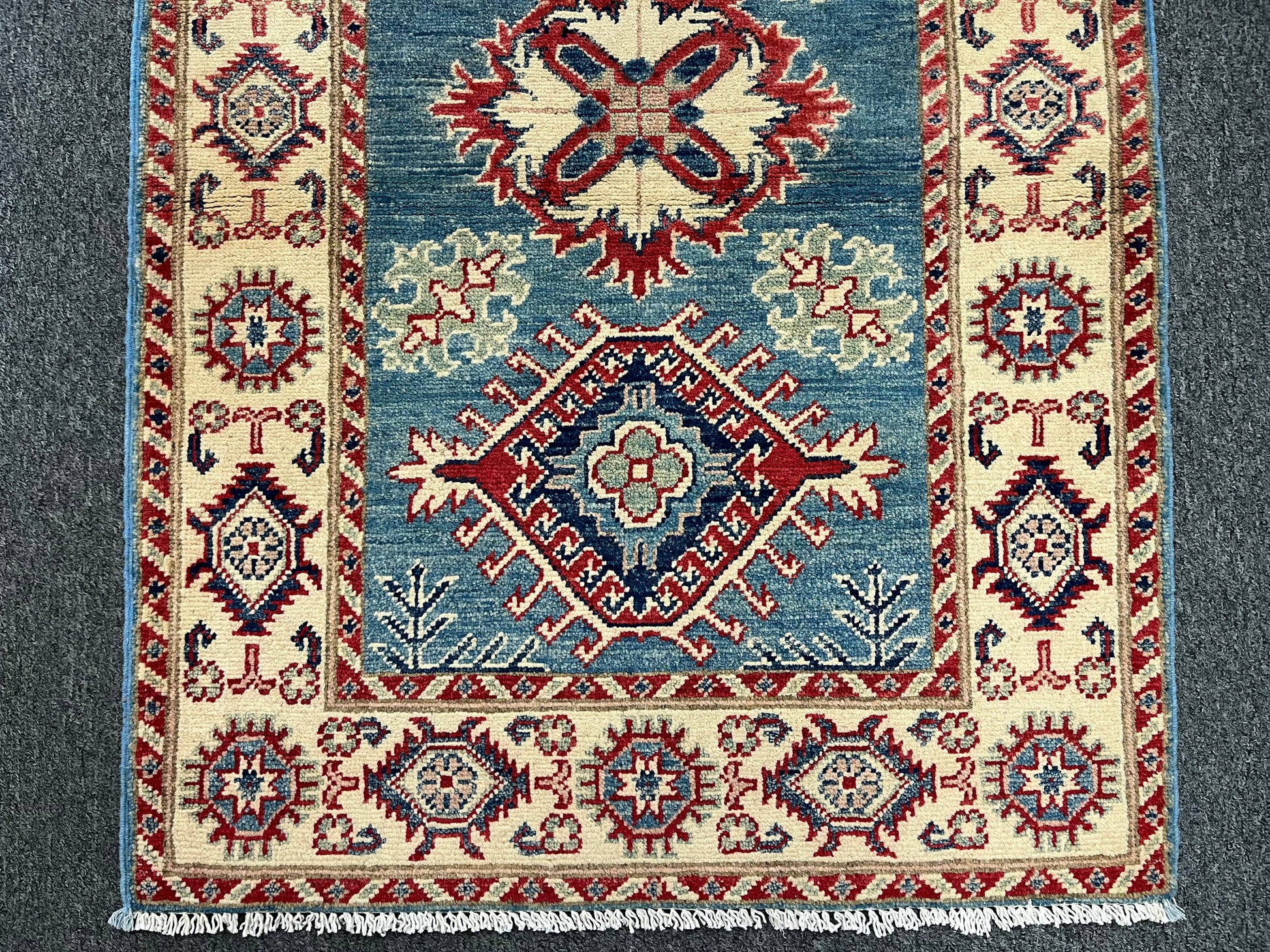 Kazak 3X4 Light Blue Handmade Wool Rug # 13870
