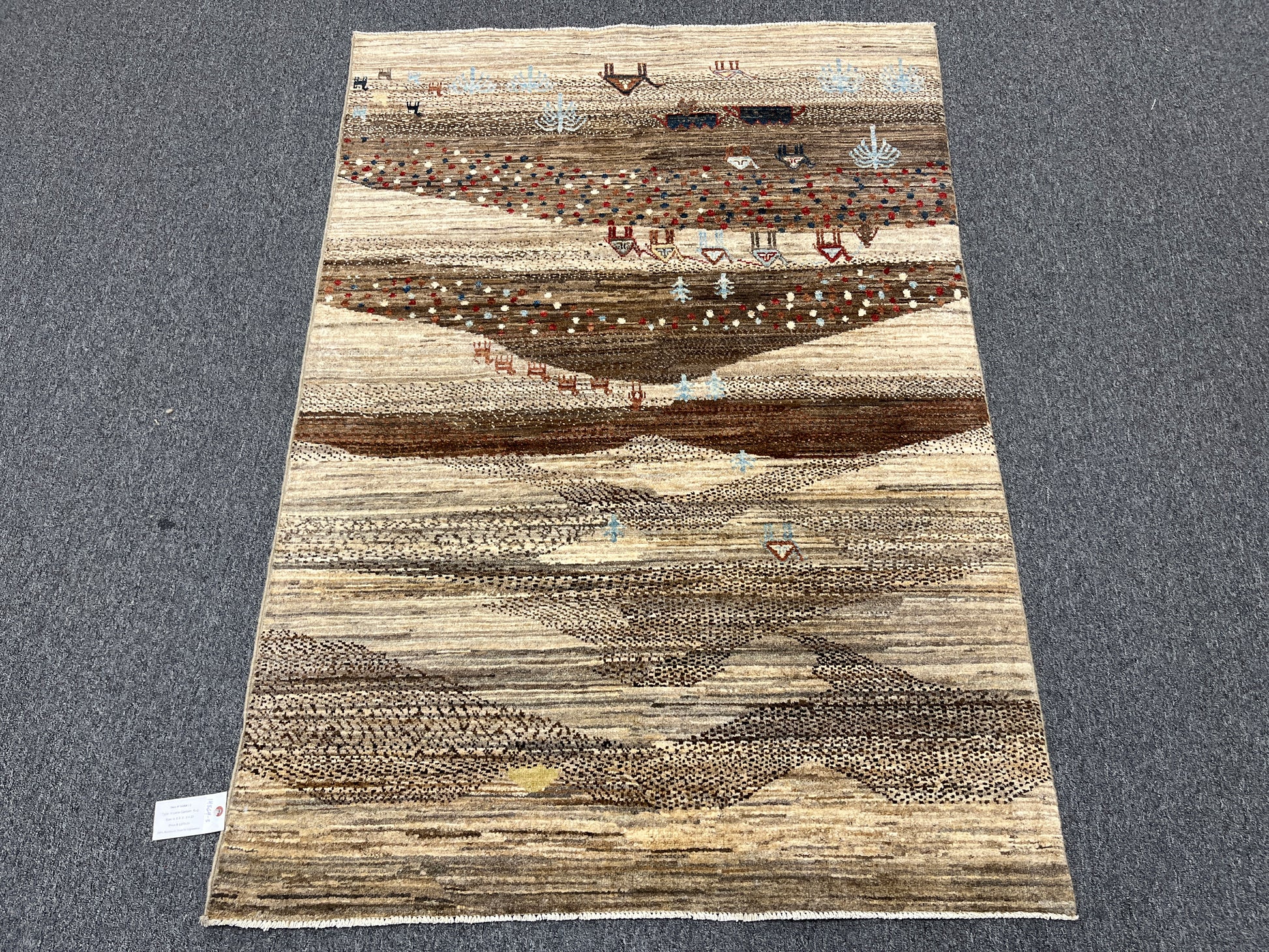 4X6 Gabbeh Loribaft Handmade Wool Tribal Rug # 14364
