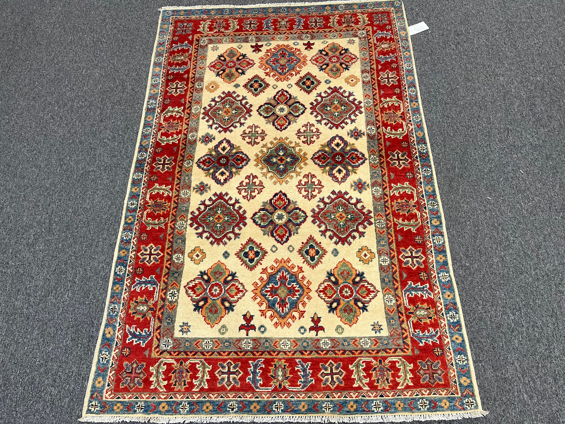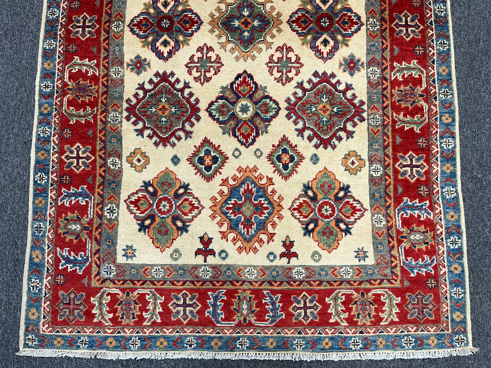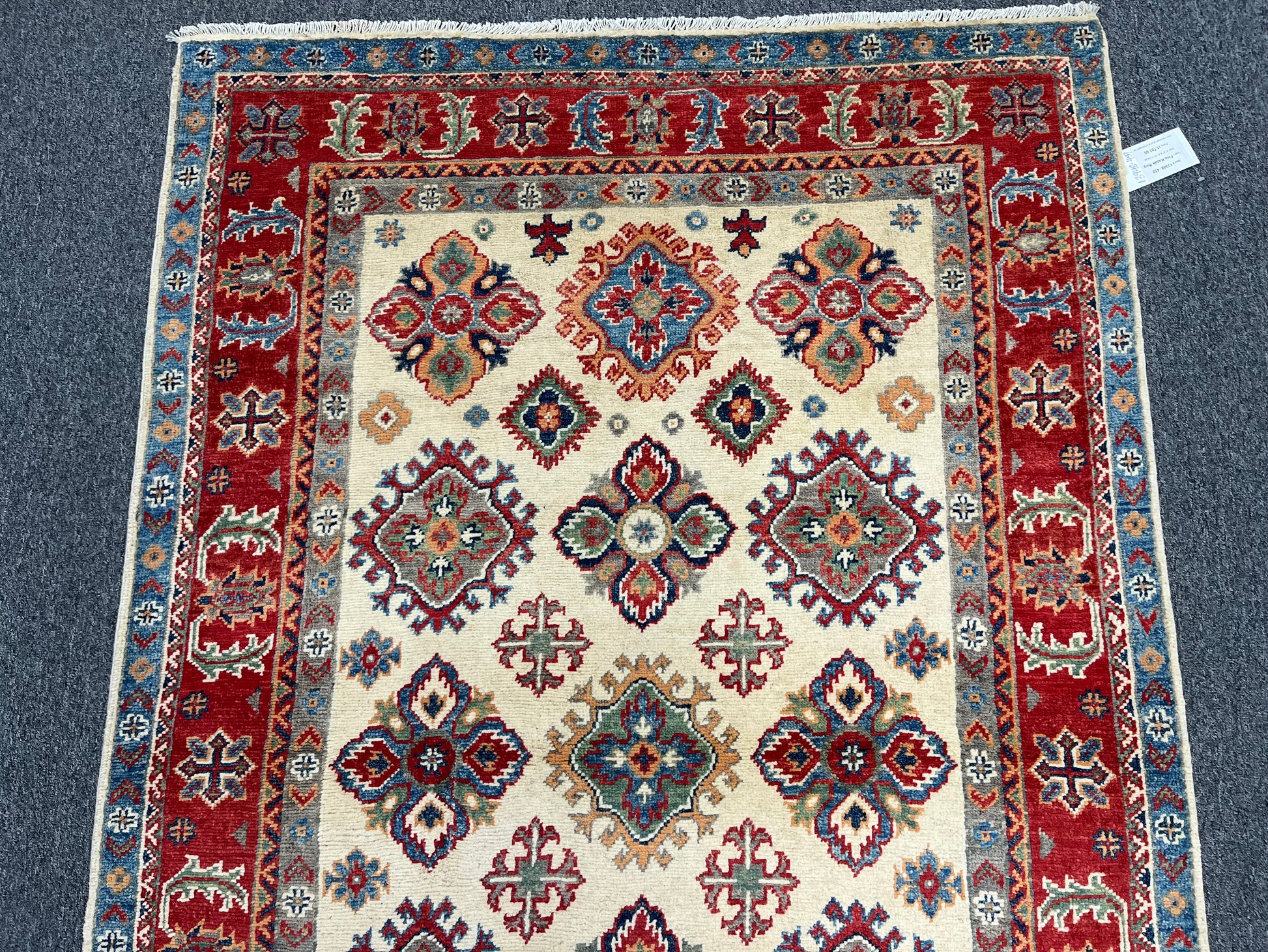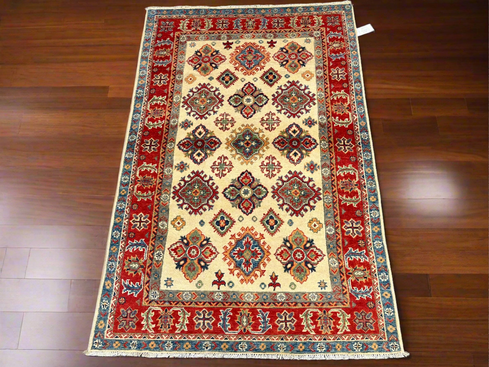 4X6 Kazak Beige/Red Wool Handmade Rug # 13948