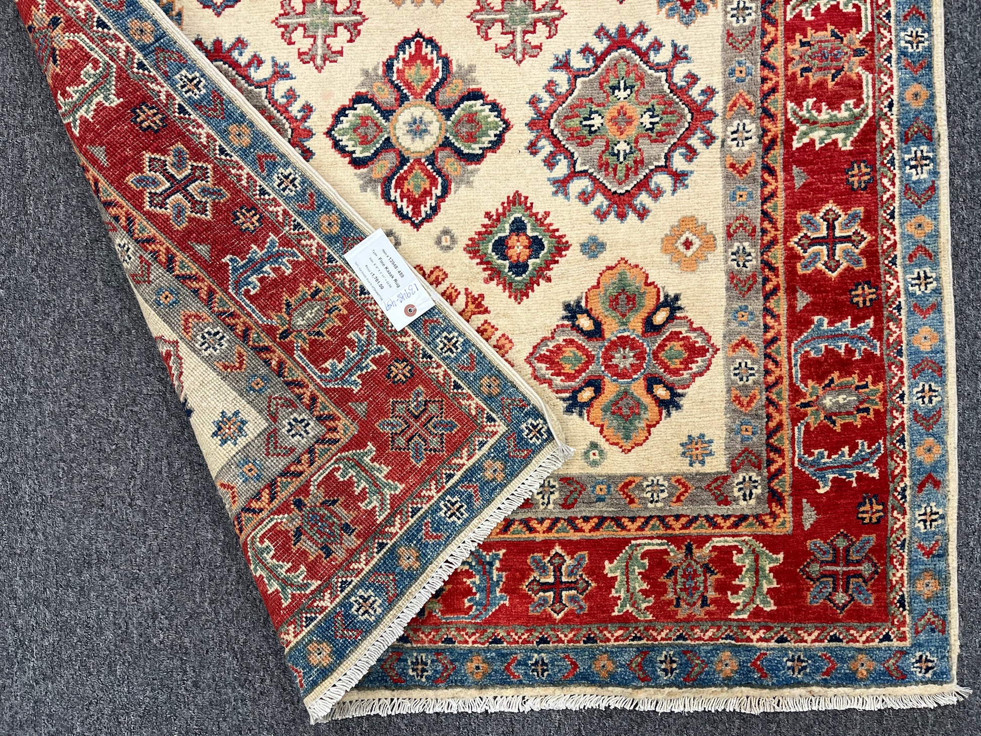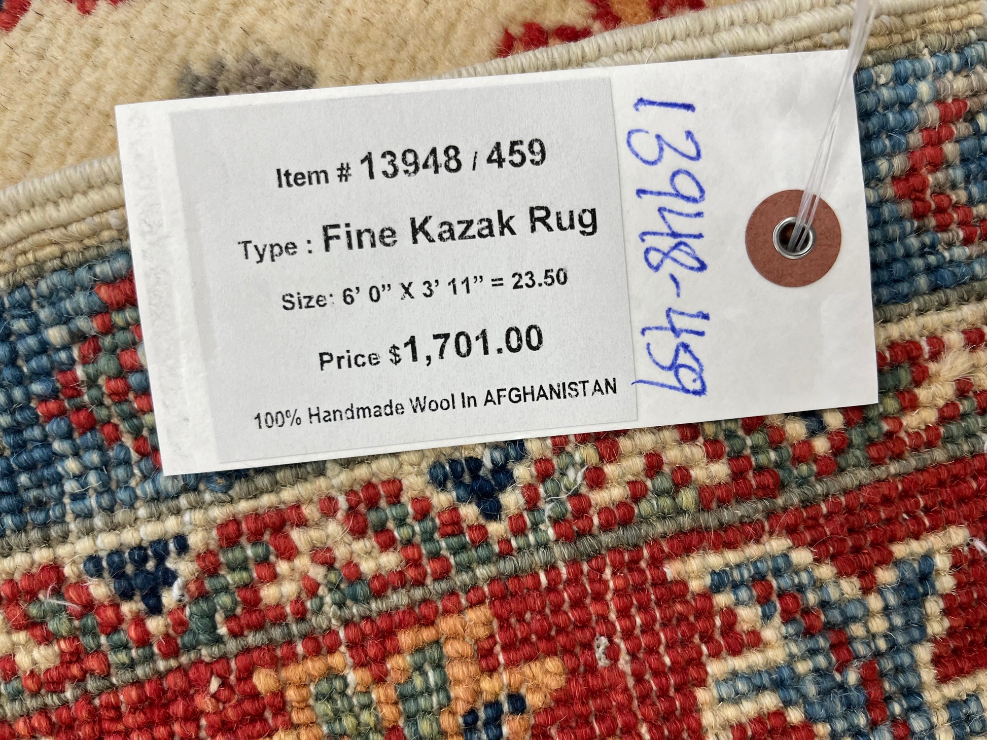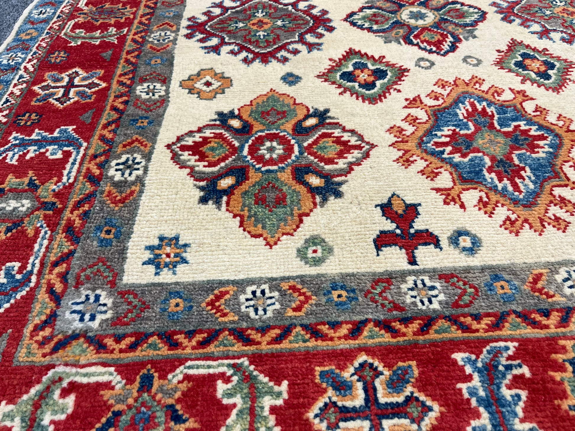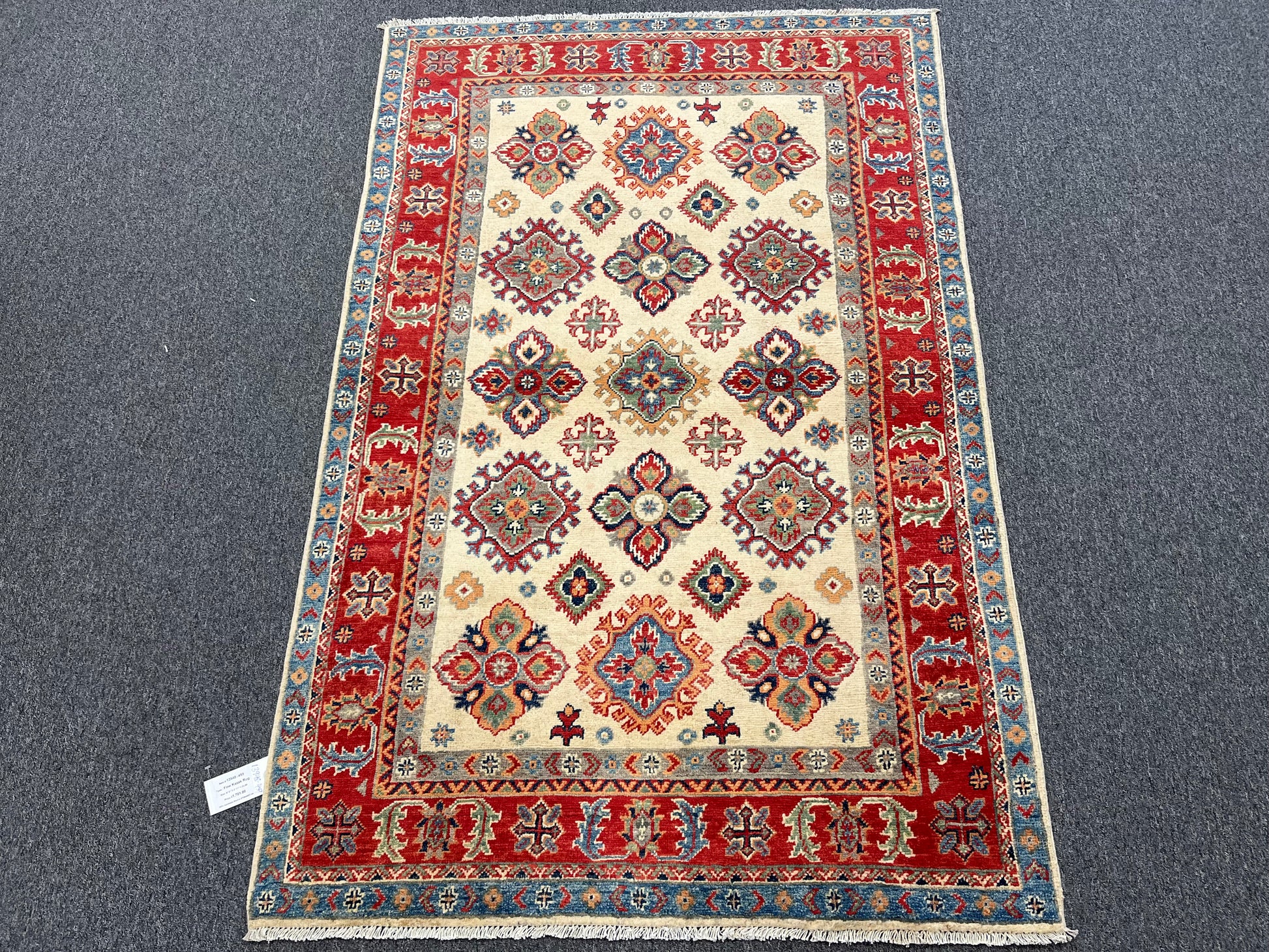 4X6 Kazak Beige/Red Wool Handmade Rug # 13948