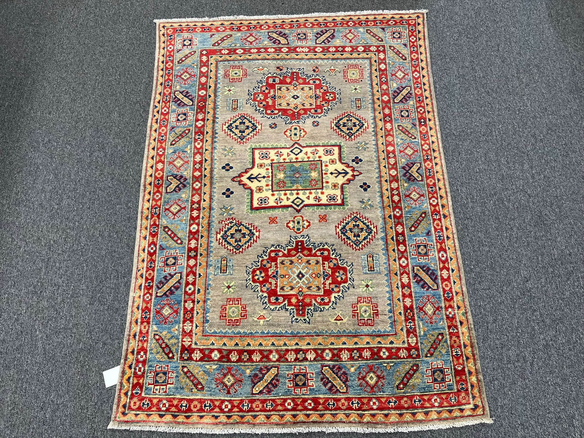 4X6 Kazak Gray brown Handmade Wool Rug # 13753