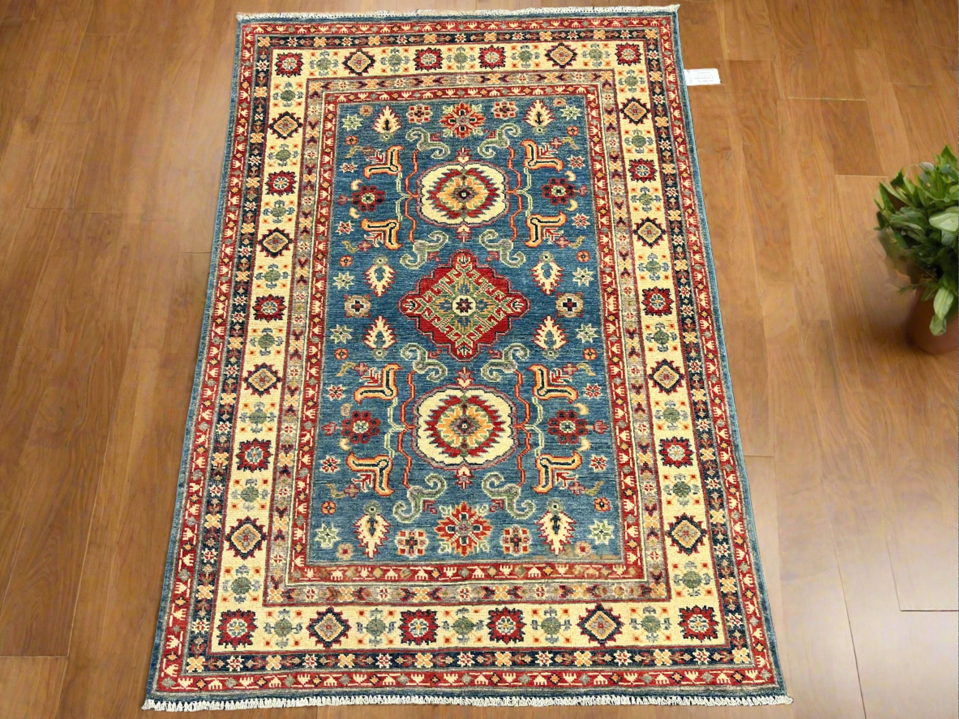 4X6 Light blue Kazak Handmade Wool Rug # 13666