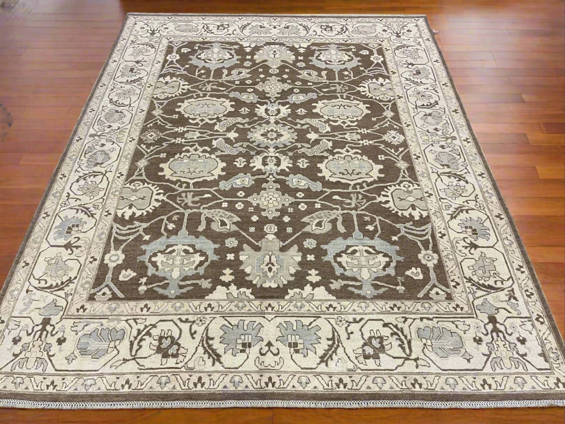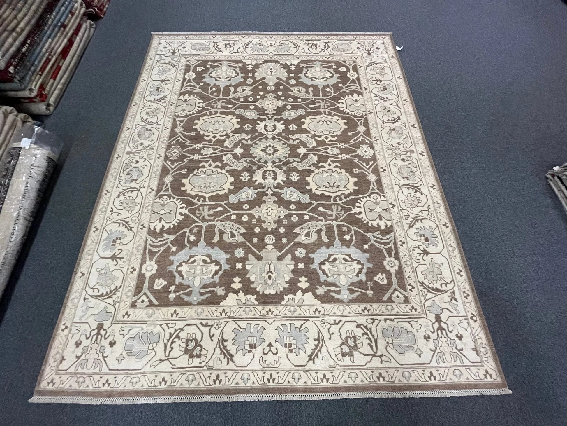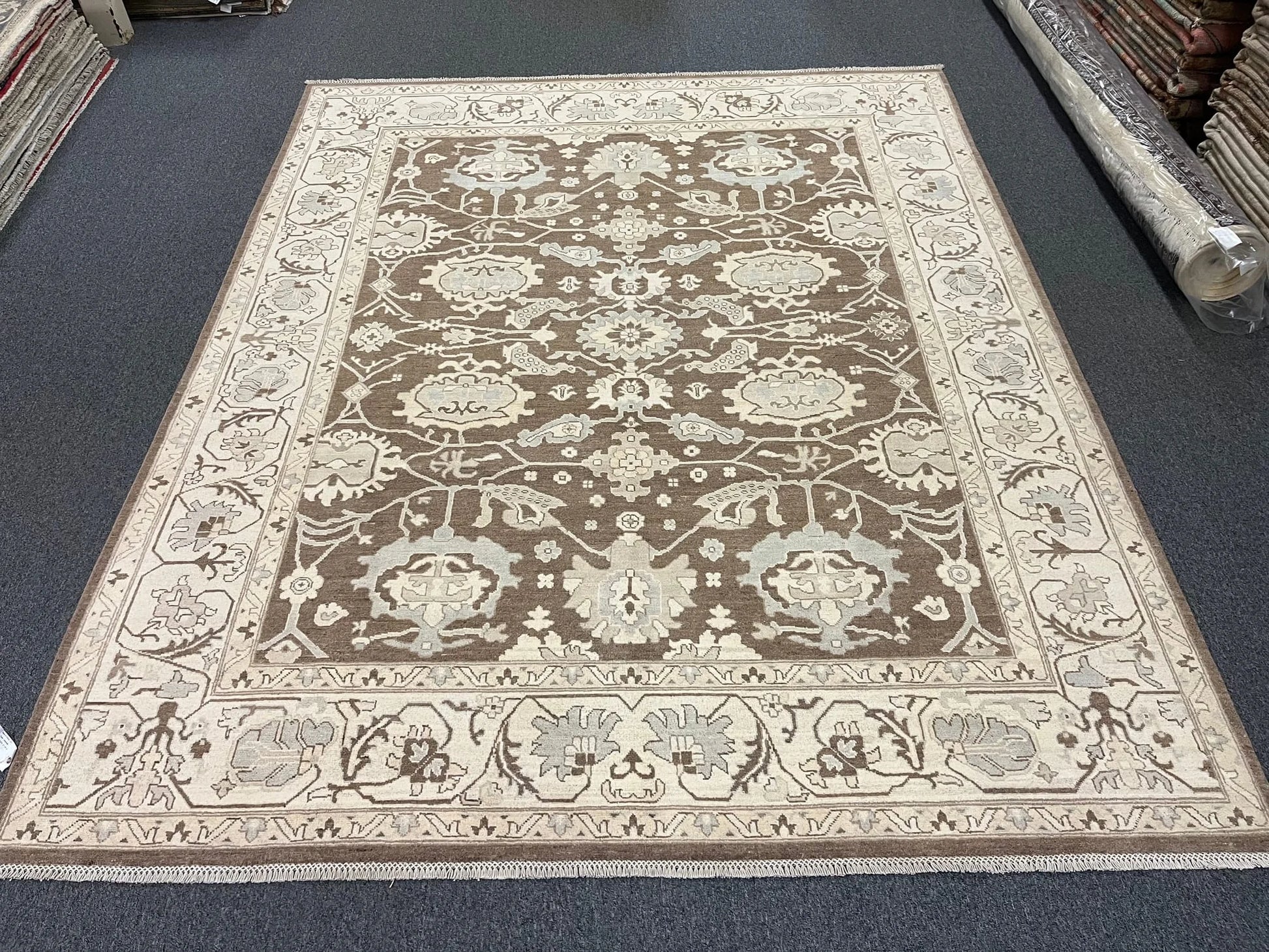 Oushak Brown/Beige 8X10 Handmade Wool Rug # 11514