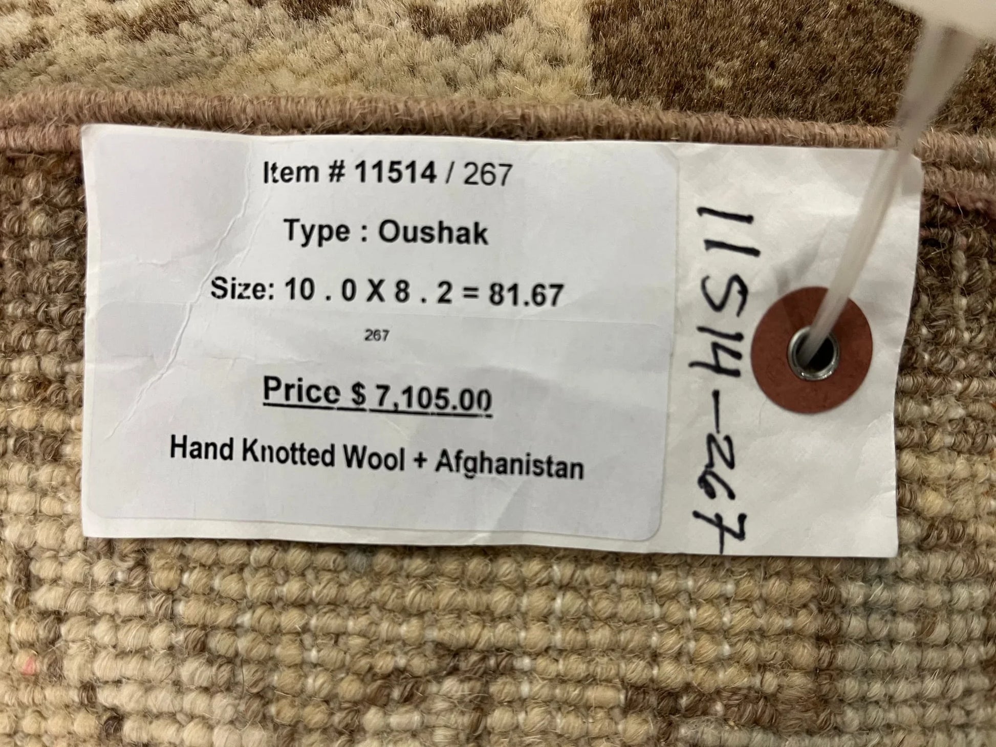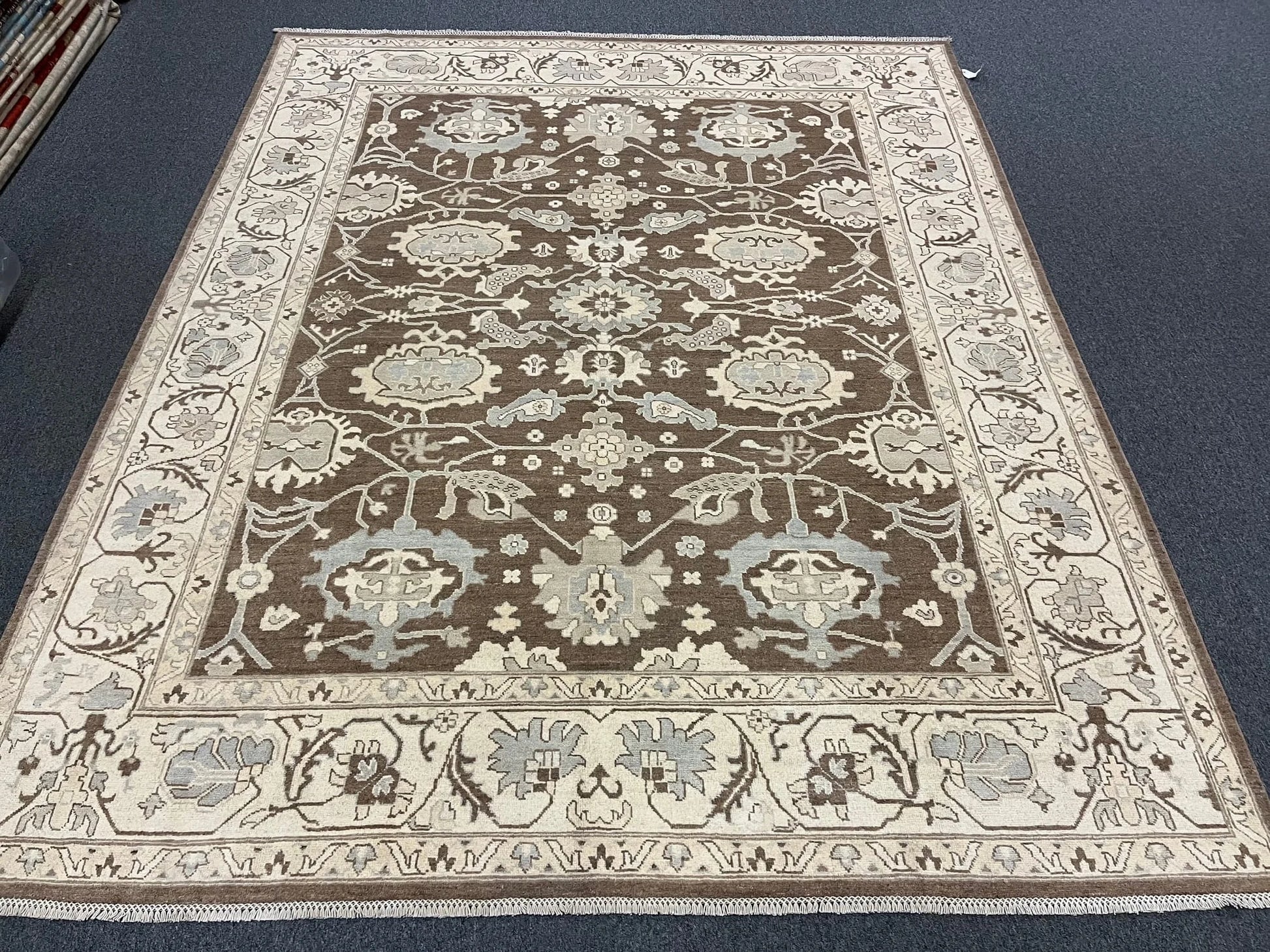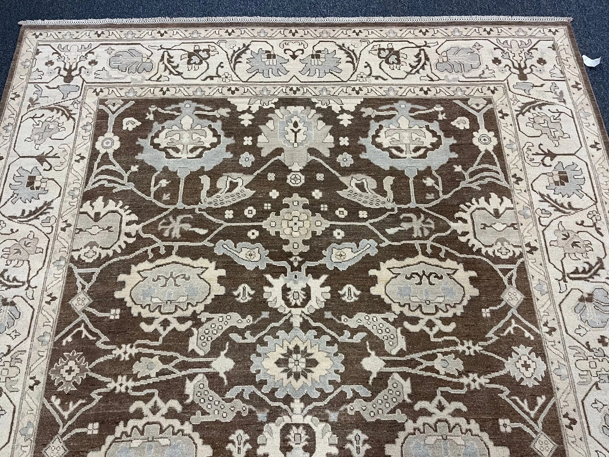 Oushak Brown/Beige 8X10 Handmade Wool Rug # 11514