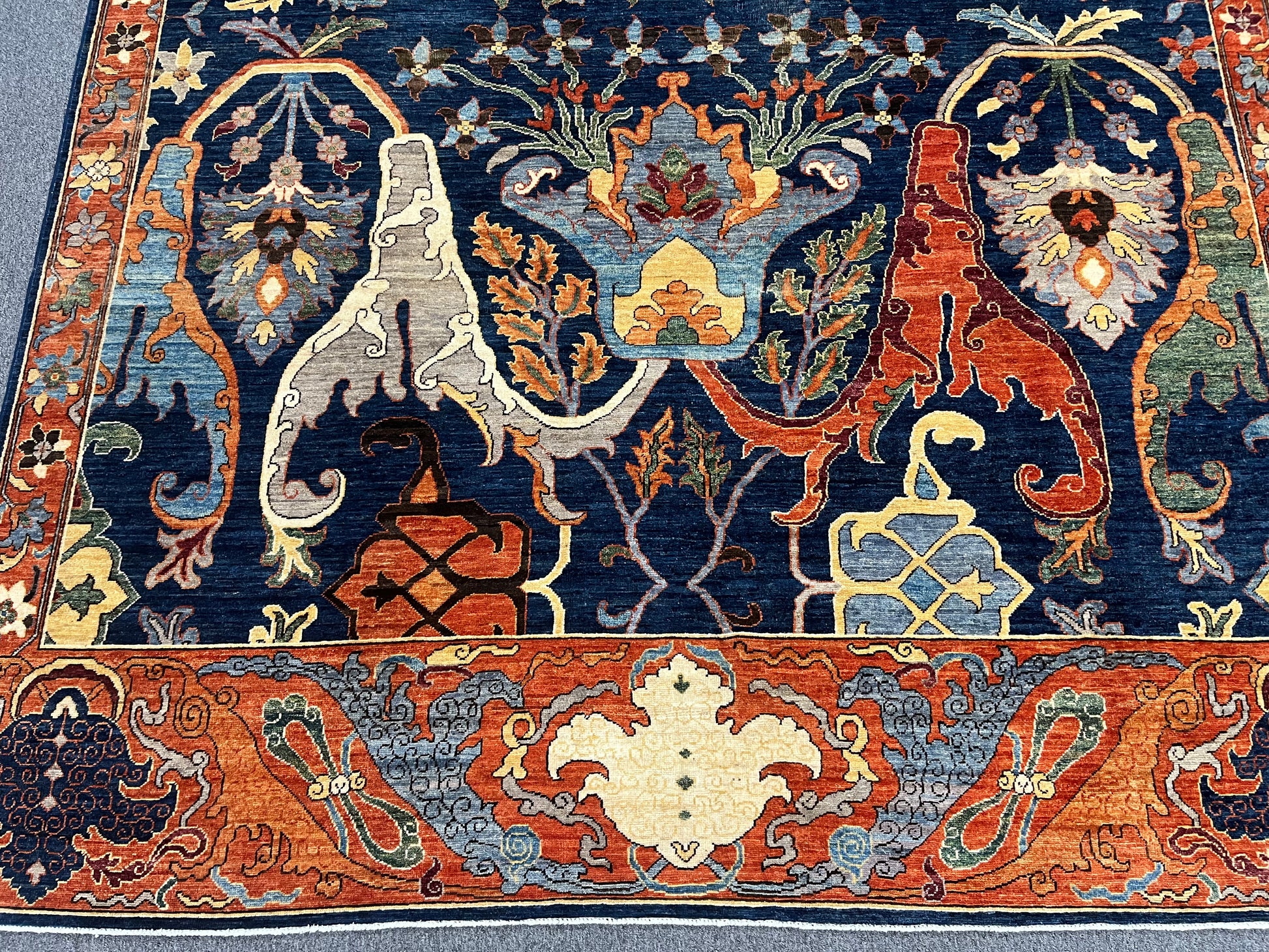 8X10 Afghan Bijer Rust/Blue Handmade Wool Rug # 14657