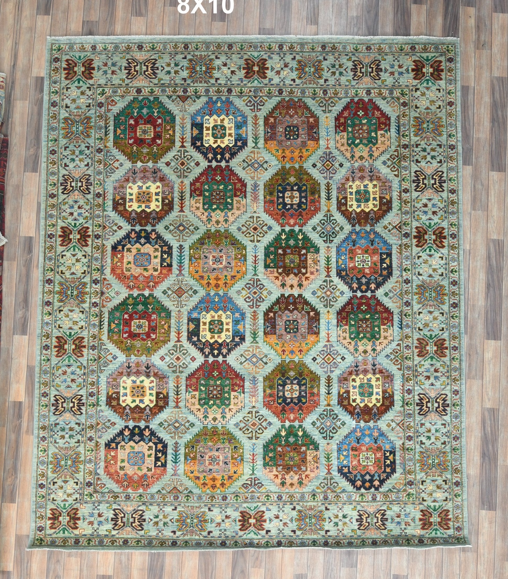 8X10 Afghan Geometric Blue Handmade Wool Rug # 14609