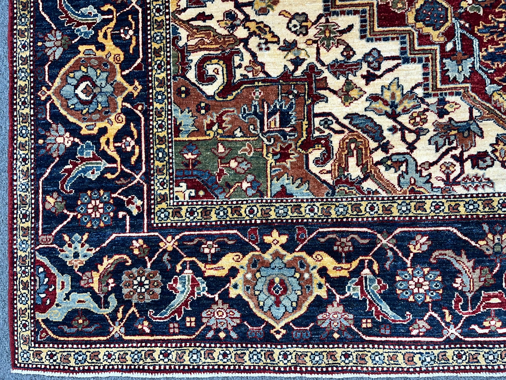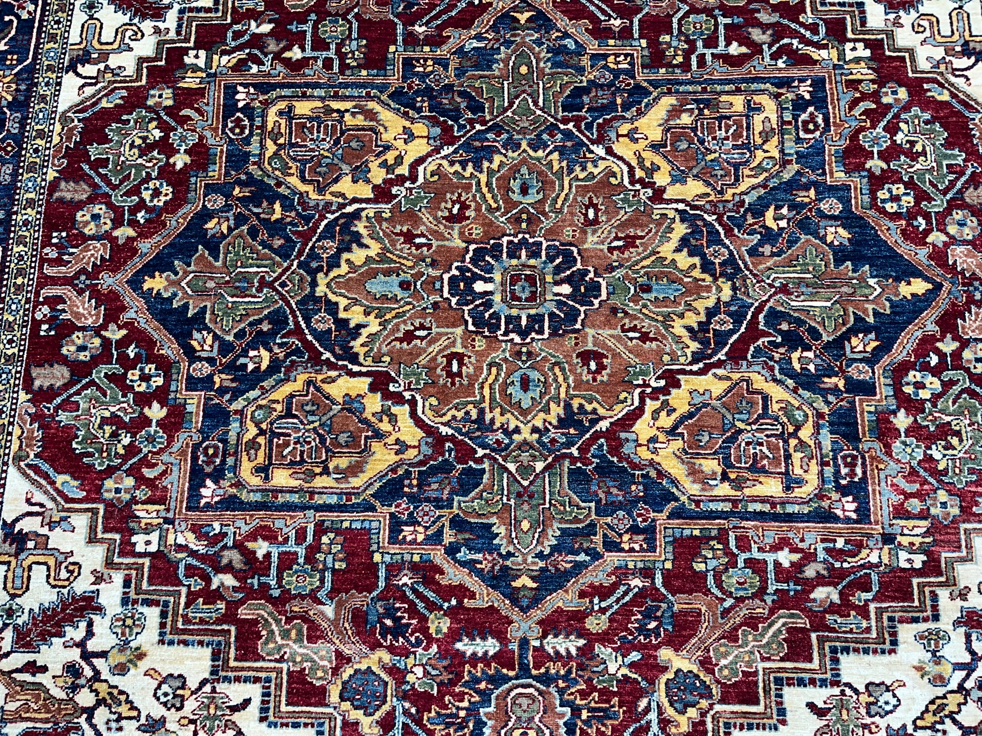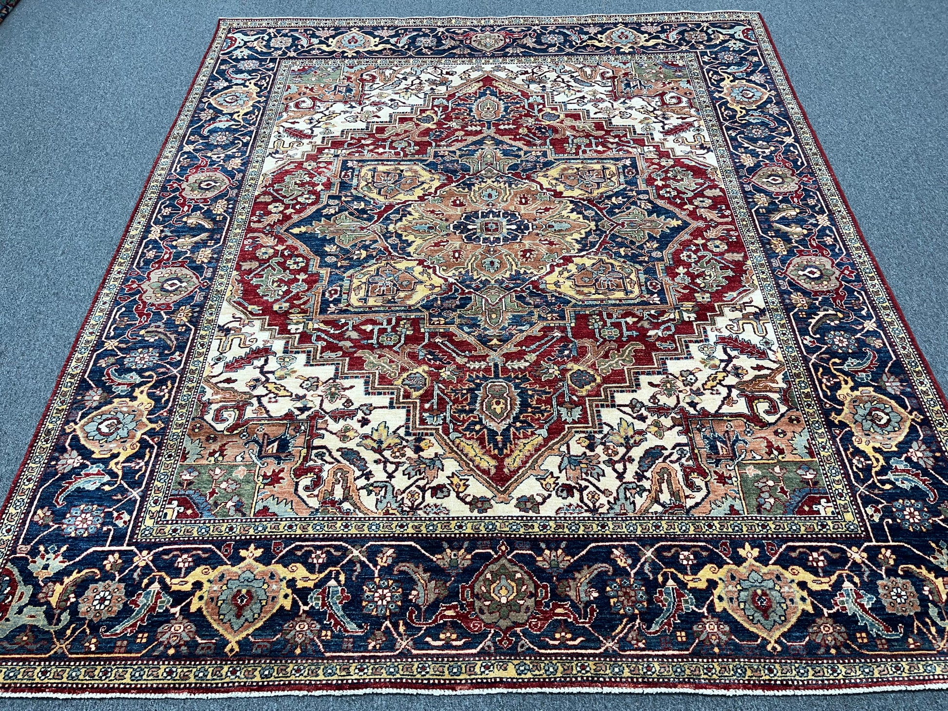 8X10 Afghan Heriz Red/Navy Handmade Wool Rug # 14613