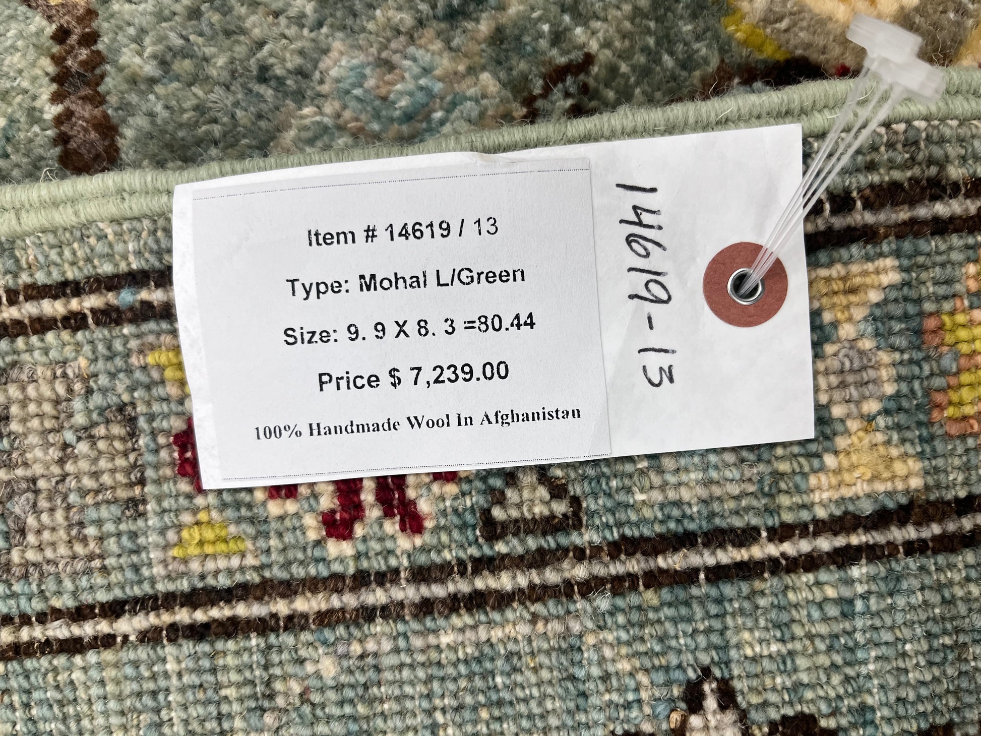 8X10 Afghan Mohal Blue Green Handmade Wool Rug # 14619