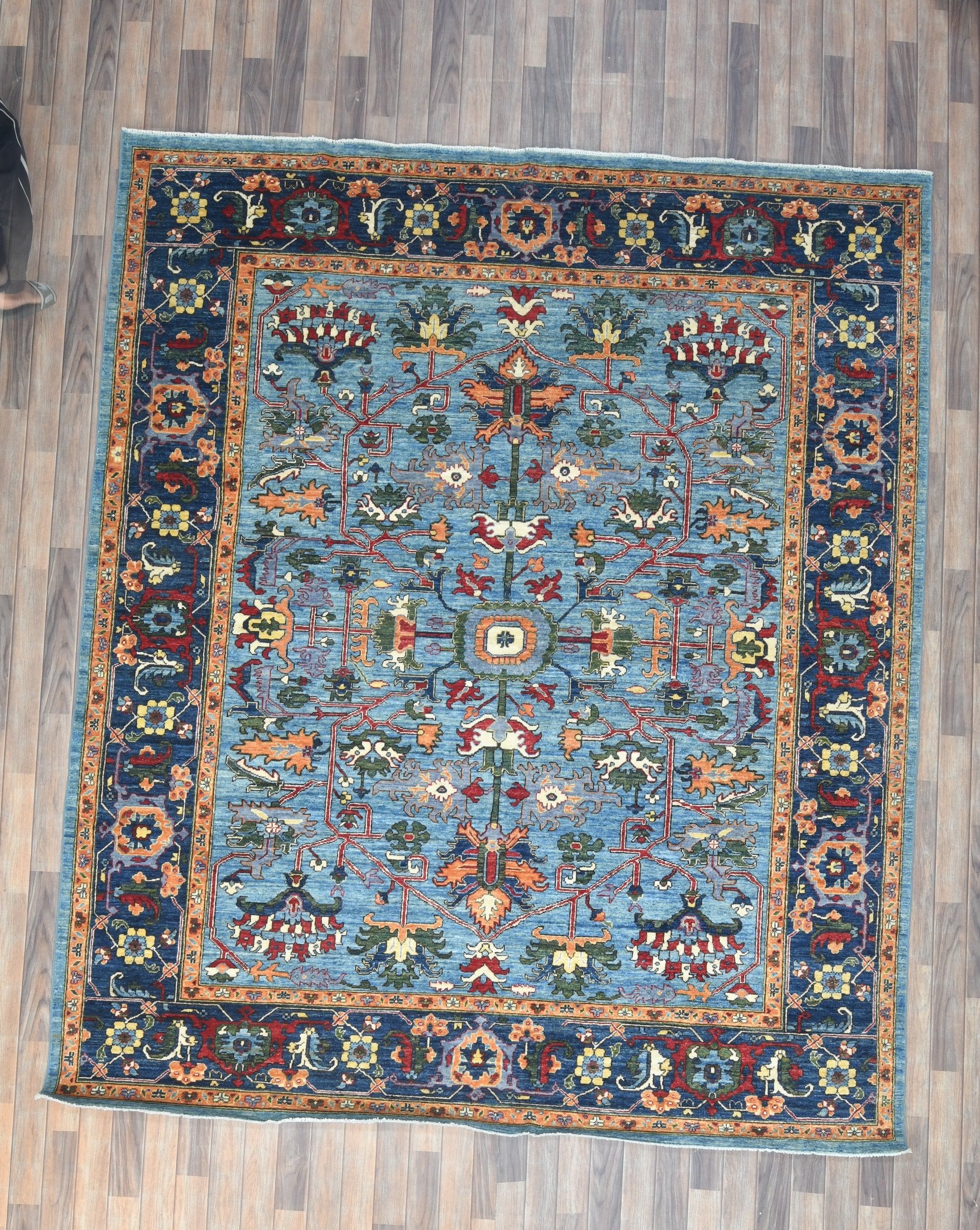 8X10 Afghan Serapi Light Blue Handmade Wool Rug # 14629