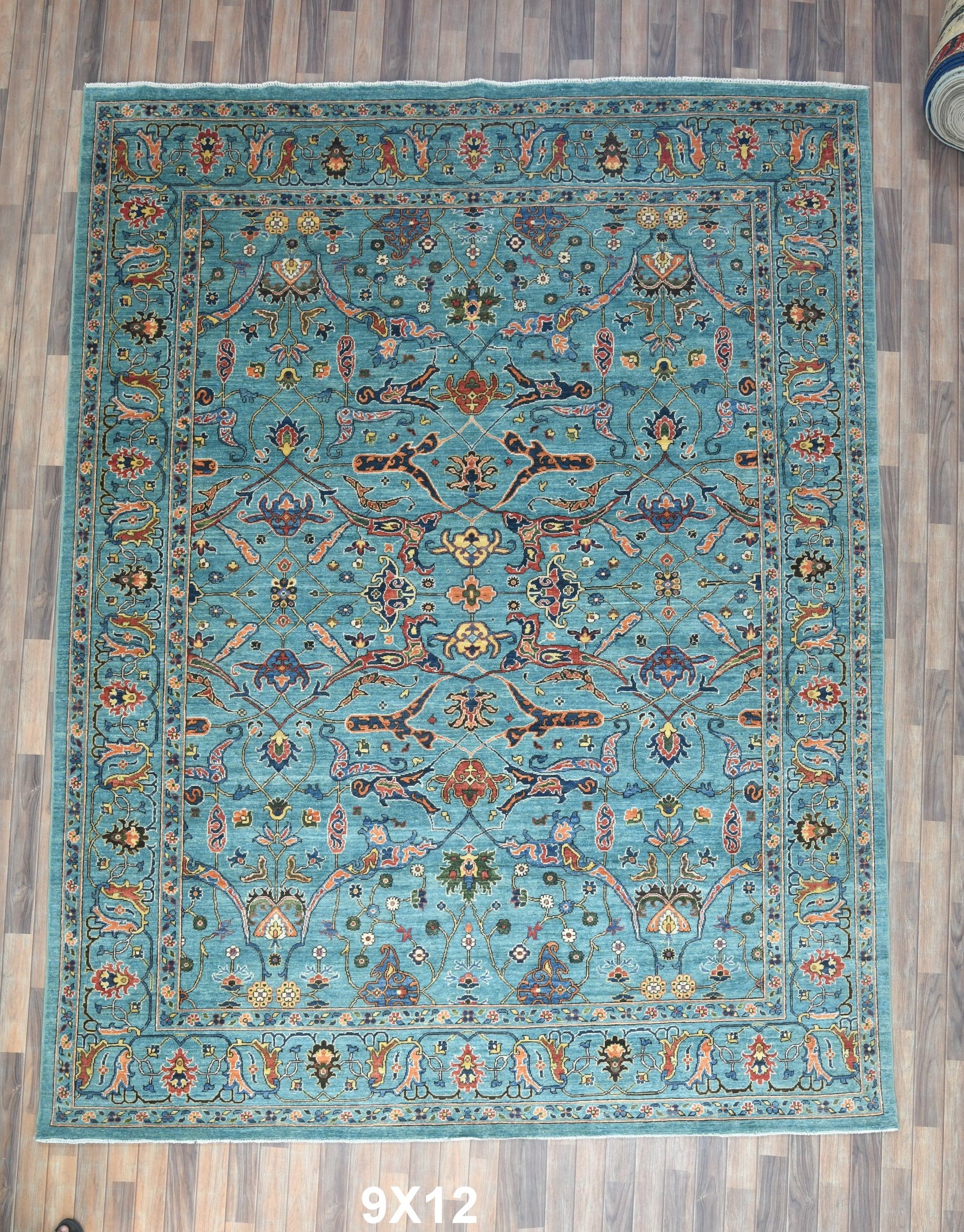 9X12 Afghan Bijer Light Blue Handmade Wool Rug # 14610