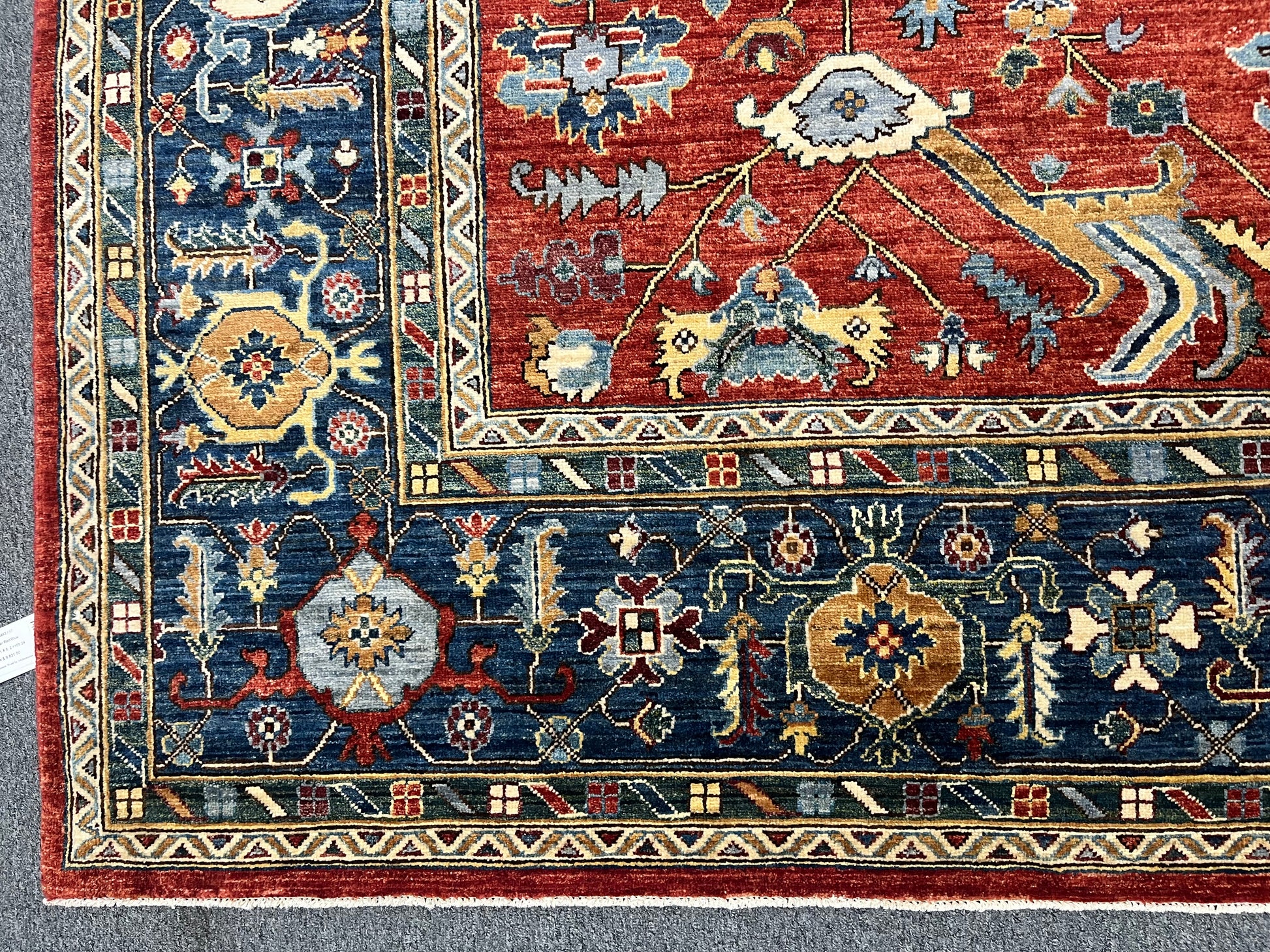 9X12 Afghan Serapi Light Blue Handmade Wool Rug # 14663