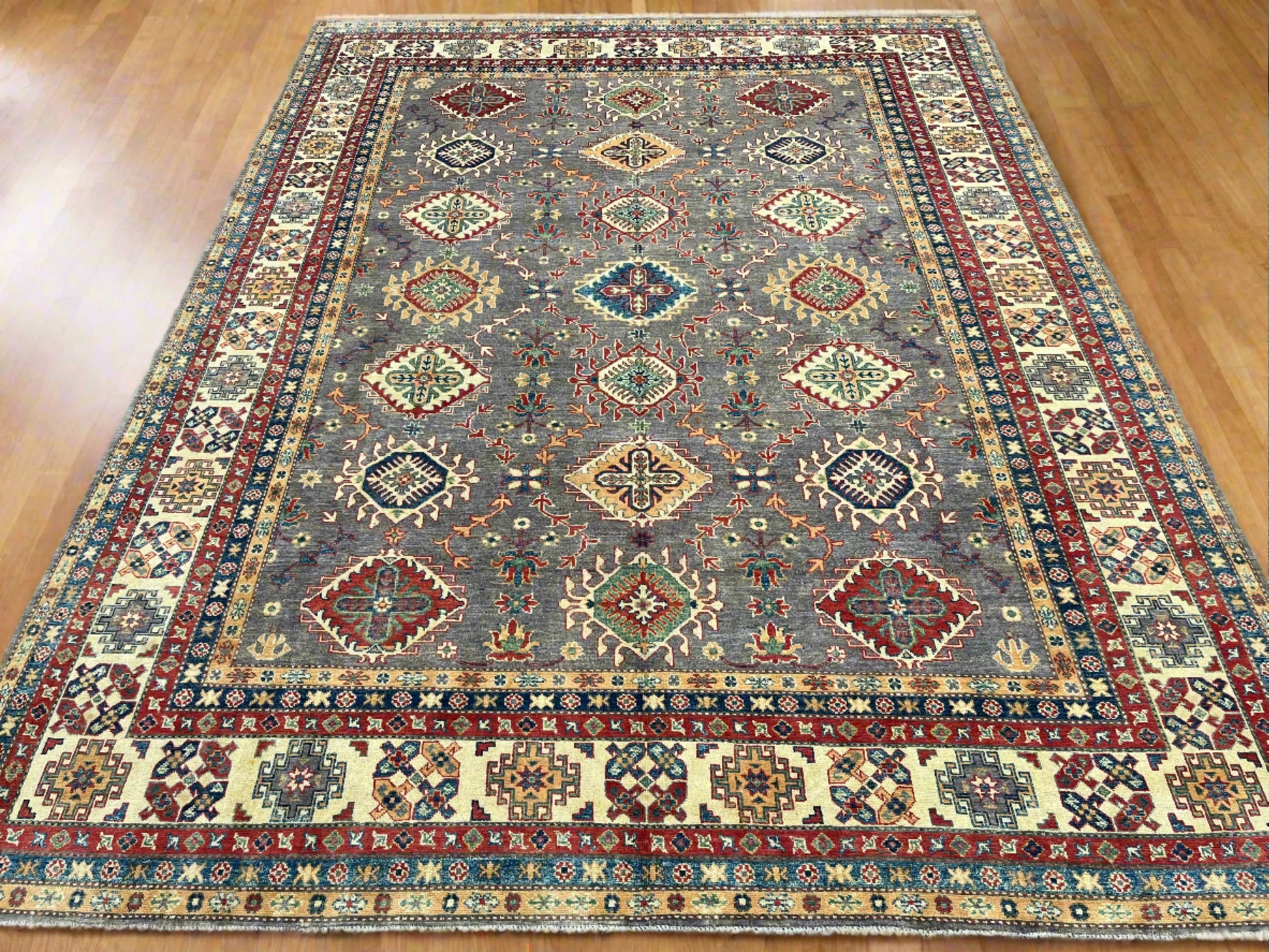 9X12 Fine Kazak Gray Brown Handmade Wool Rug # 13889