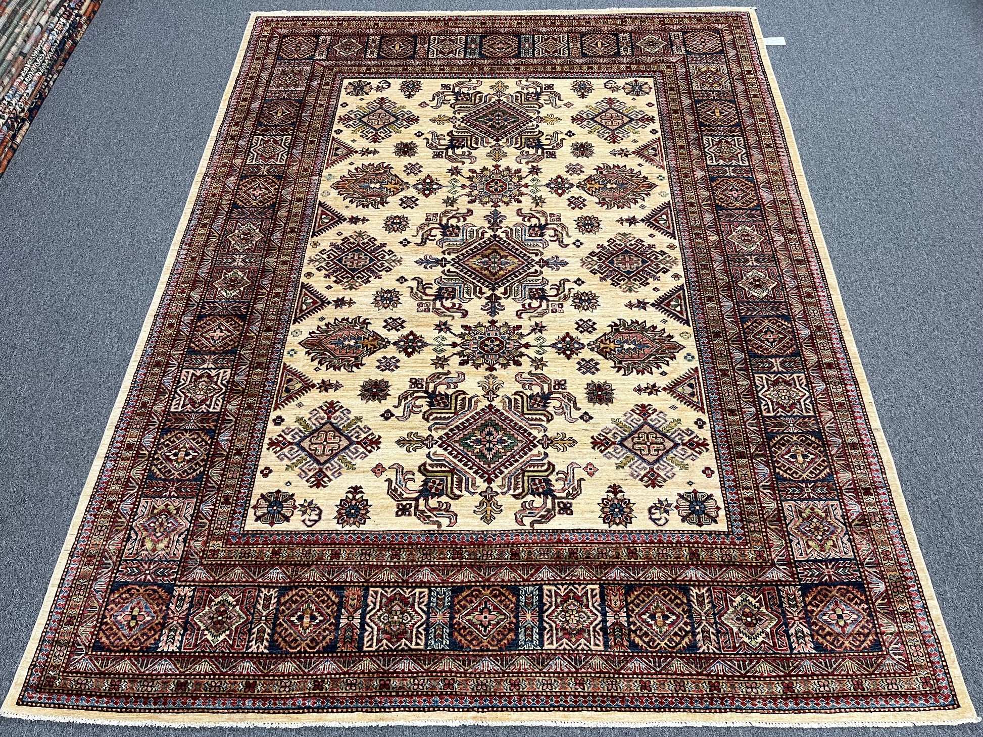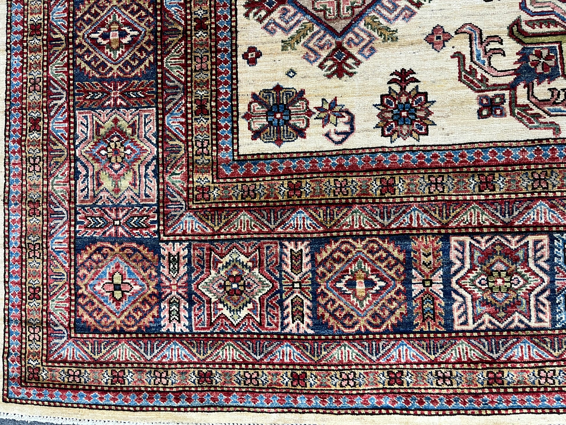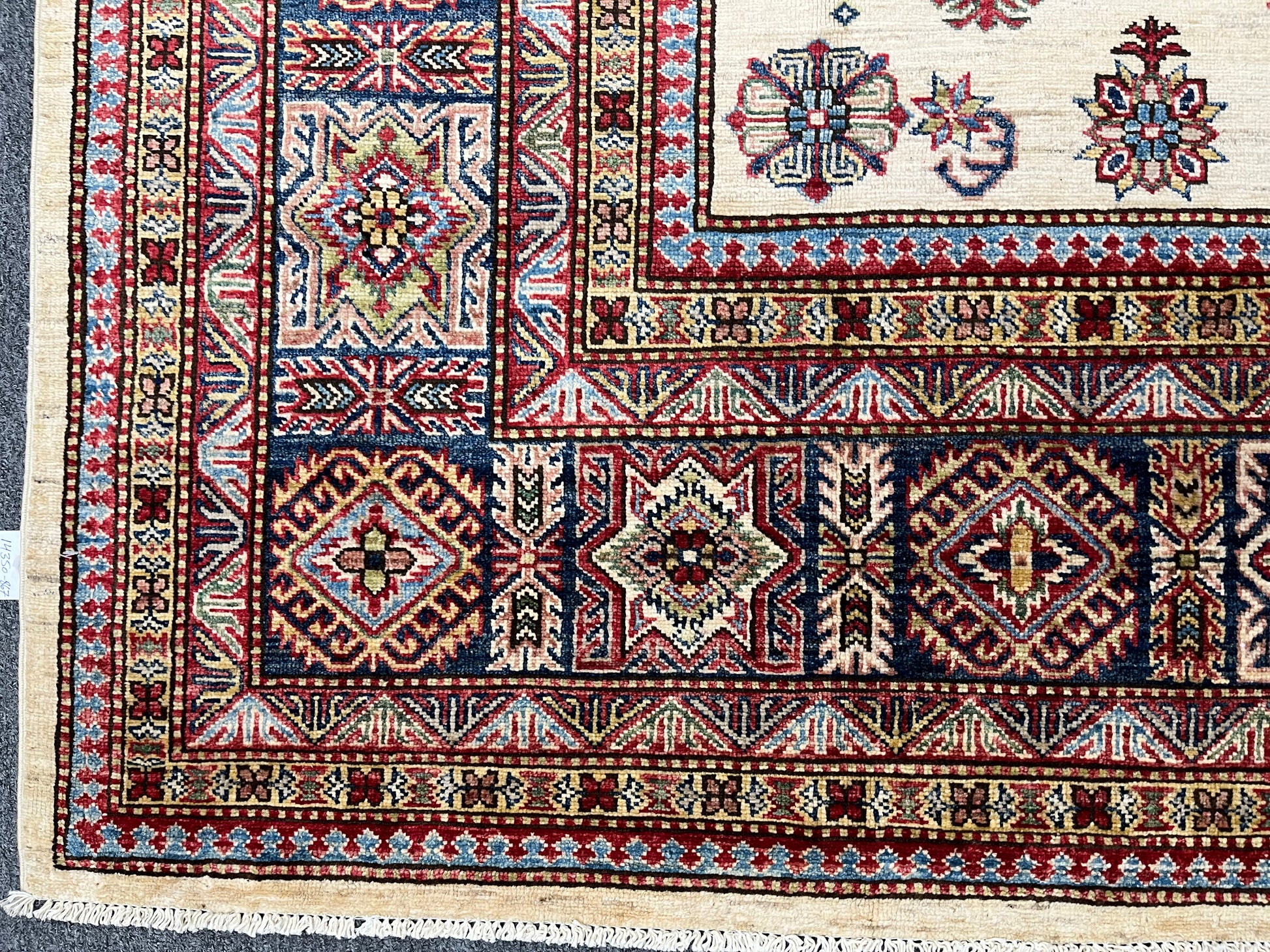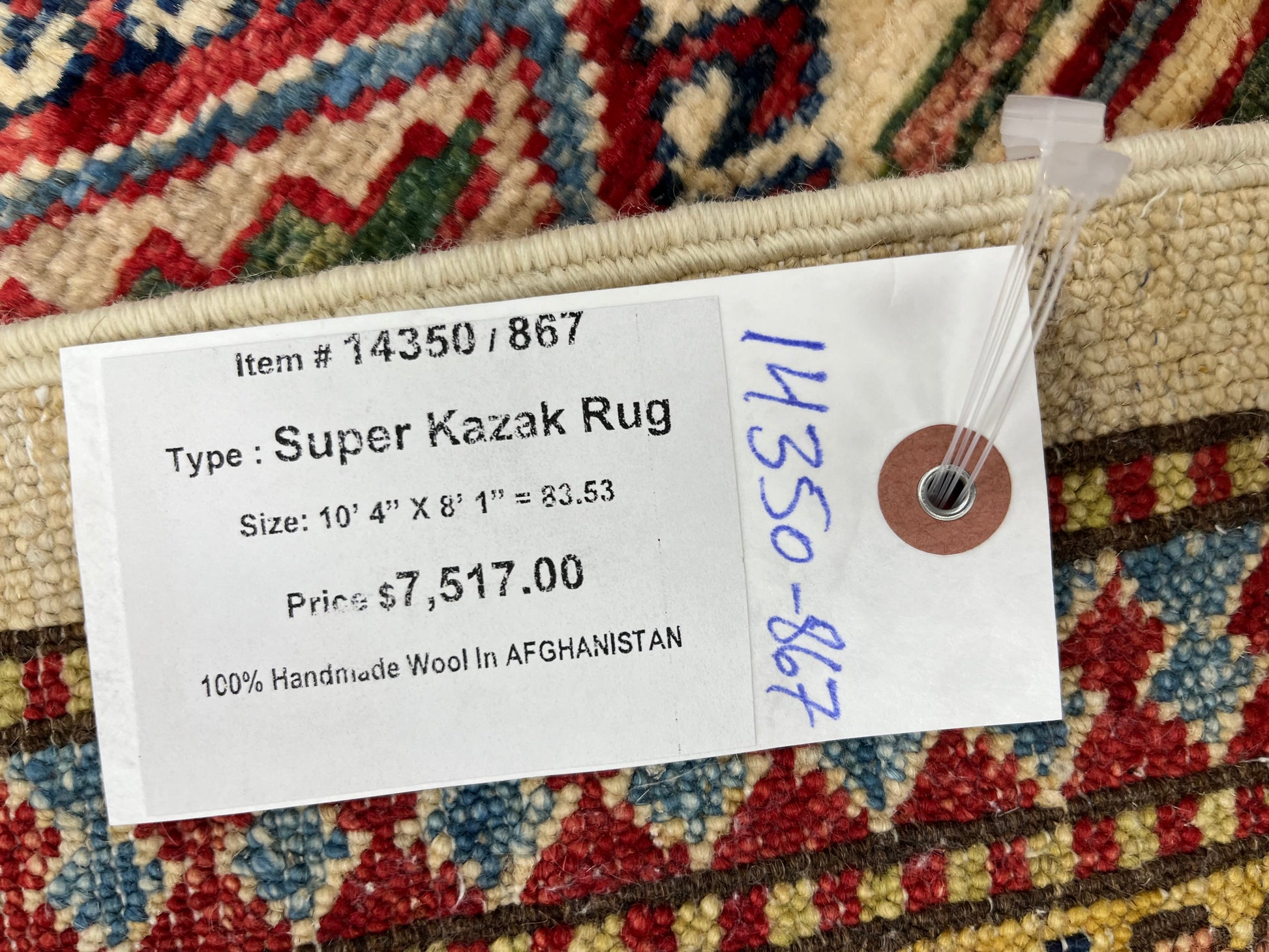 Beige Multicolor Super Kazak 8X10 Handmade Wool Rug # 14350