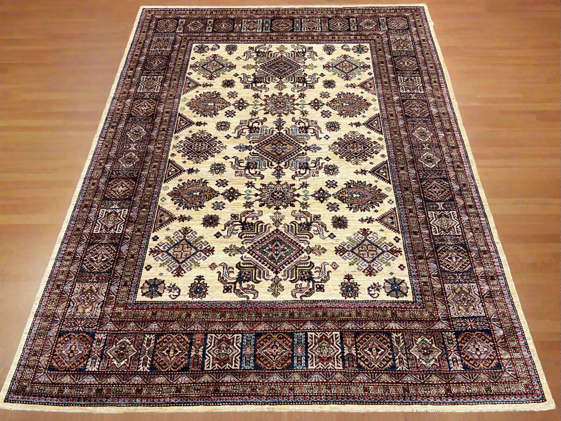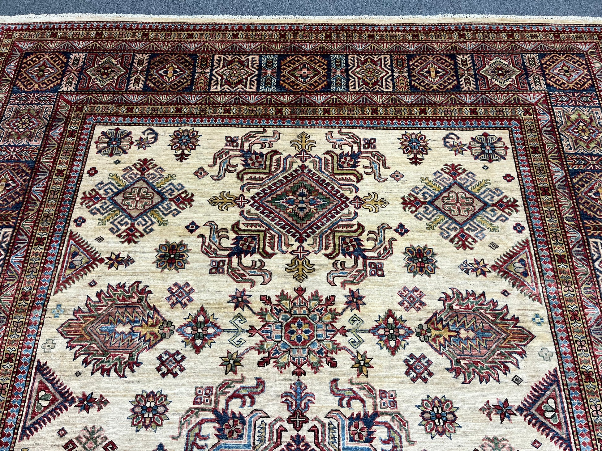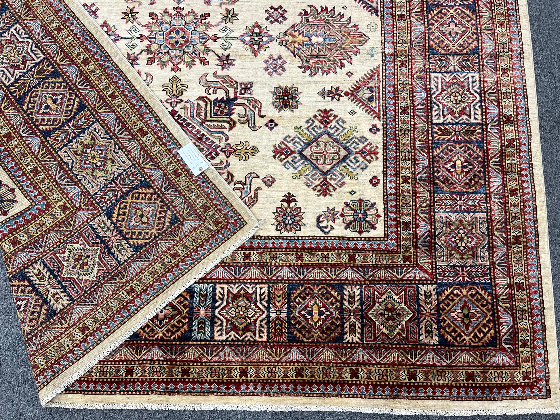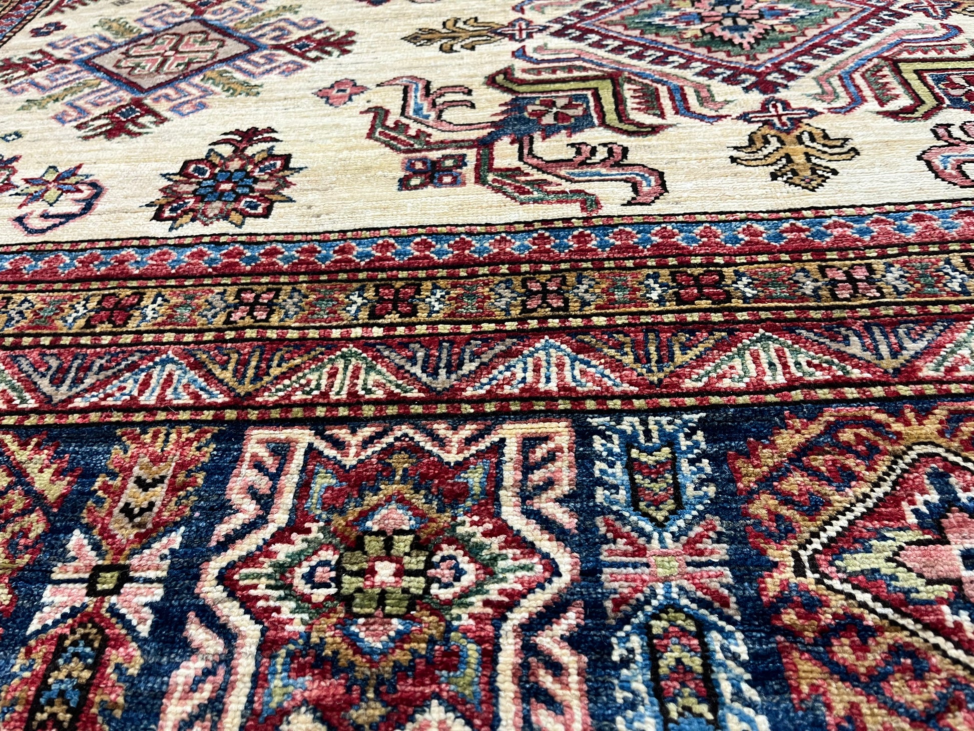 Beige Multicolor Super Kazak 8X10 Handmade Wool Rug # 14350