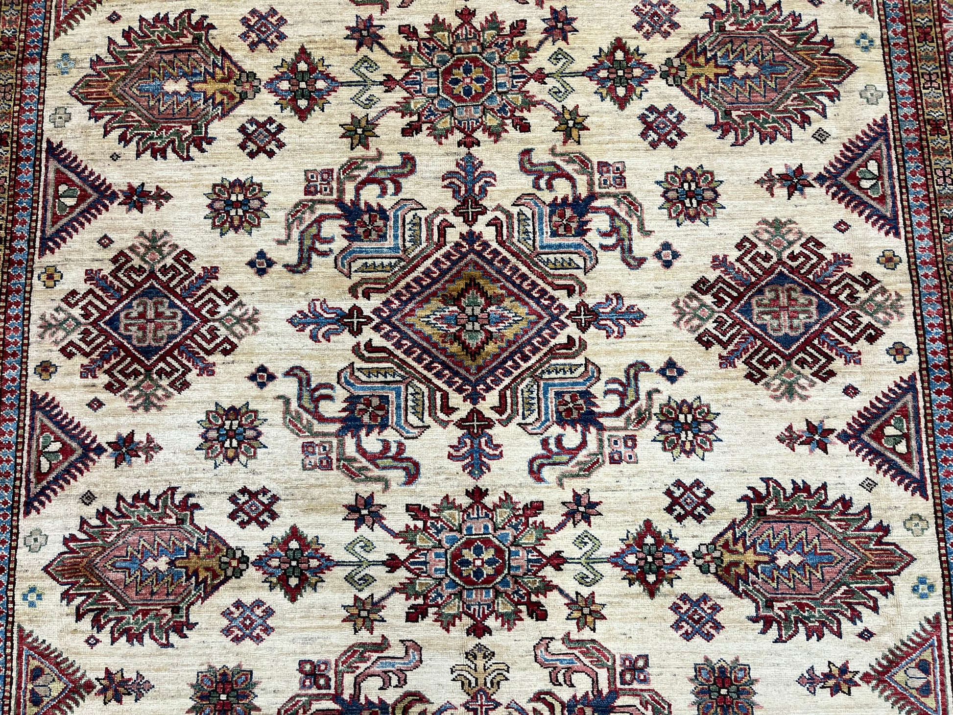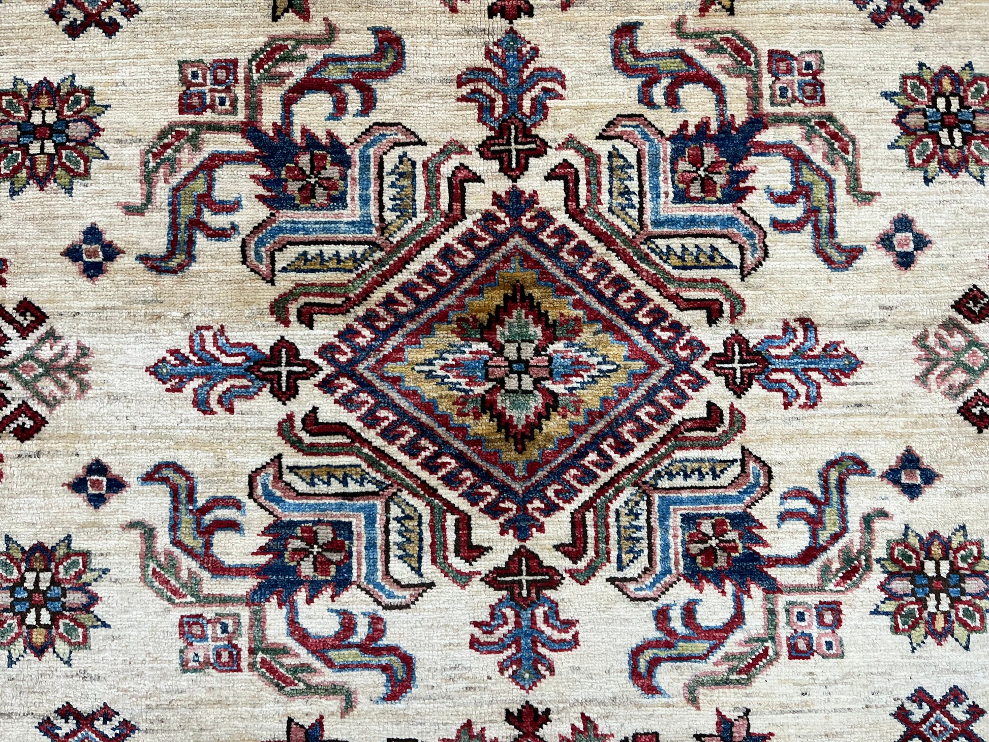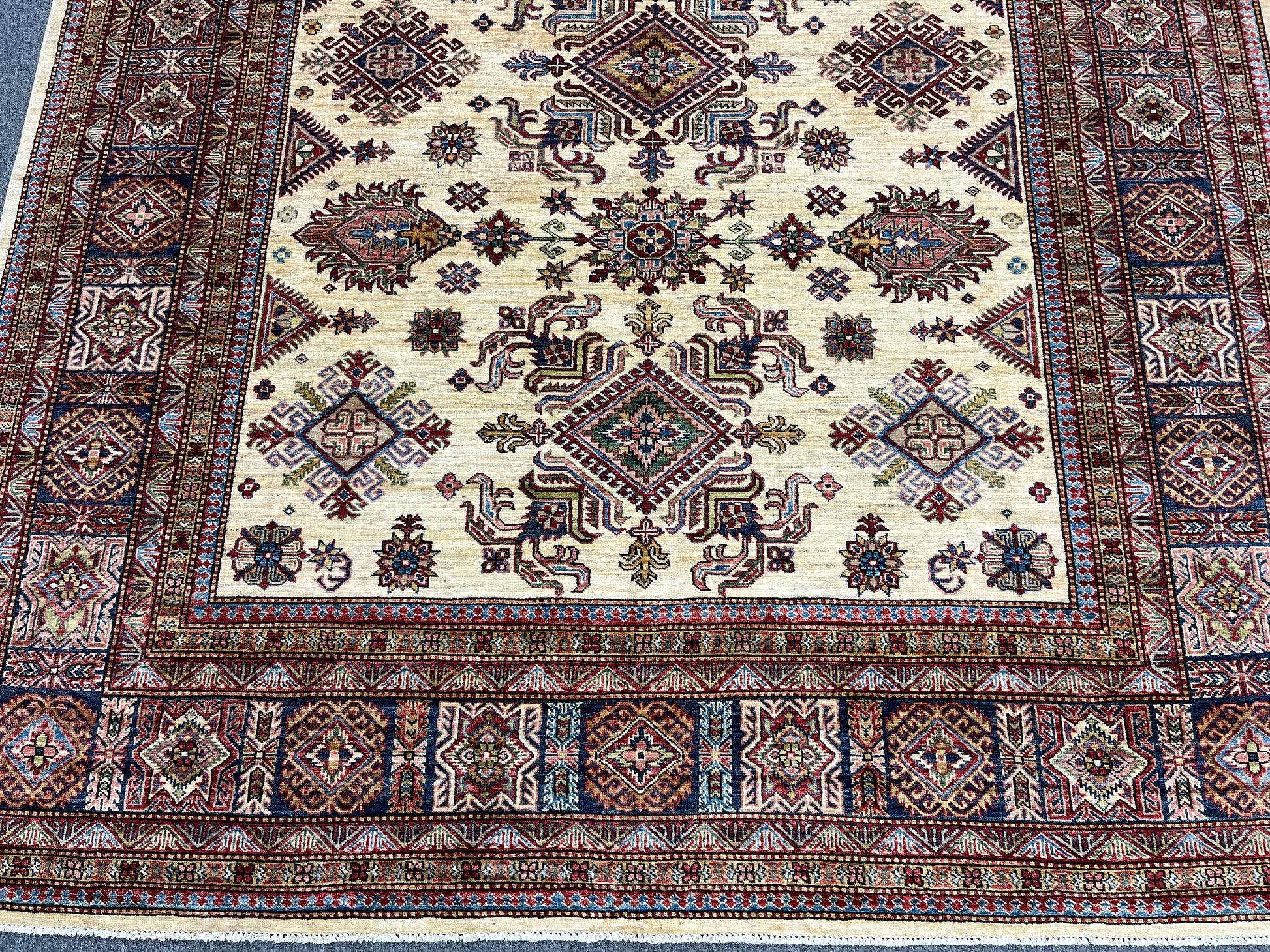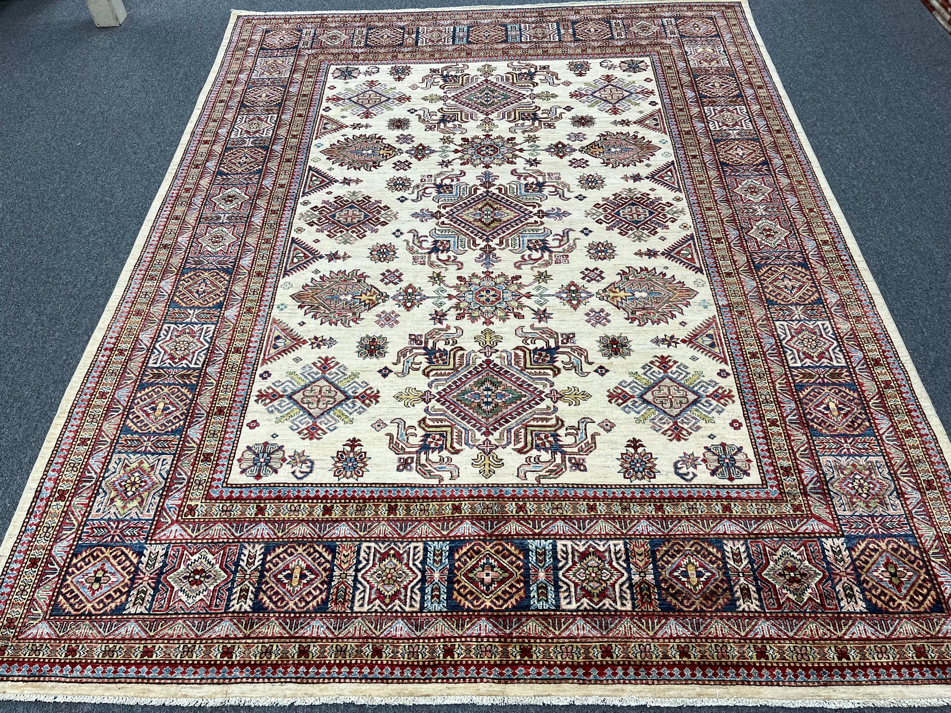 Beige Multicolor Super Kazak 8X10 Handmade Wool Rug # 14350