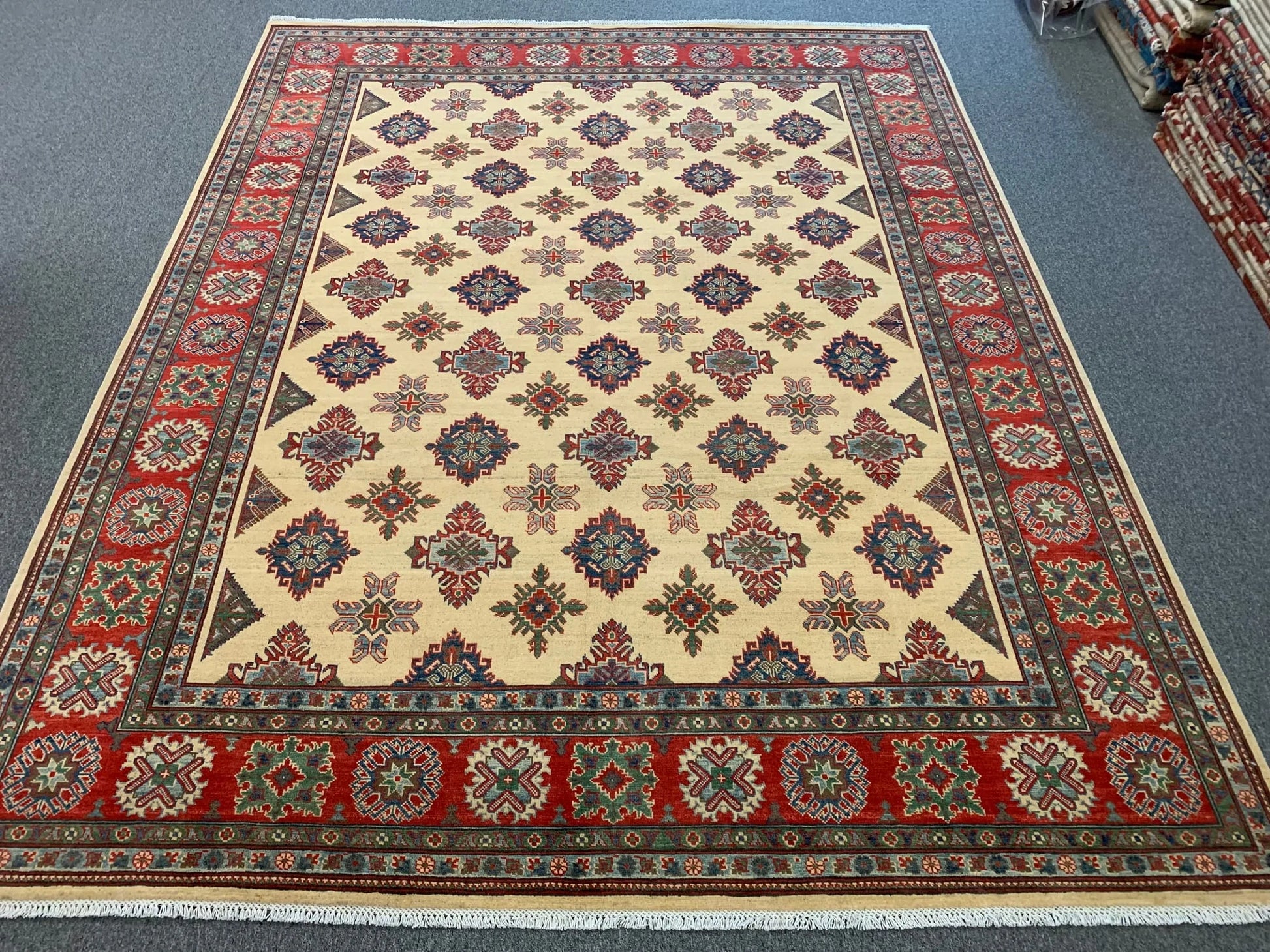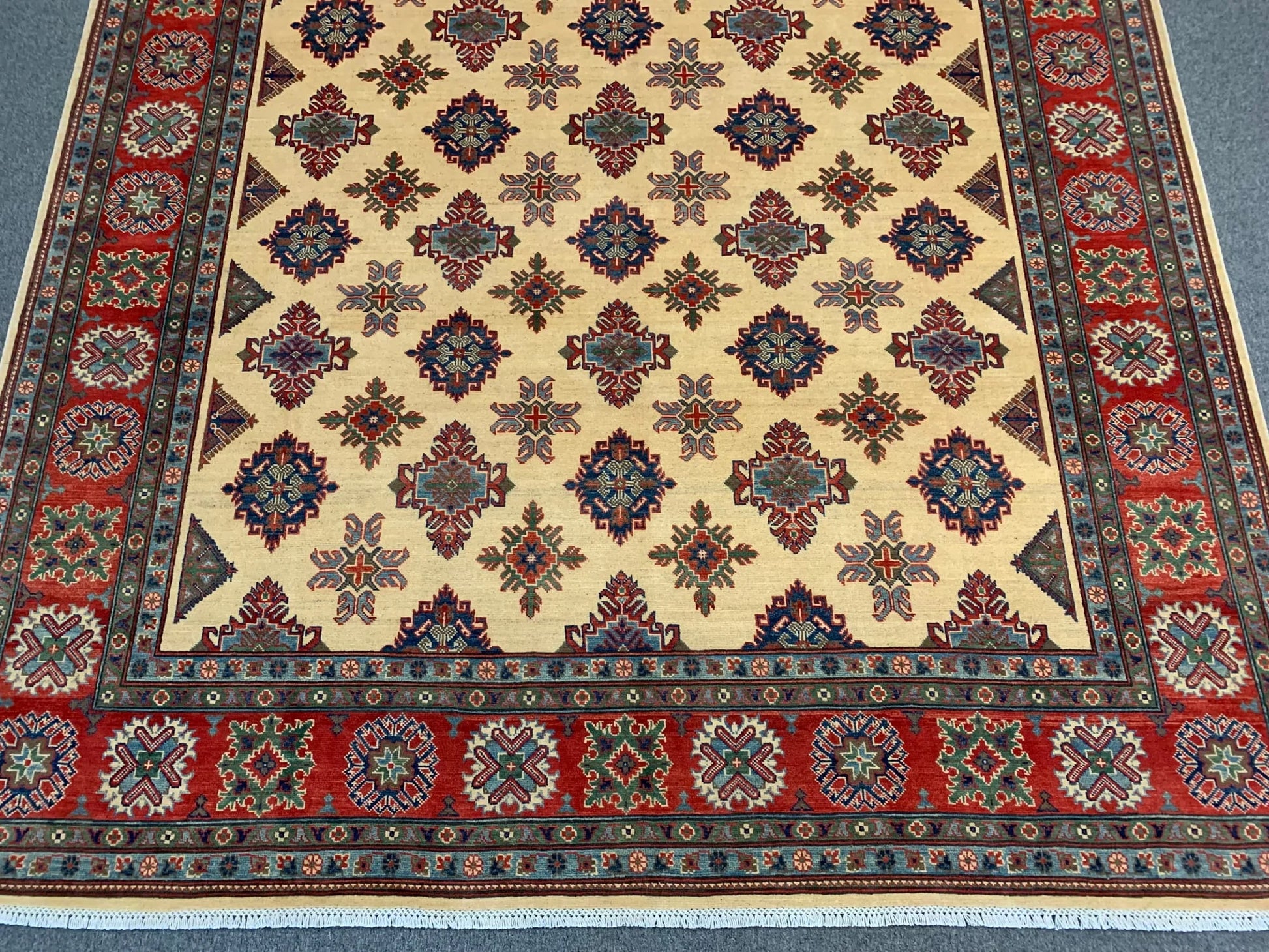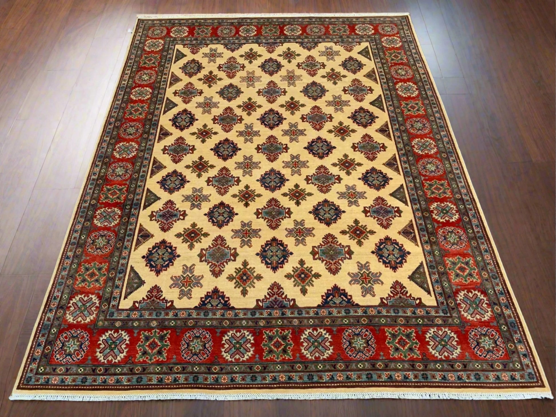Beige/Red Kazak 9X11 Handmade Wool Rug # 11636