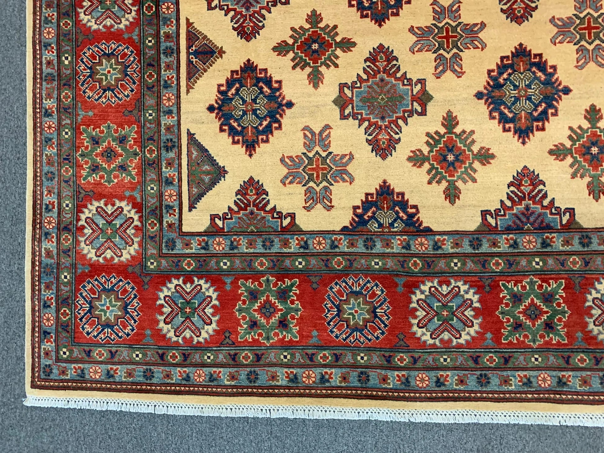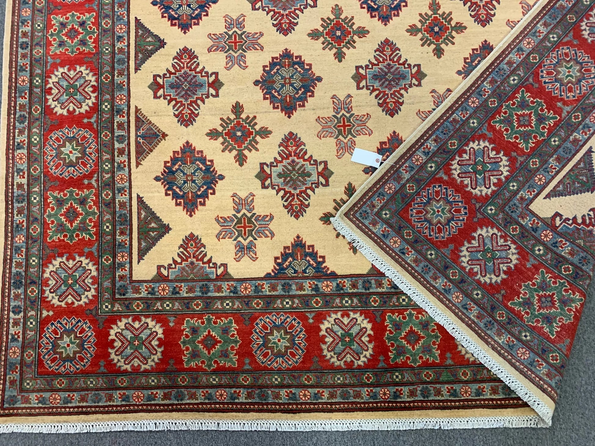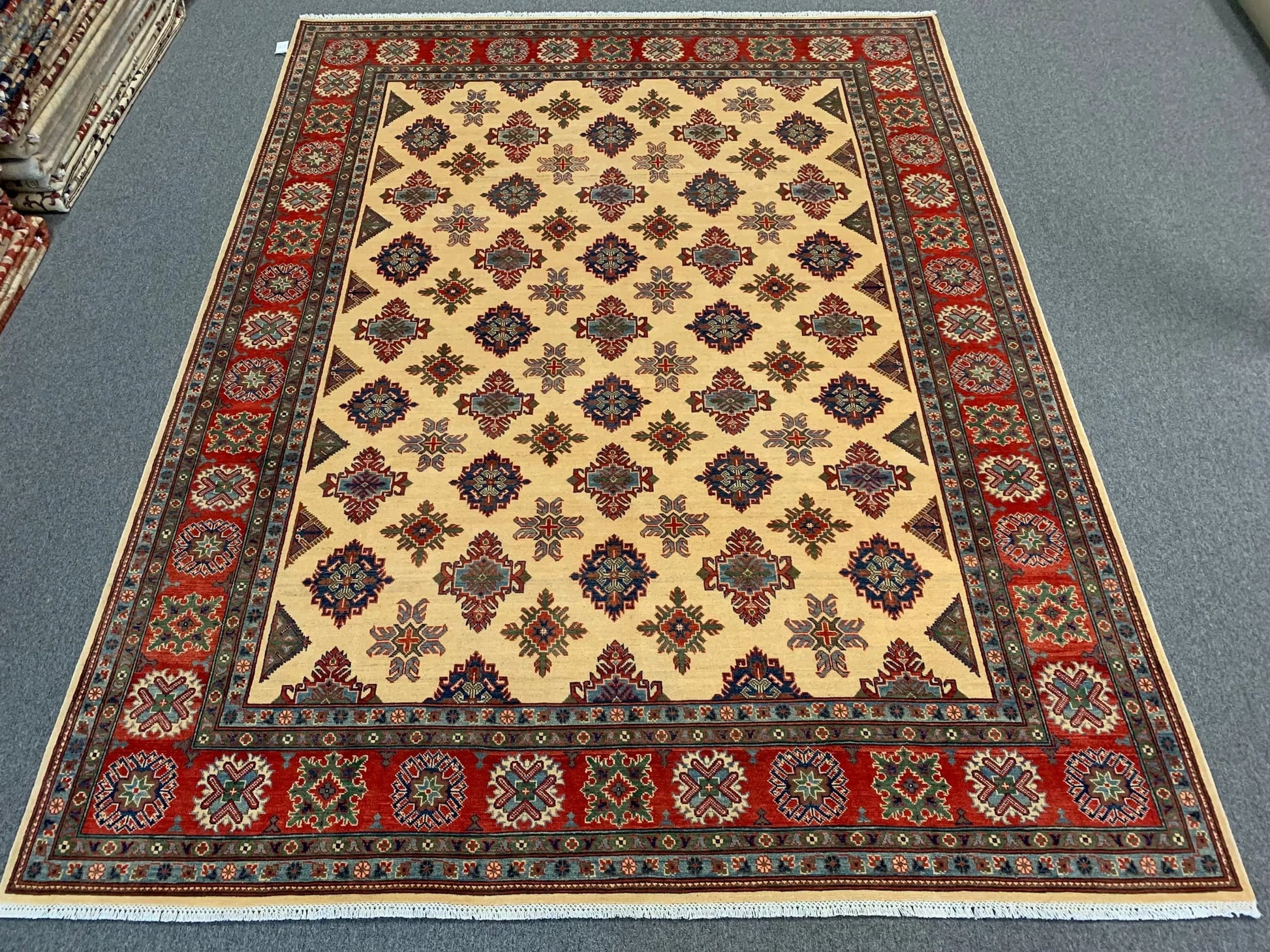 Beige/Red Kazak 9X11 Handmade Wool Rug # 11636