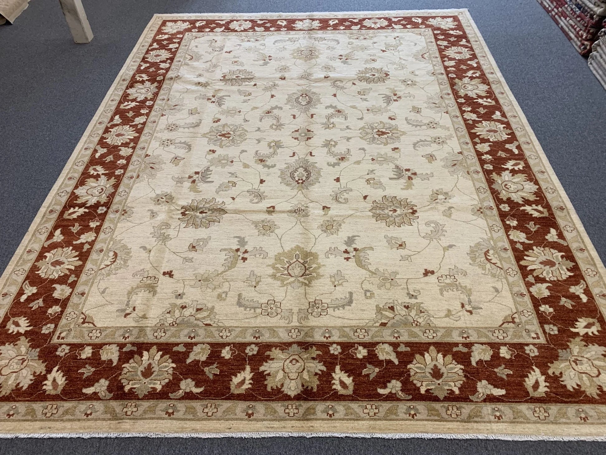 Beige/Rust 9X12 Ziegler Handmade Wool Rug # 7965