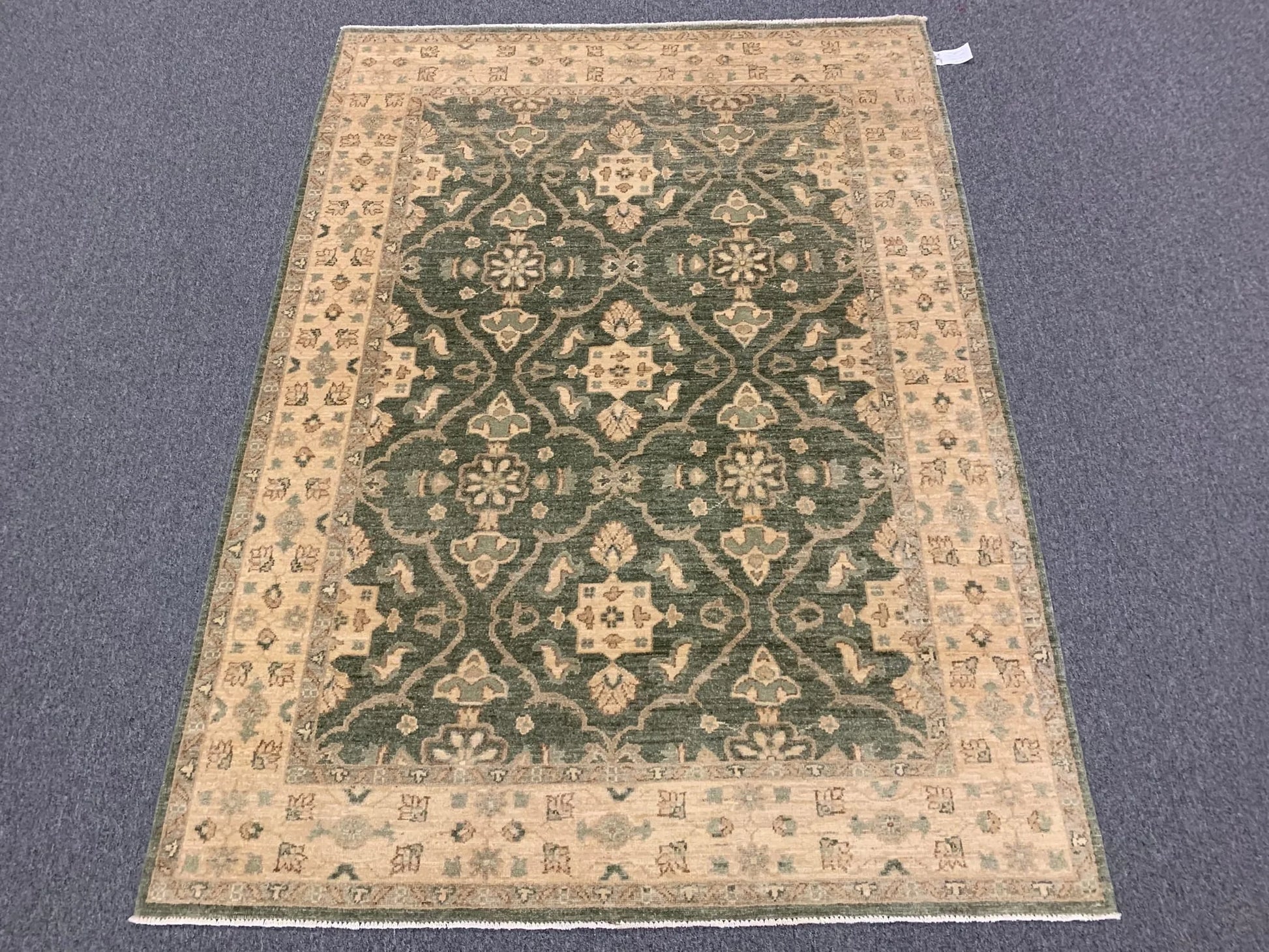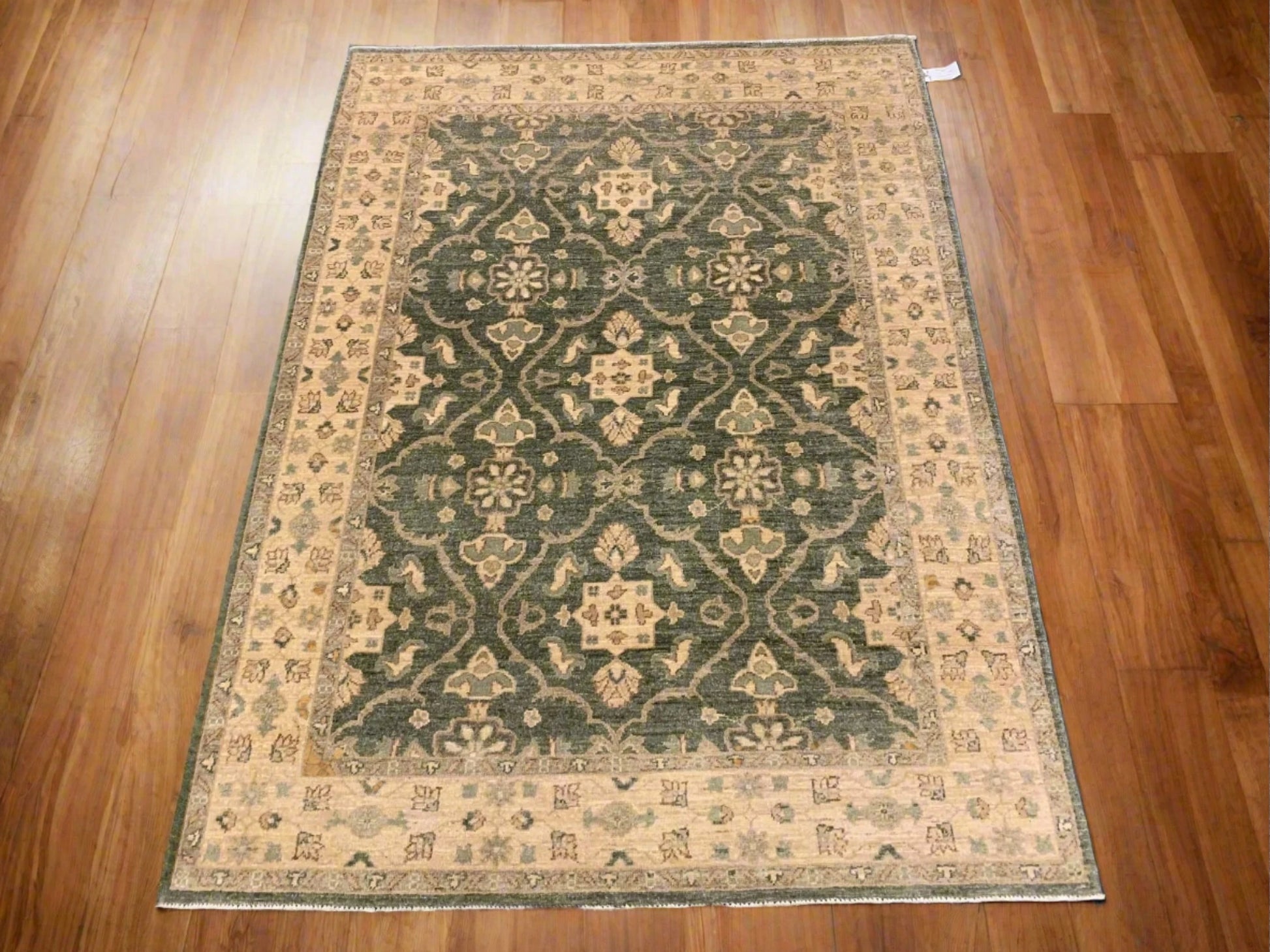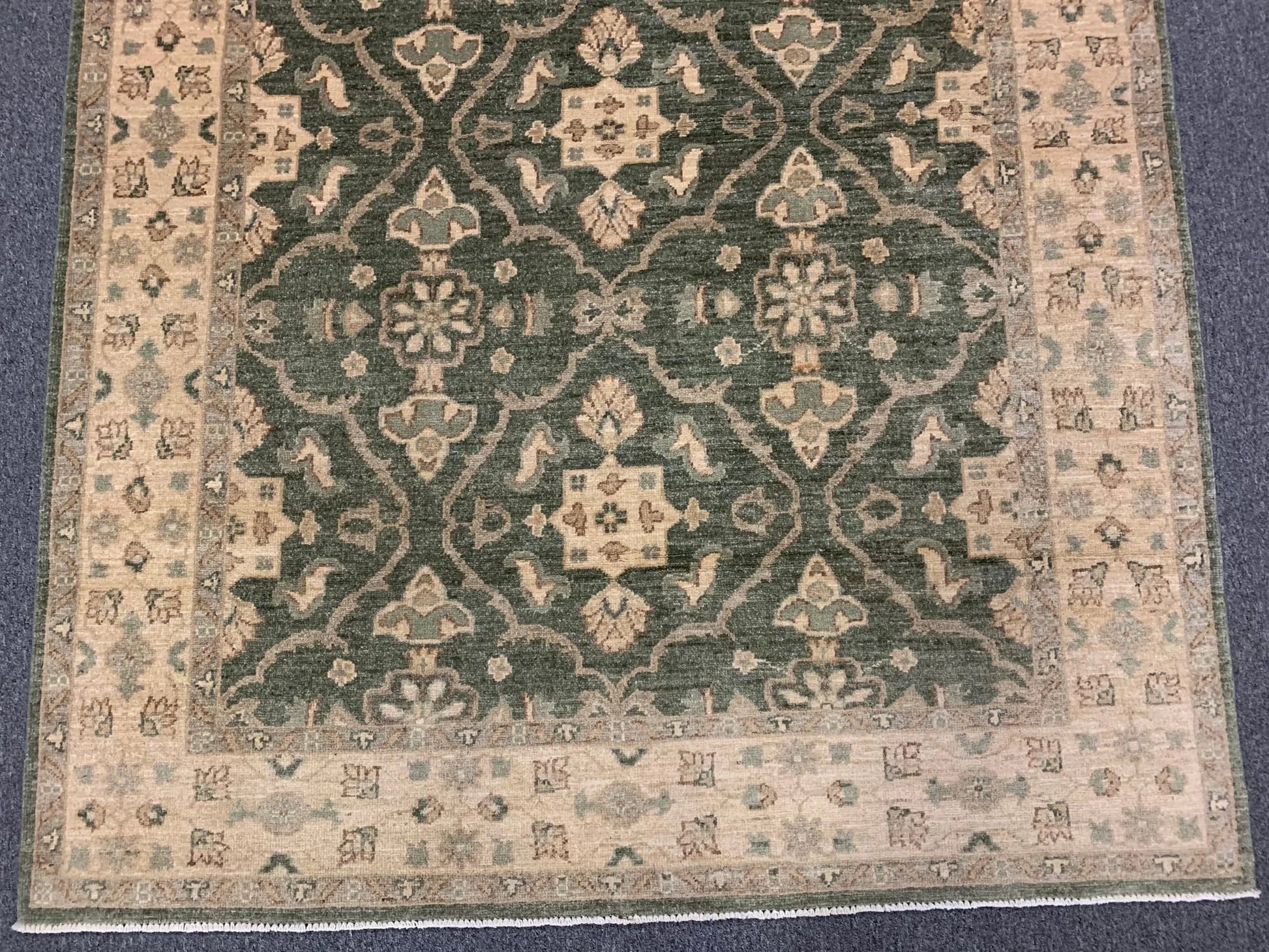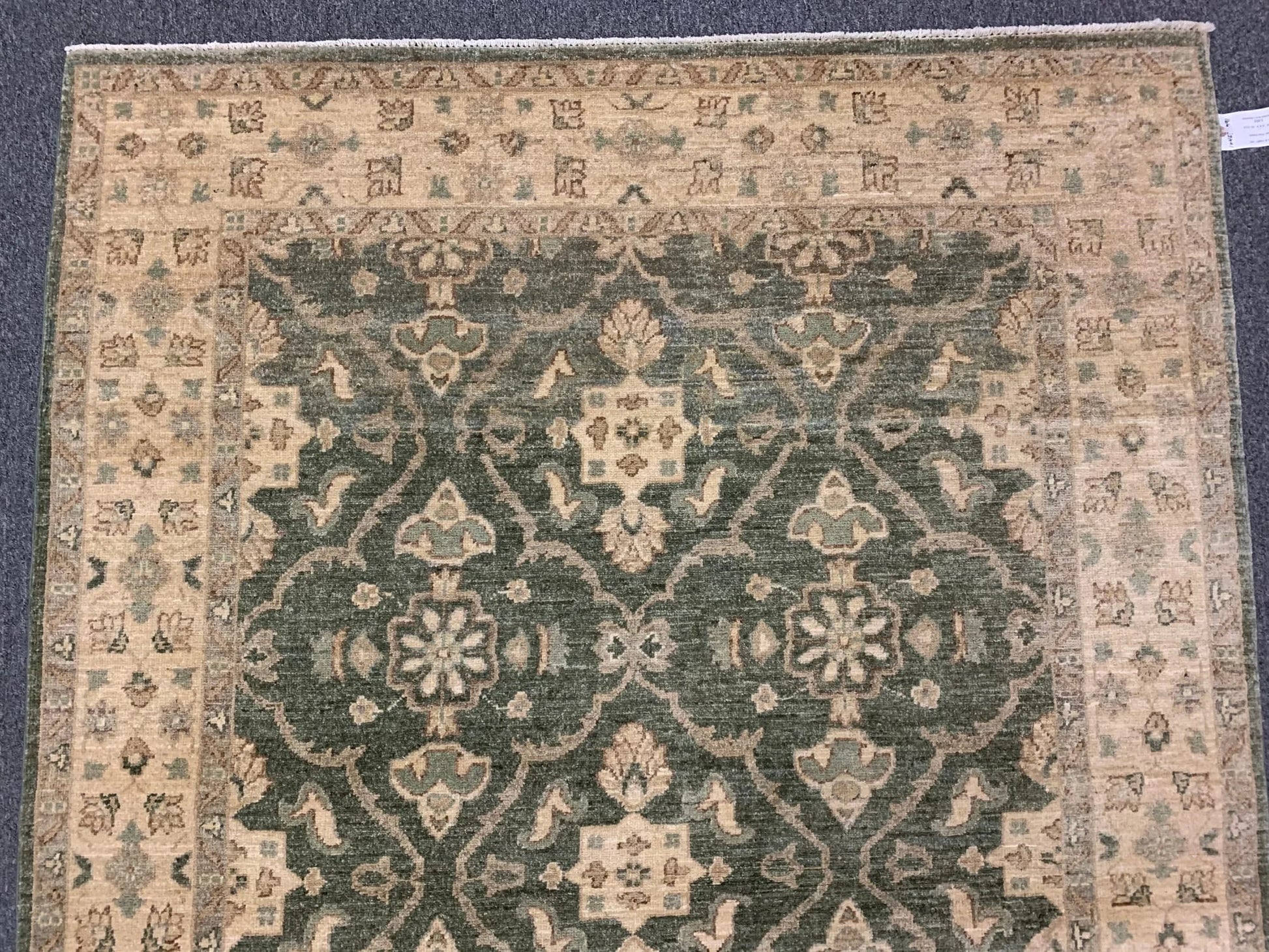 Chobi antique Green 5X7 Handmade Wool Rug # 10467