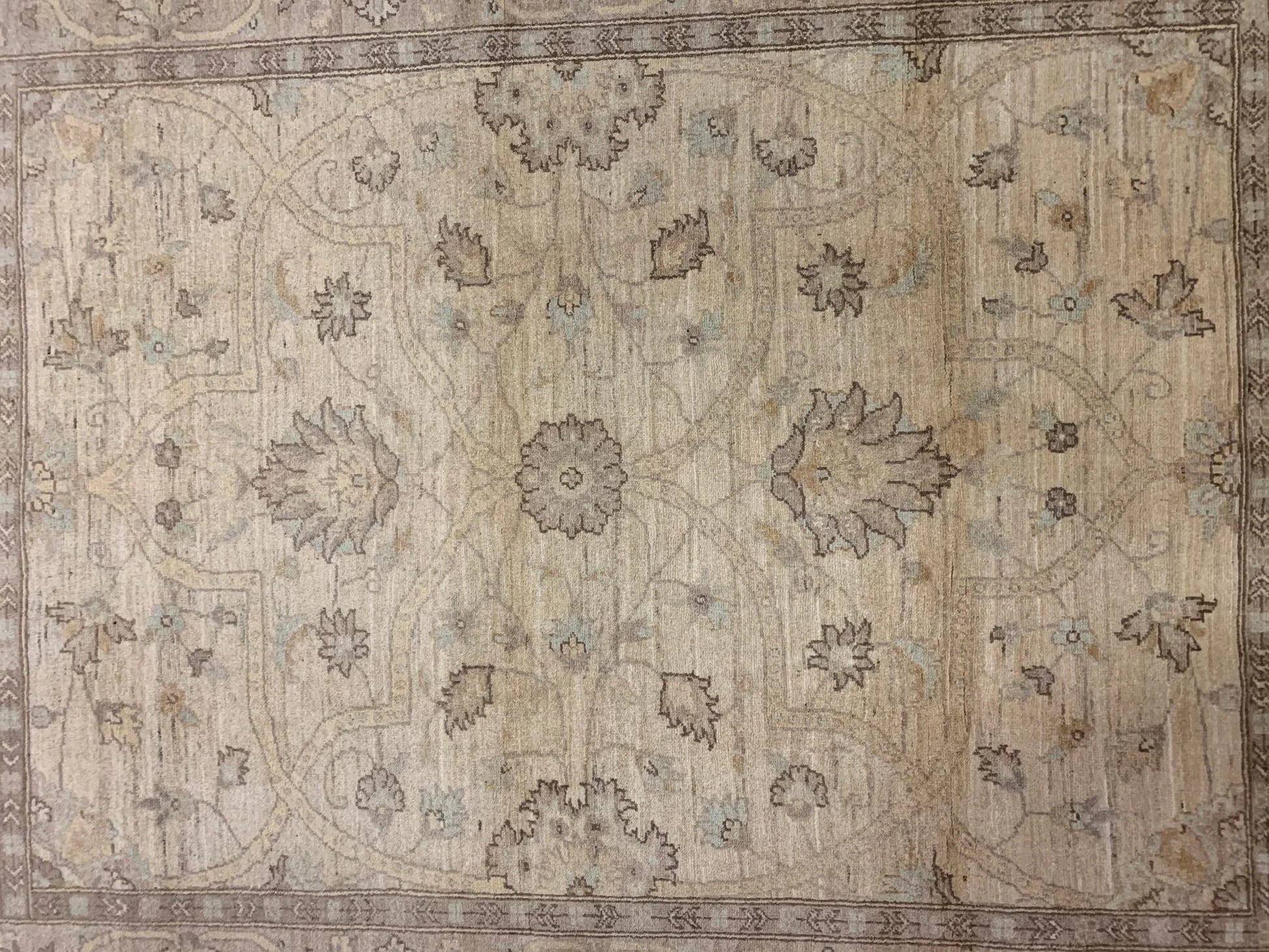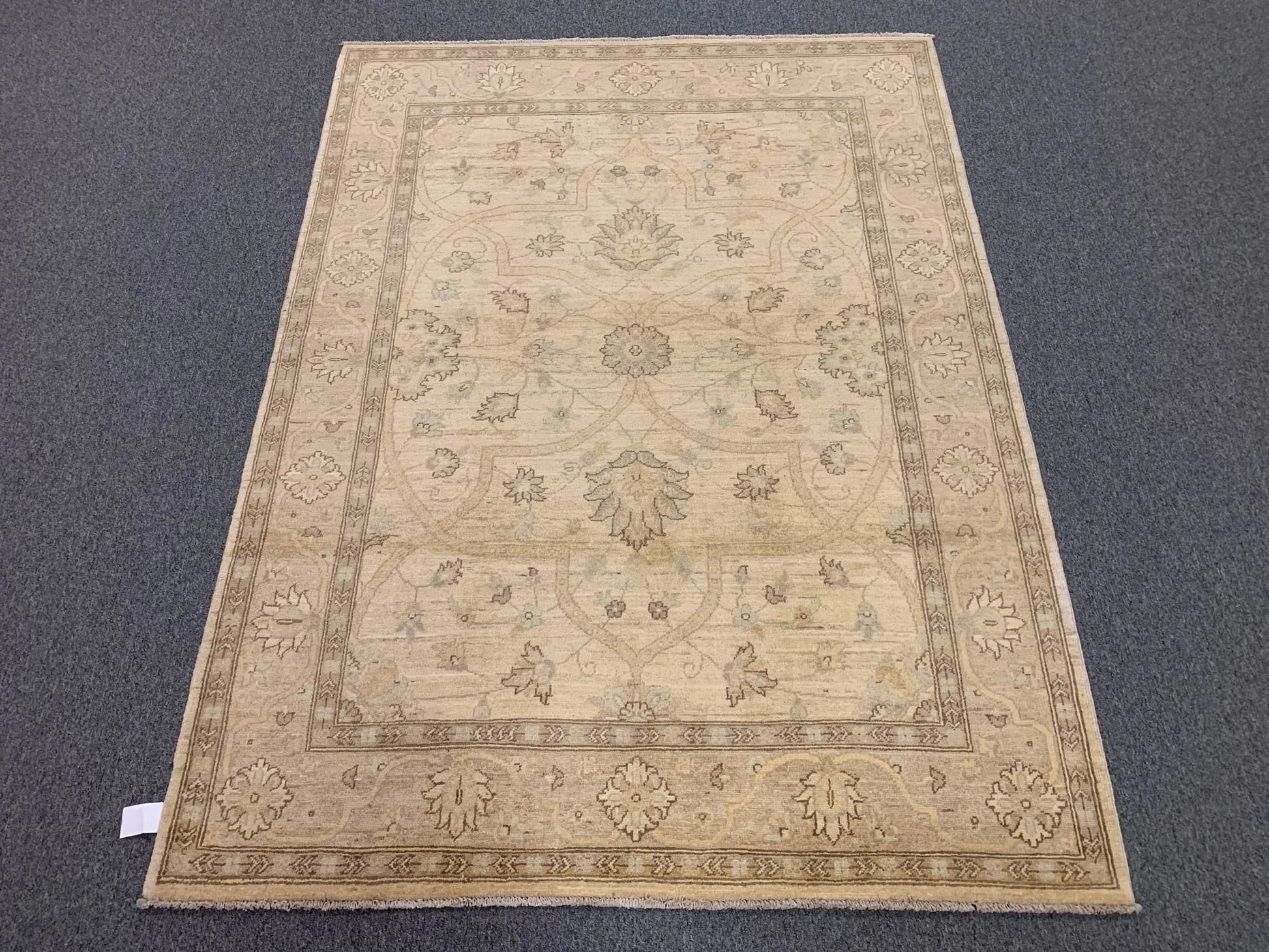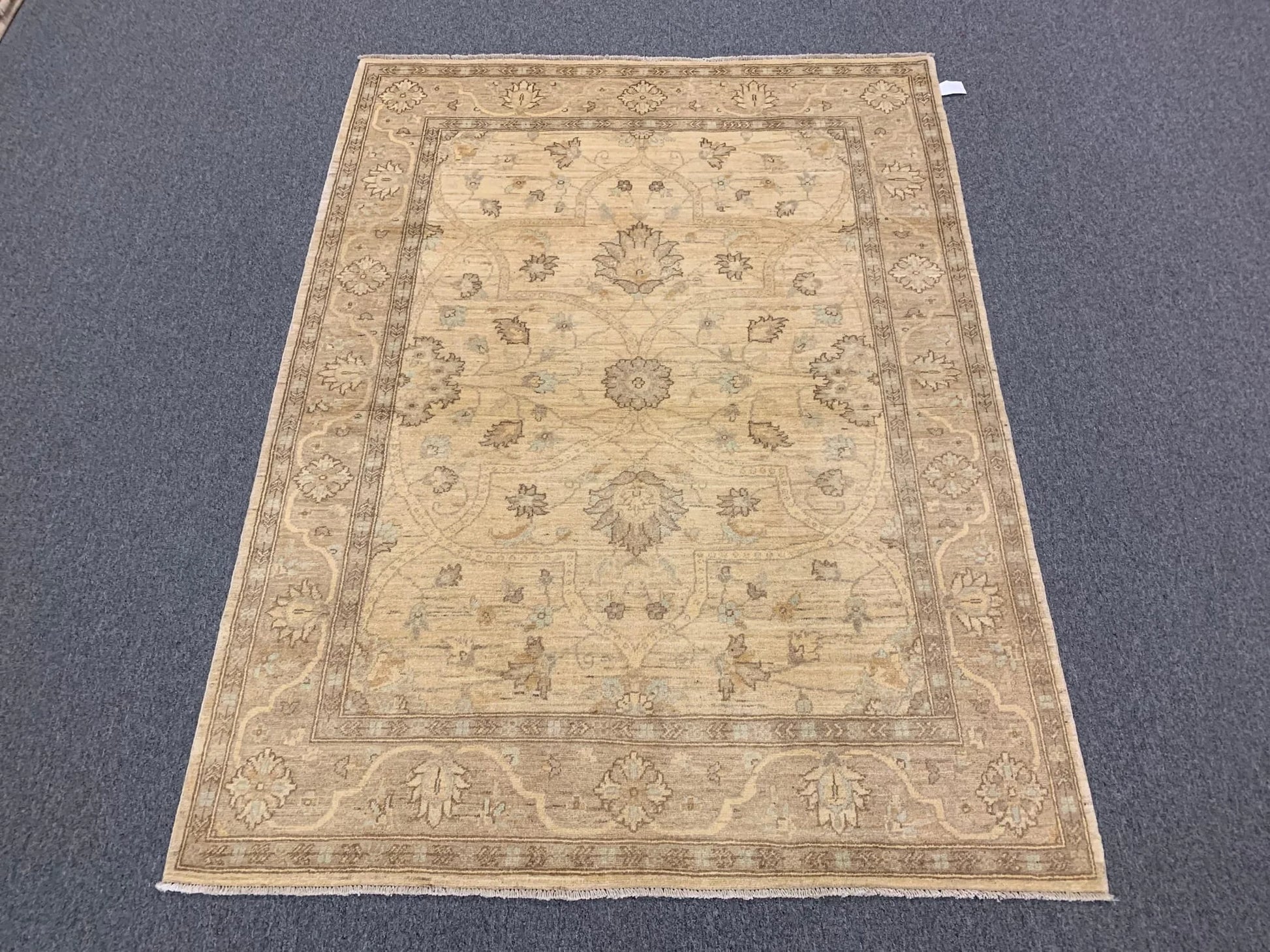 Chobi Ivory/Brown 5X7 Handmade Wool Rug # 10854