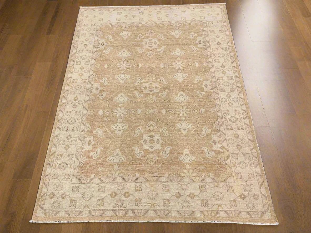 Chobi Sandy Beige 5X7 Handmade Wool Rug # 9312