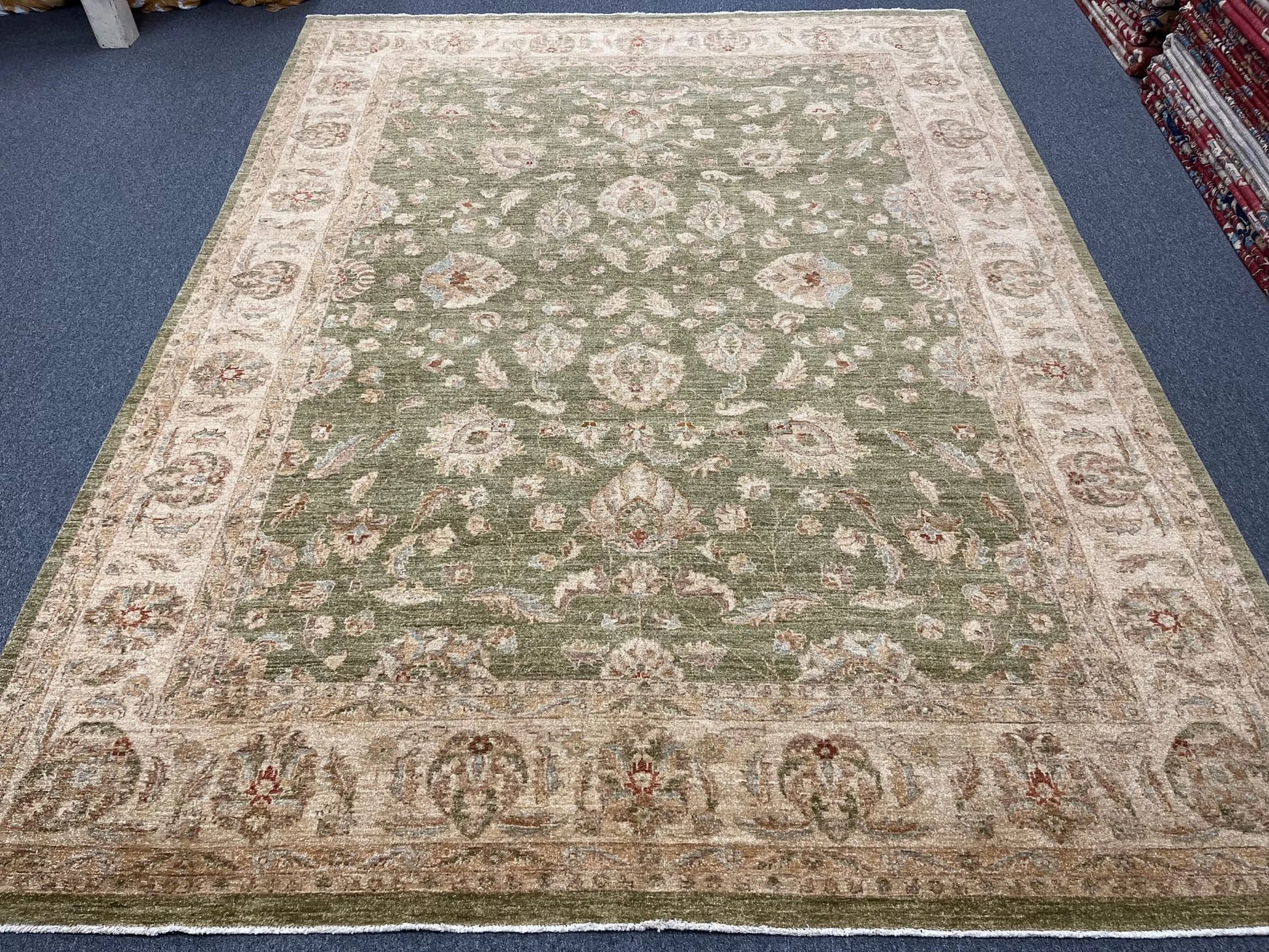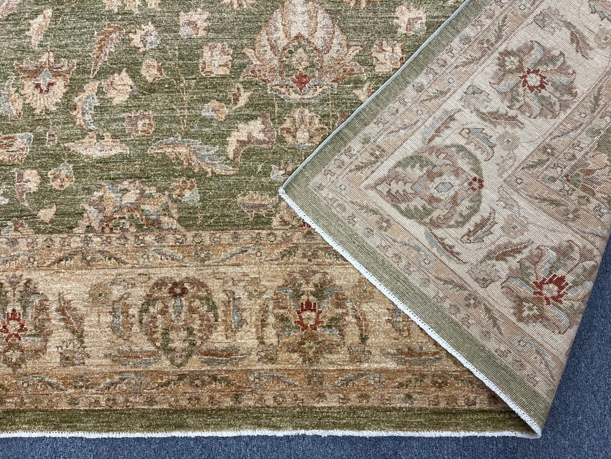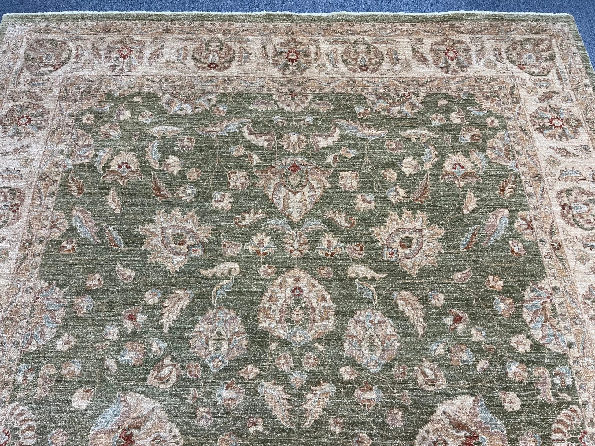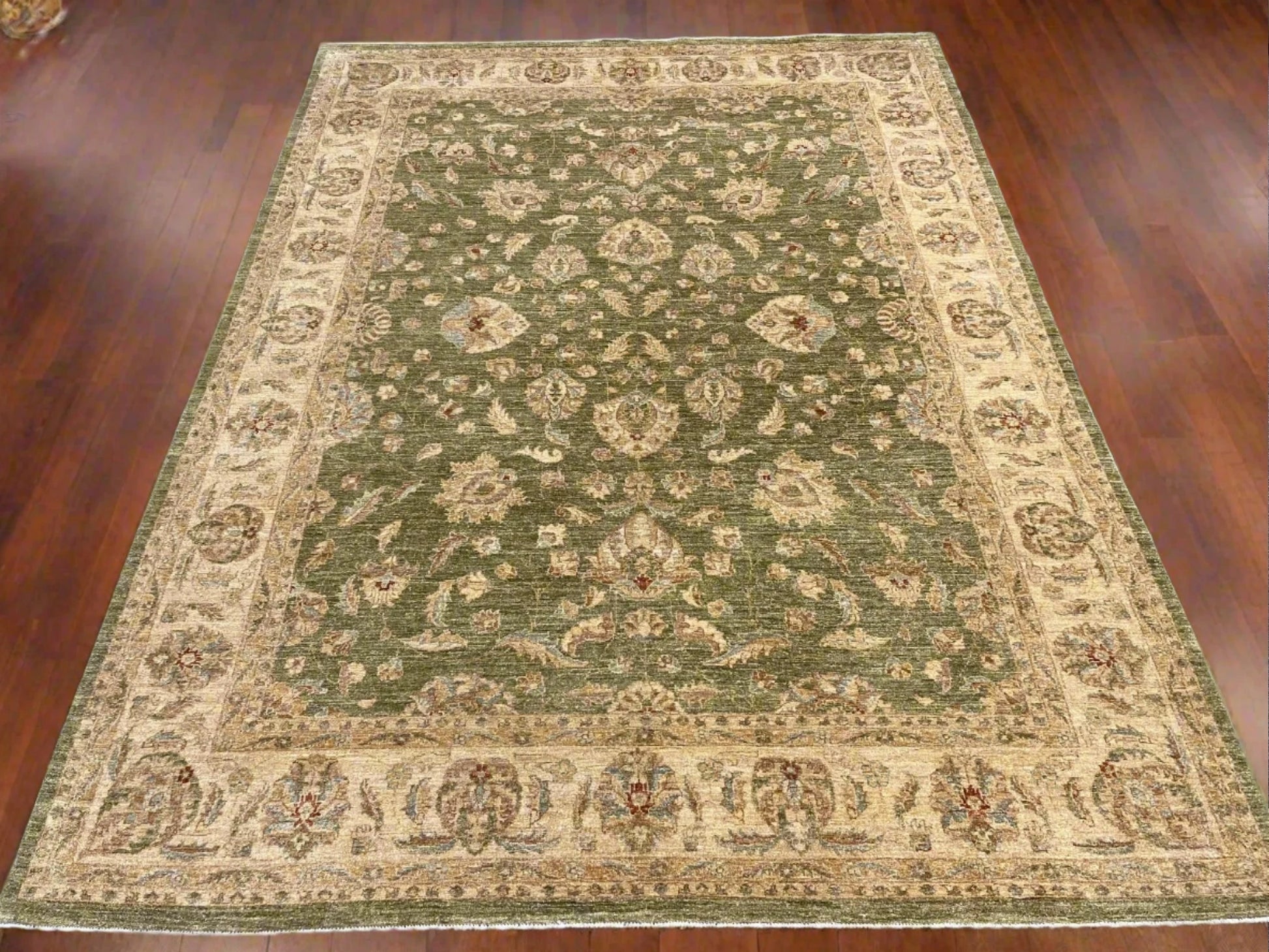 Chobi Soft Green 9X12 Handmade Wool Rug # 13575