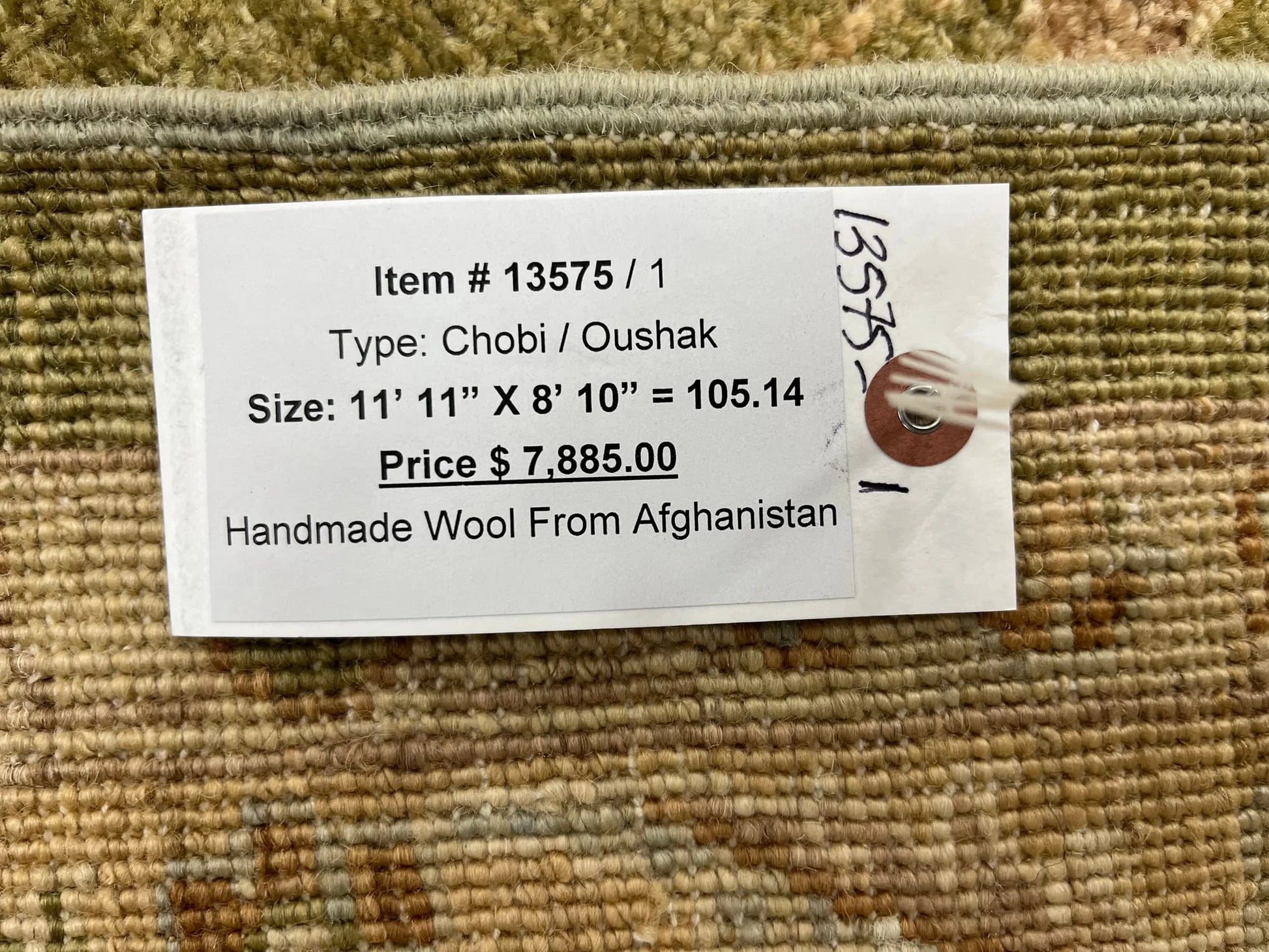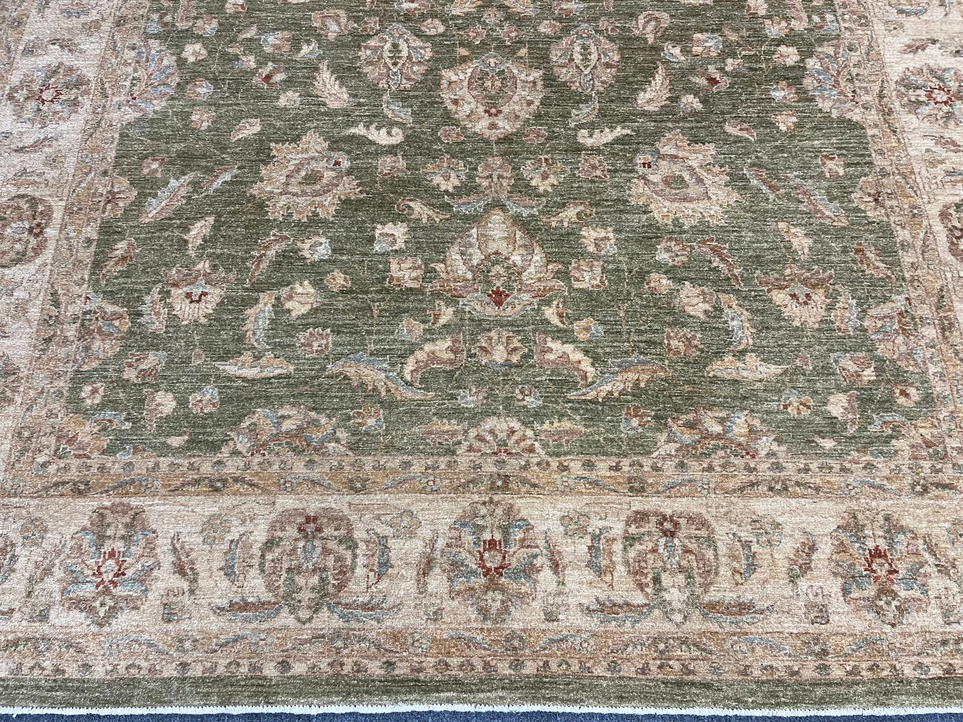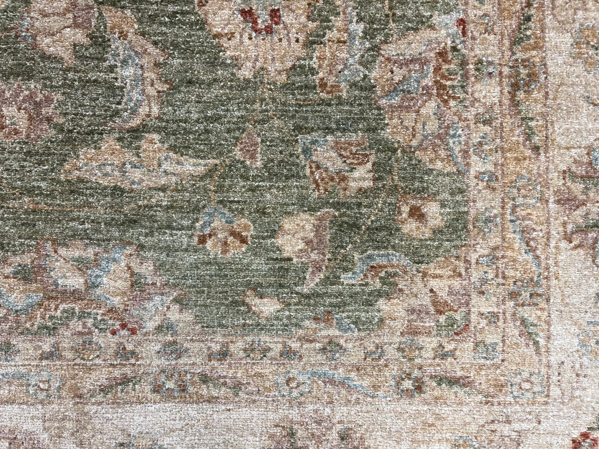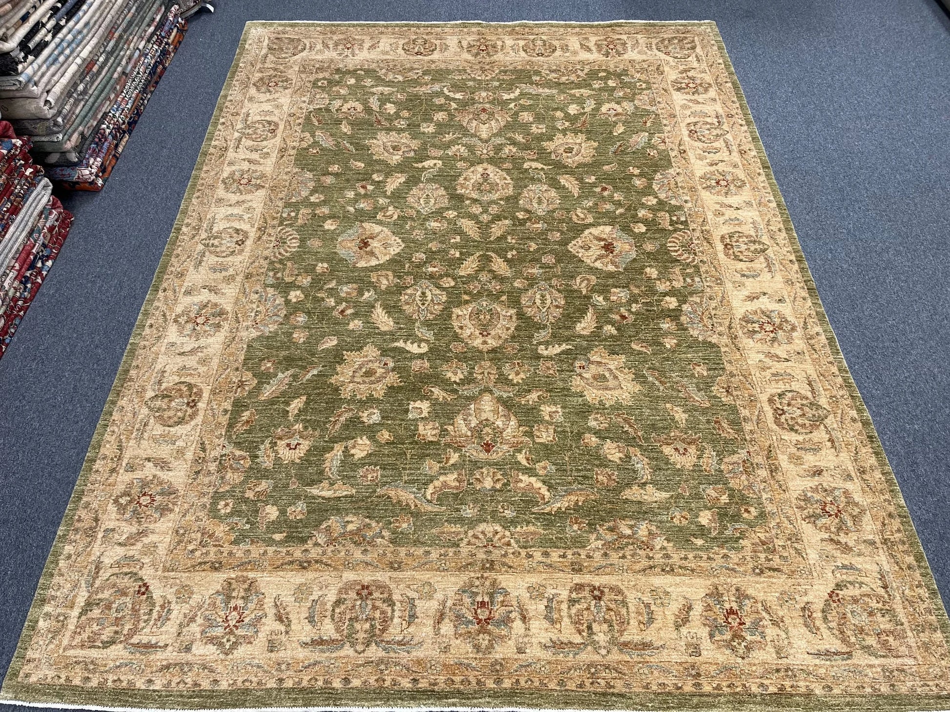 Chobi Soft Green 9X12 Handmade Wool Rug # 13575