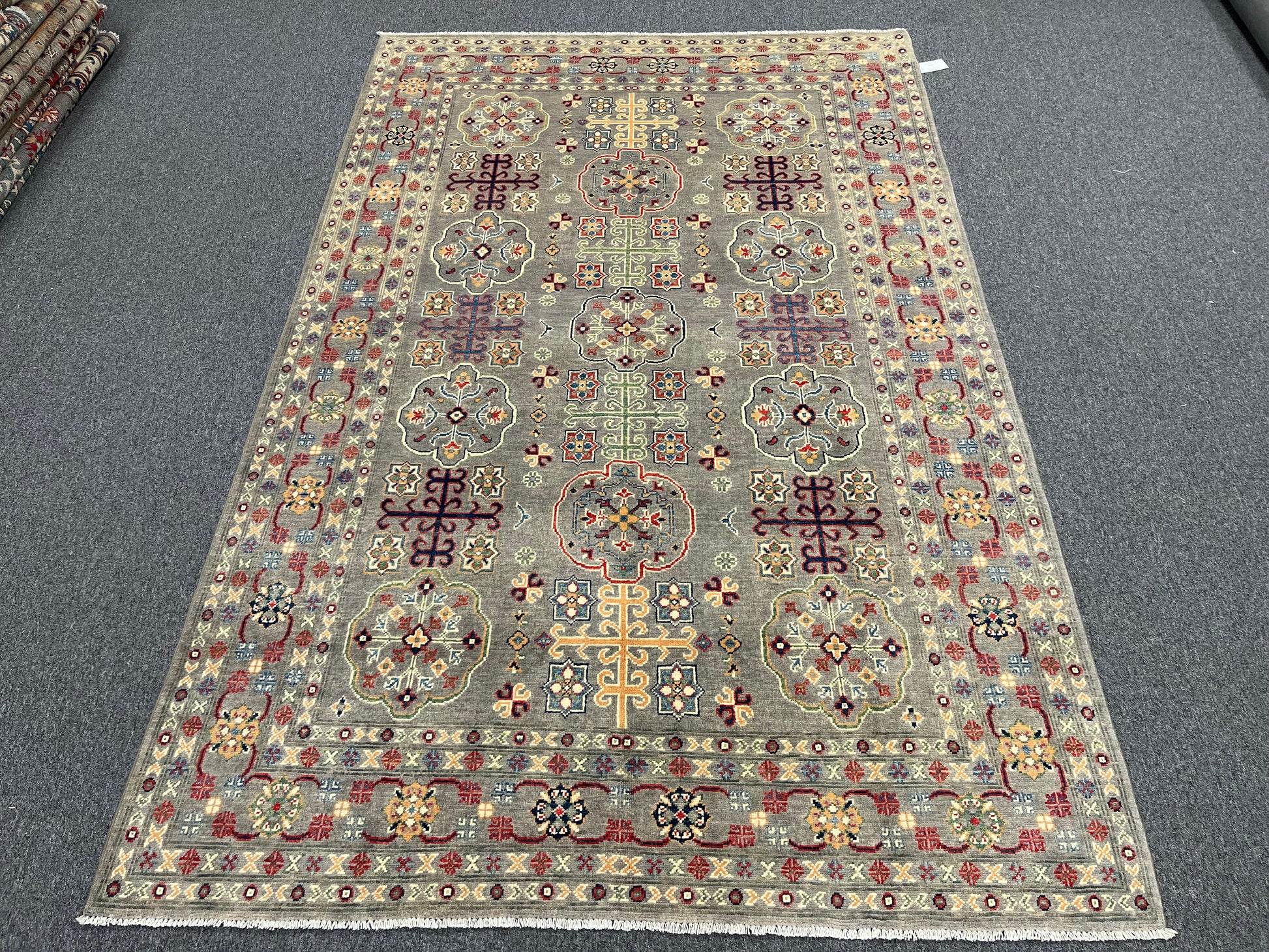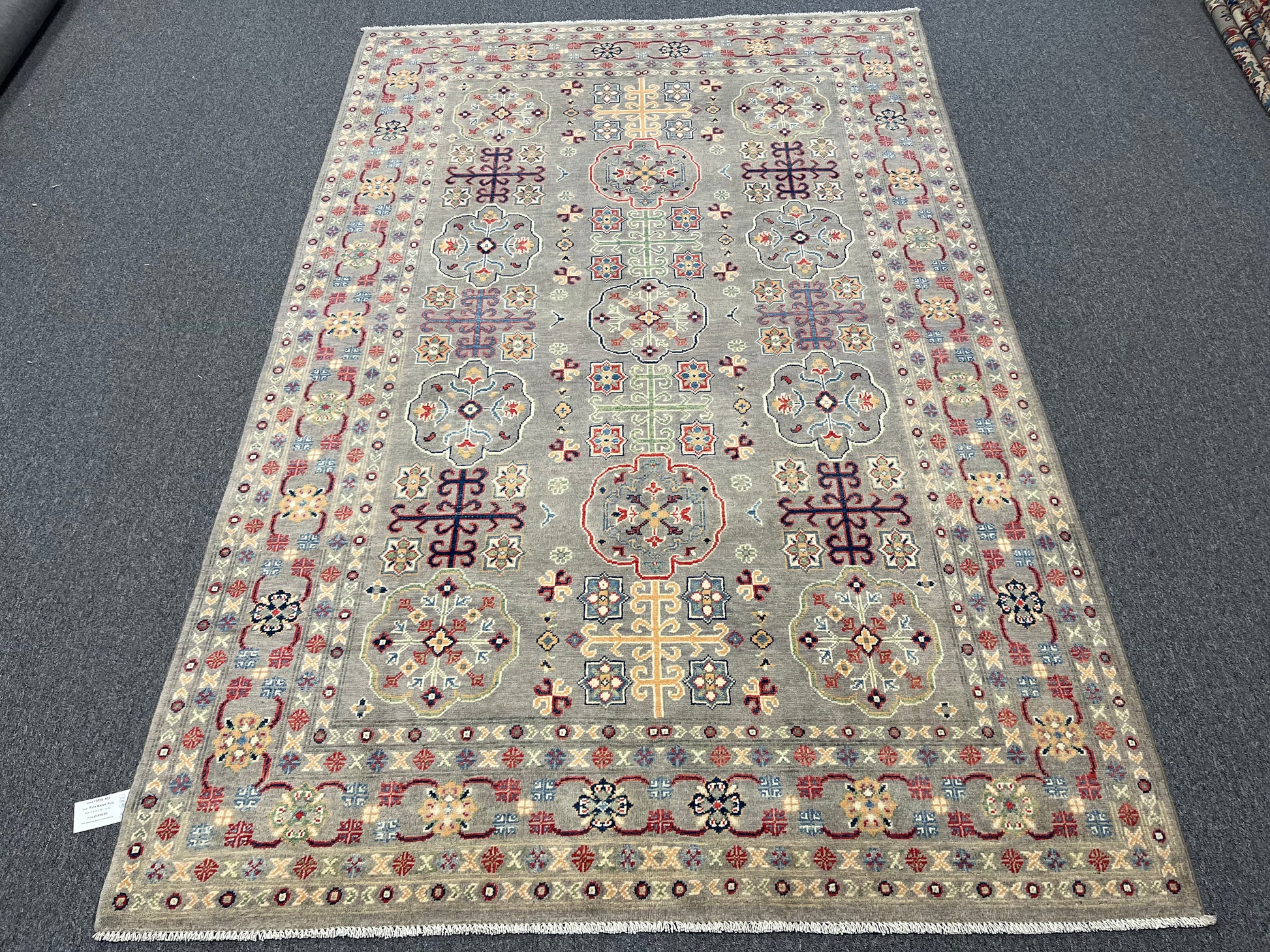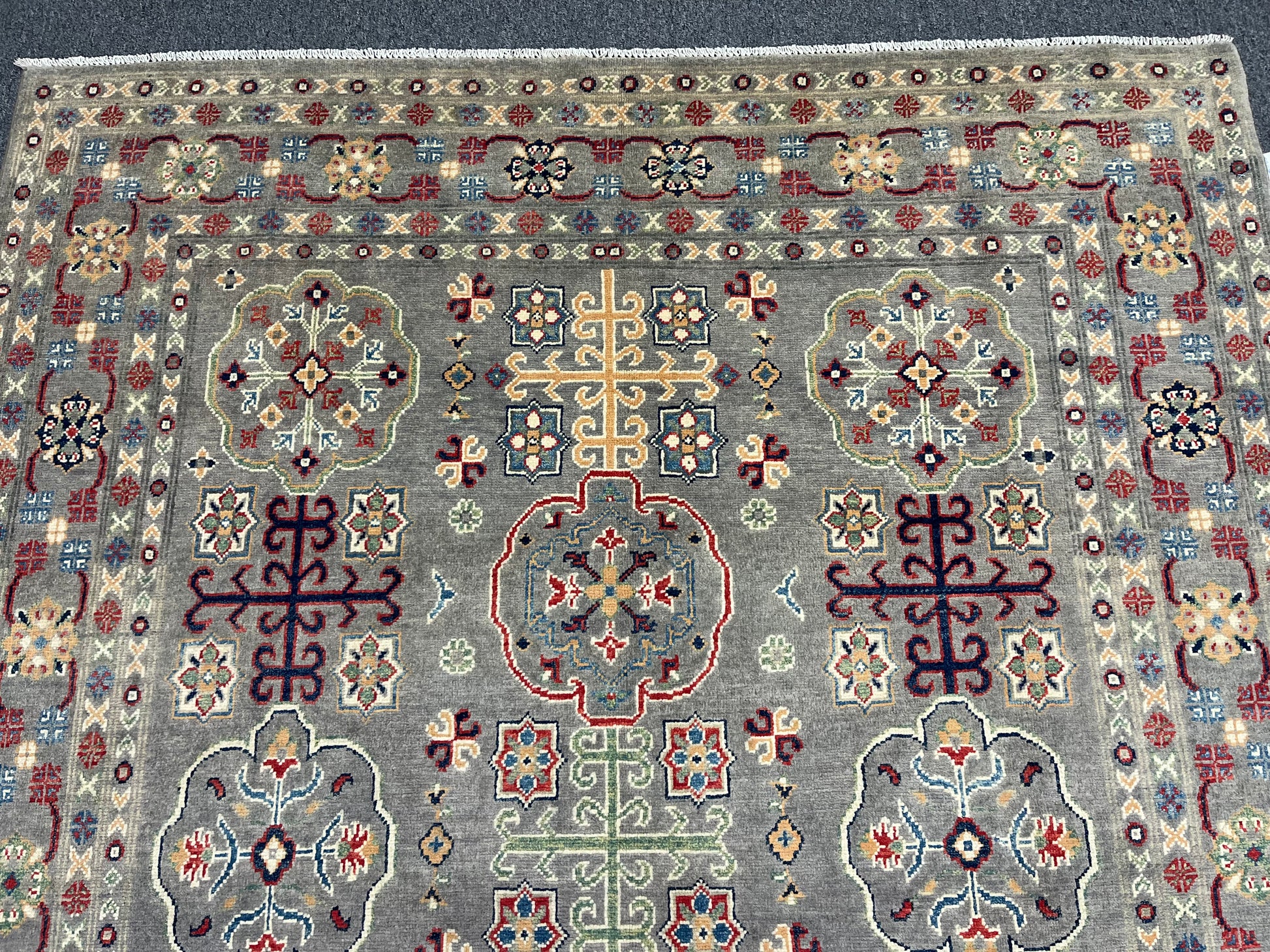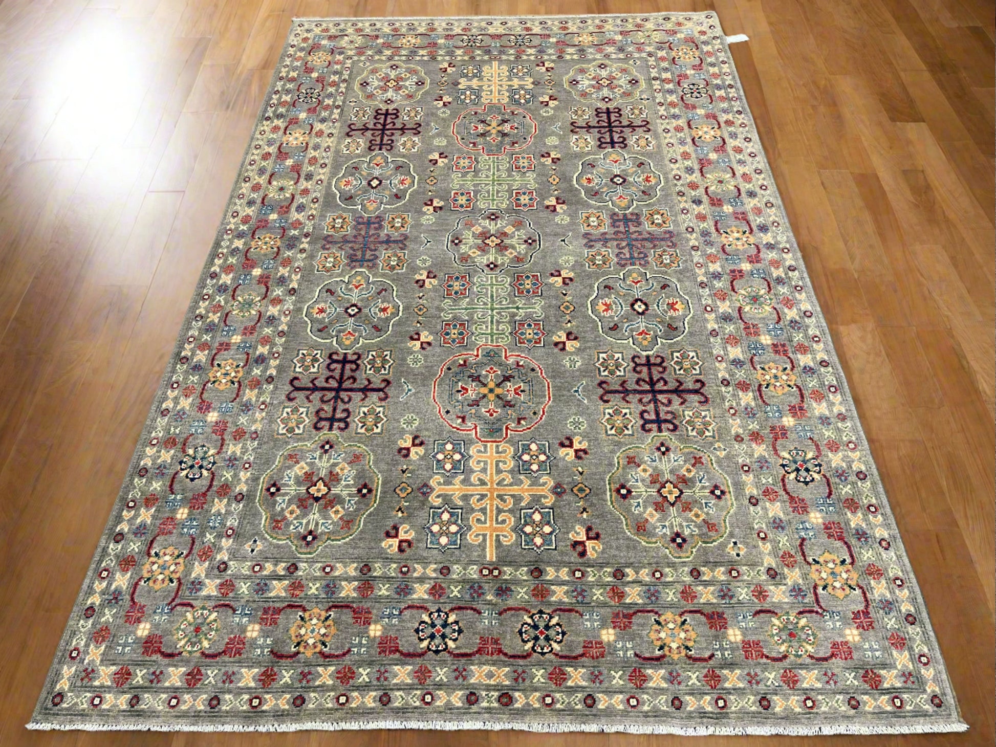 Gray Geometric Kazak 6x9 Handmade Wool Rug # 13898