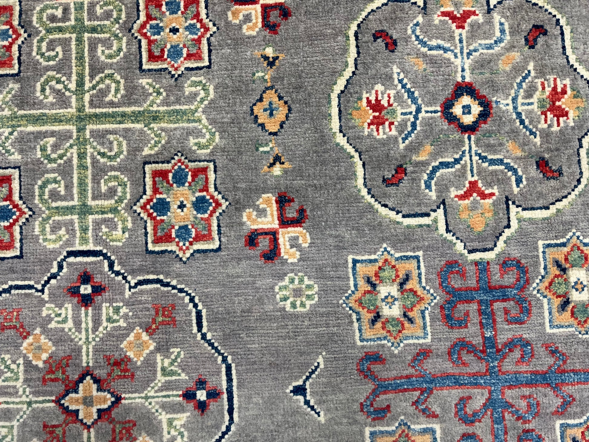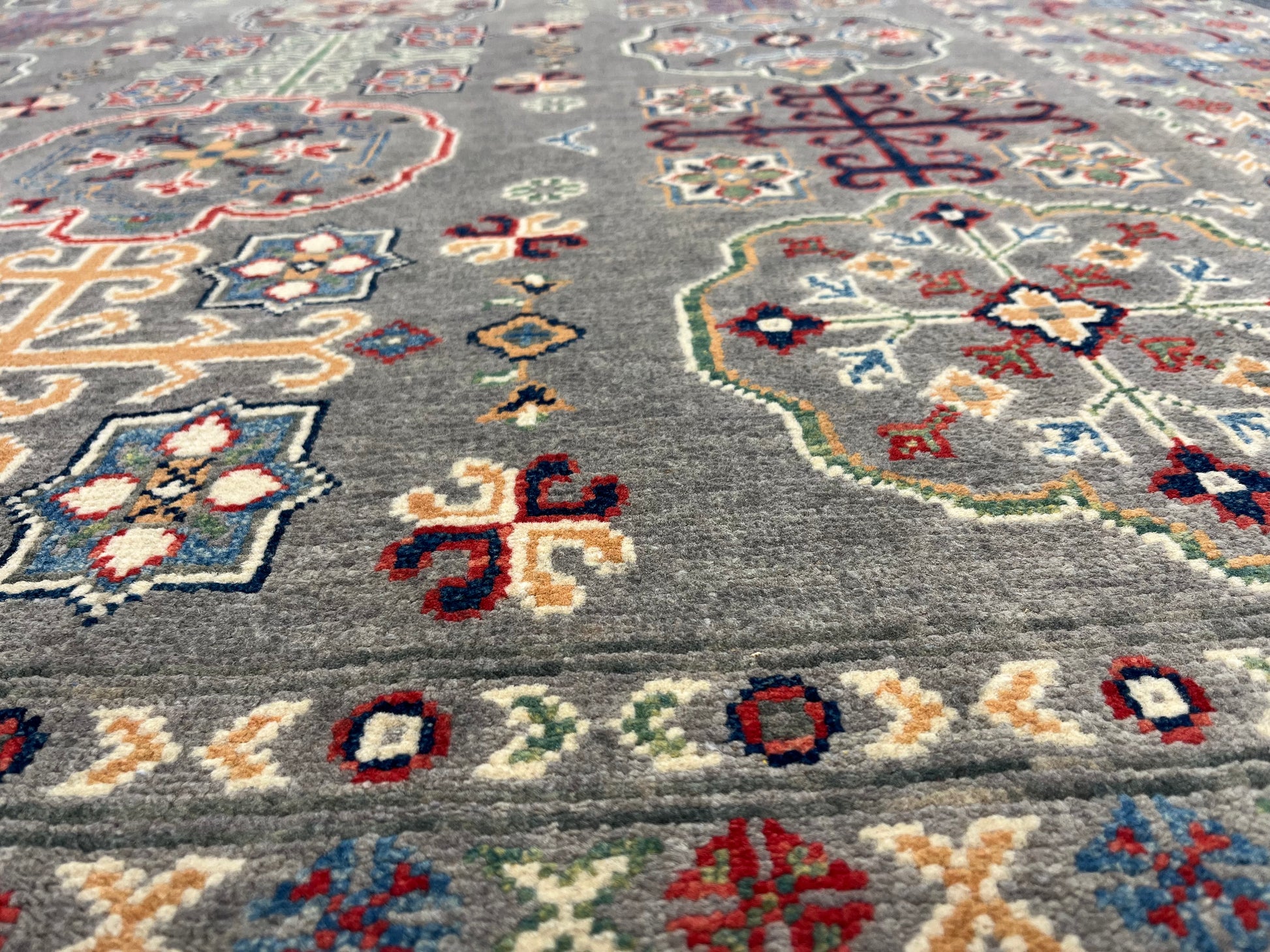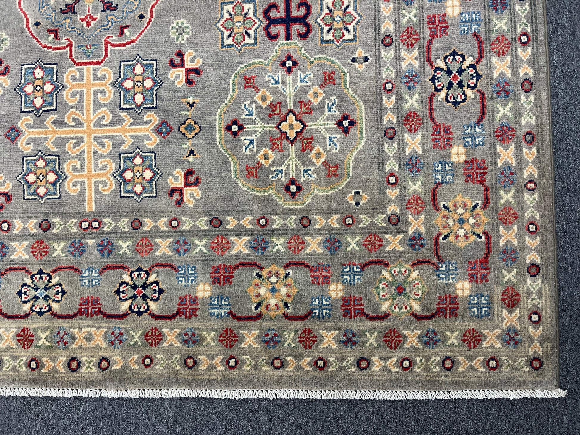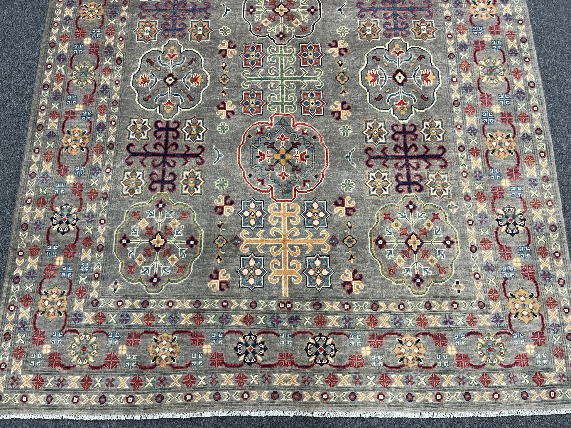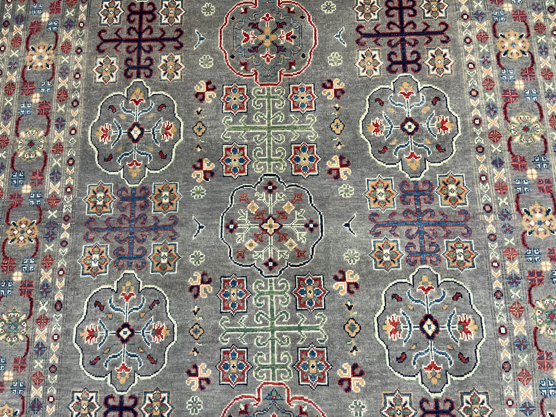 Gray Geometric Kazak 6x9 Handmade Wool Rug # 13898
