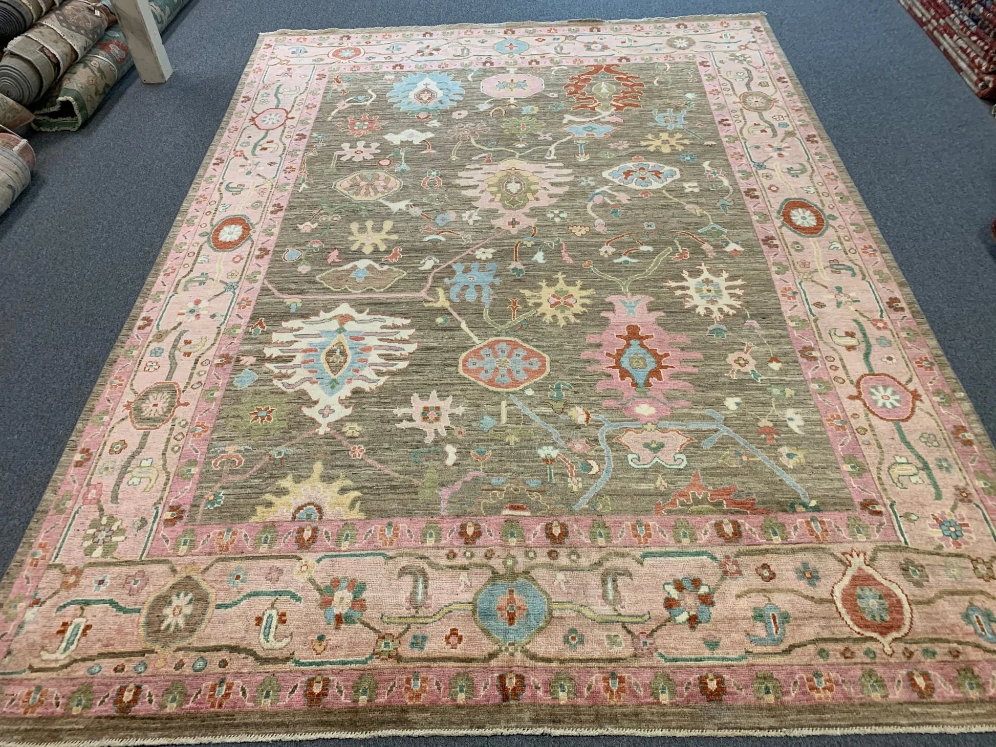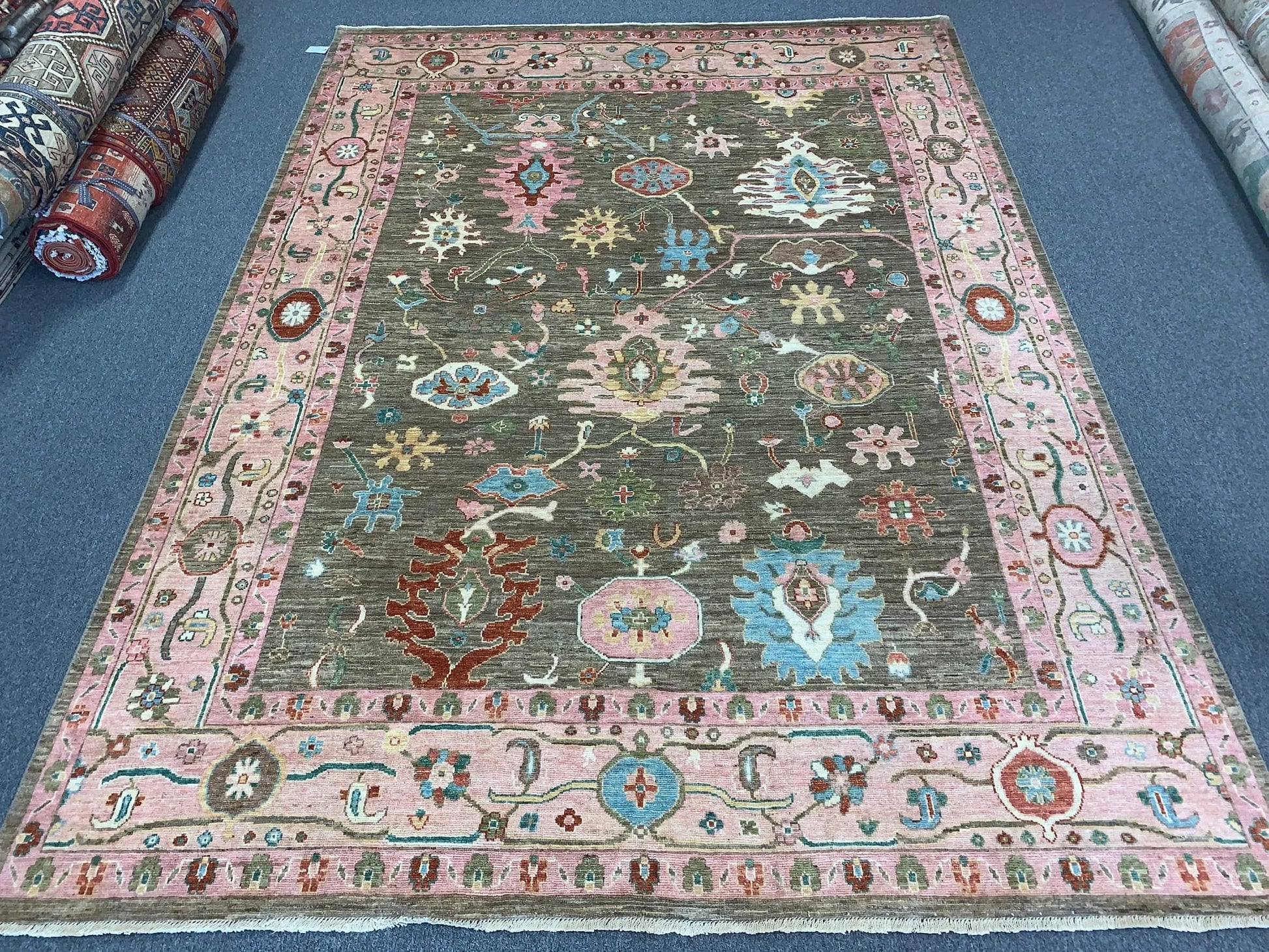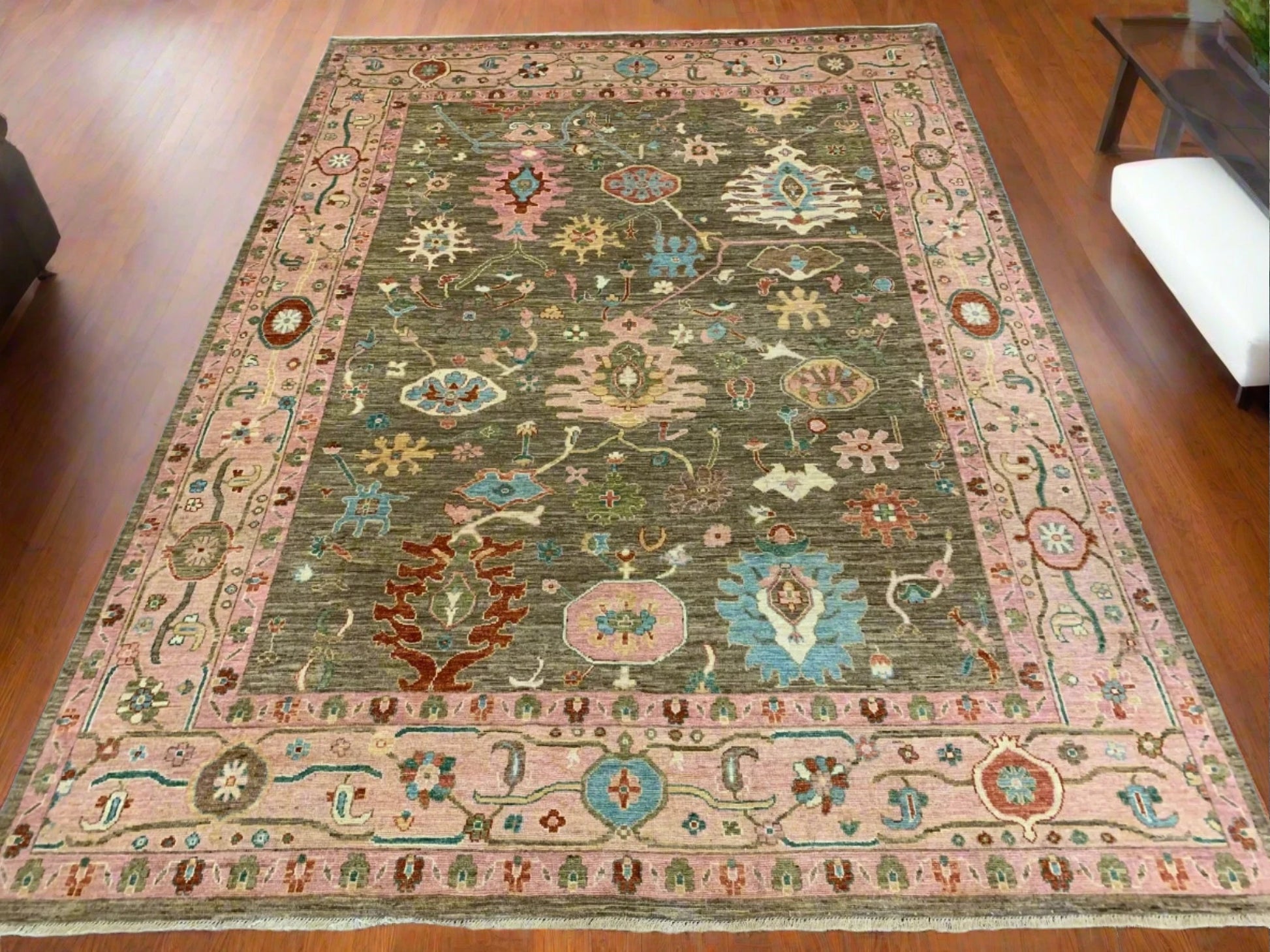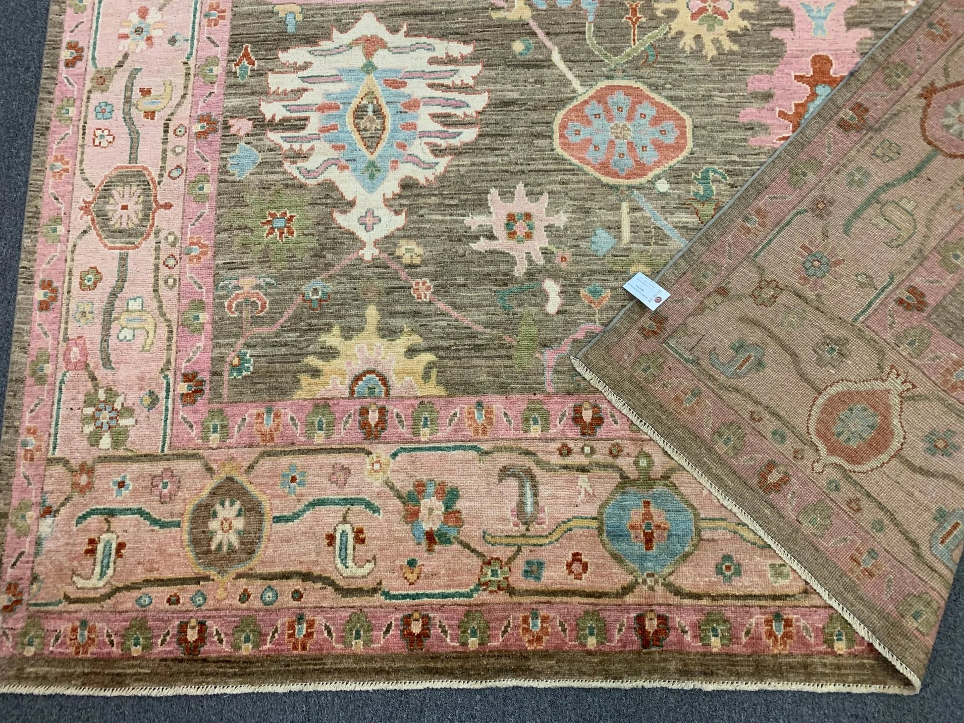 Green/Pink Oushak 9X12 Handmade Wool Rug # 12198
