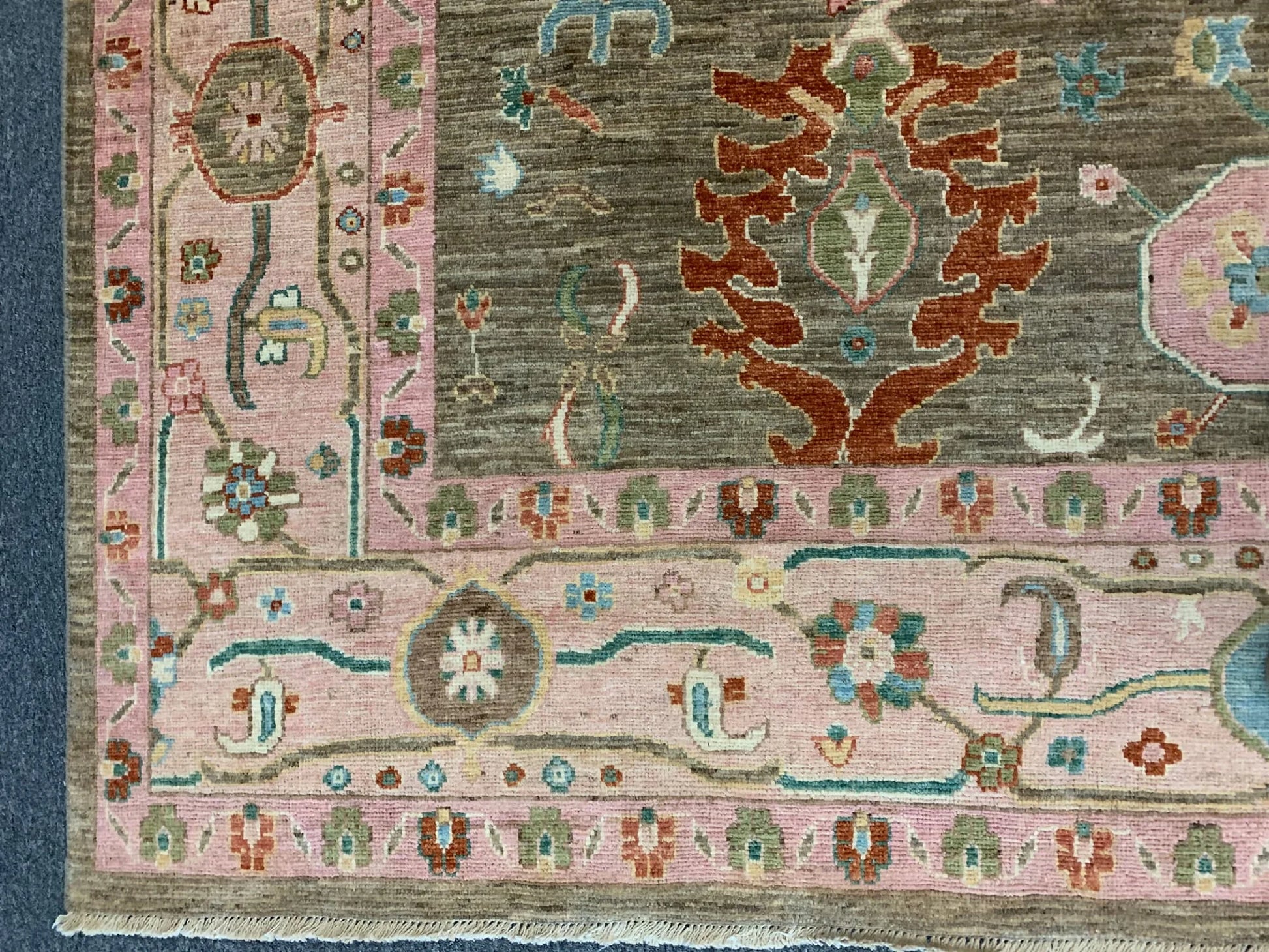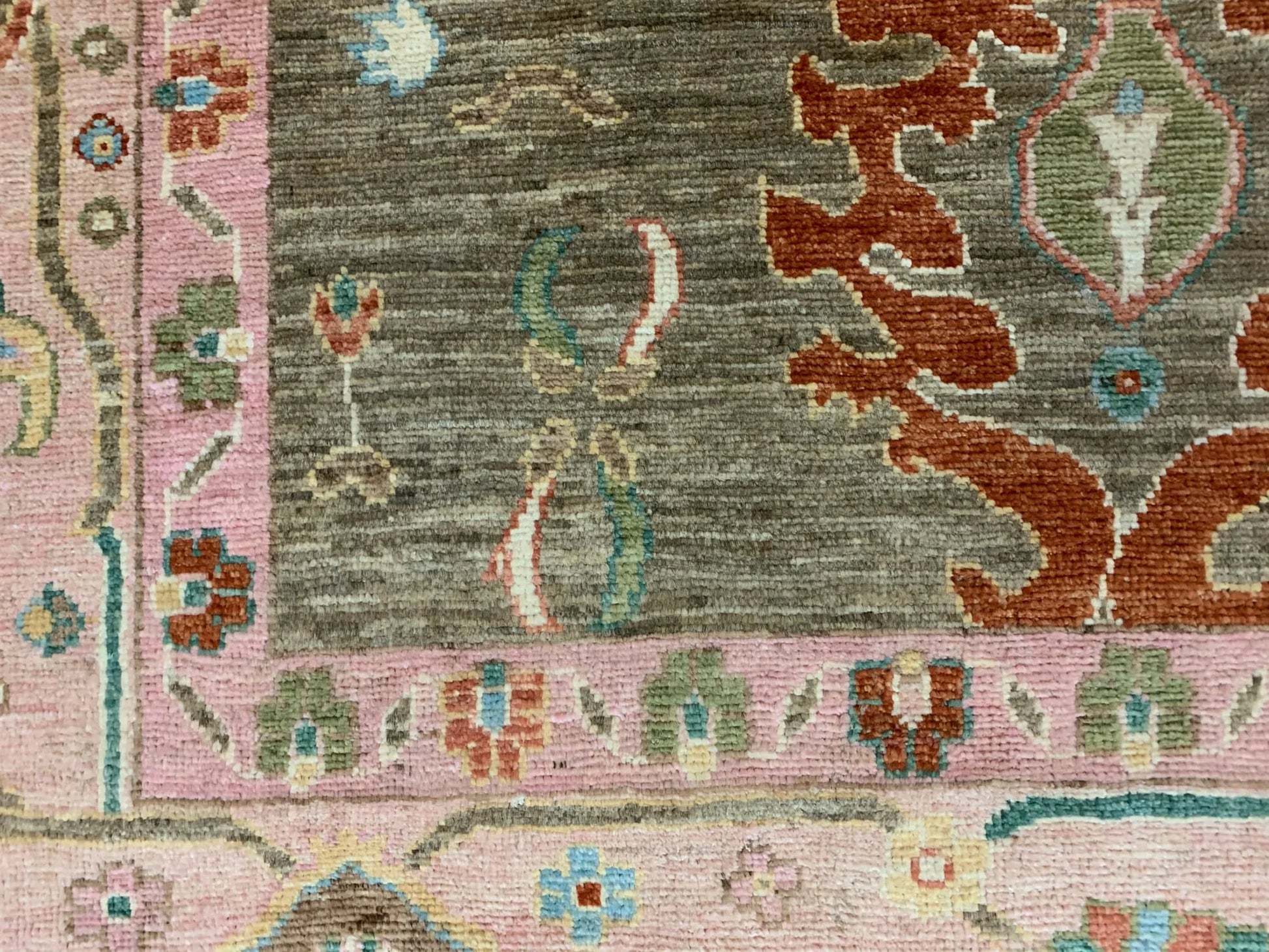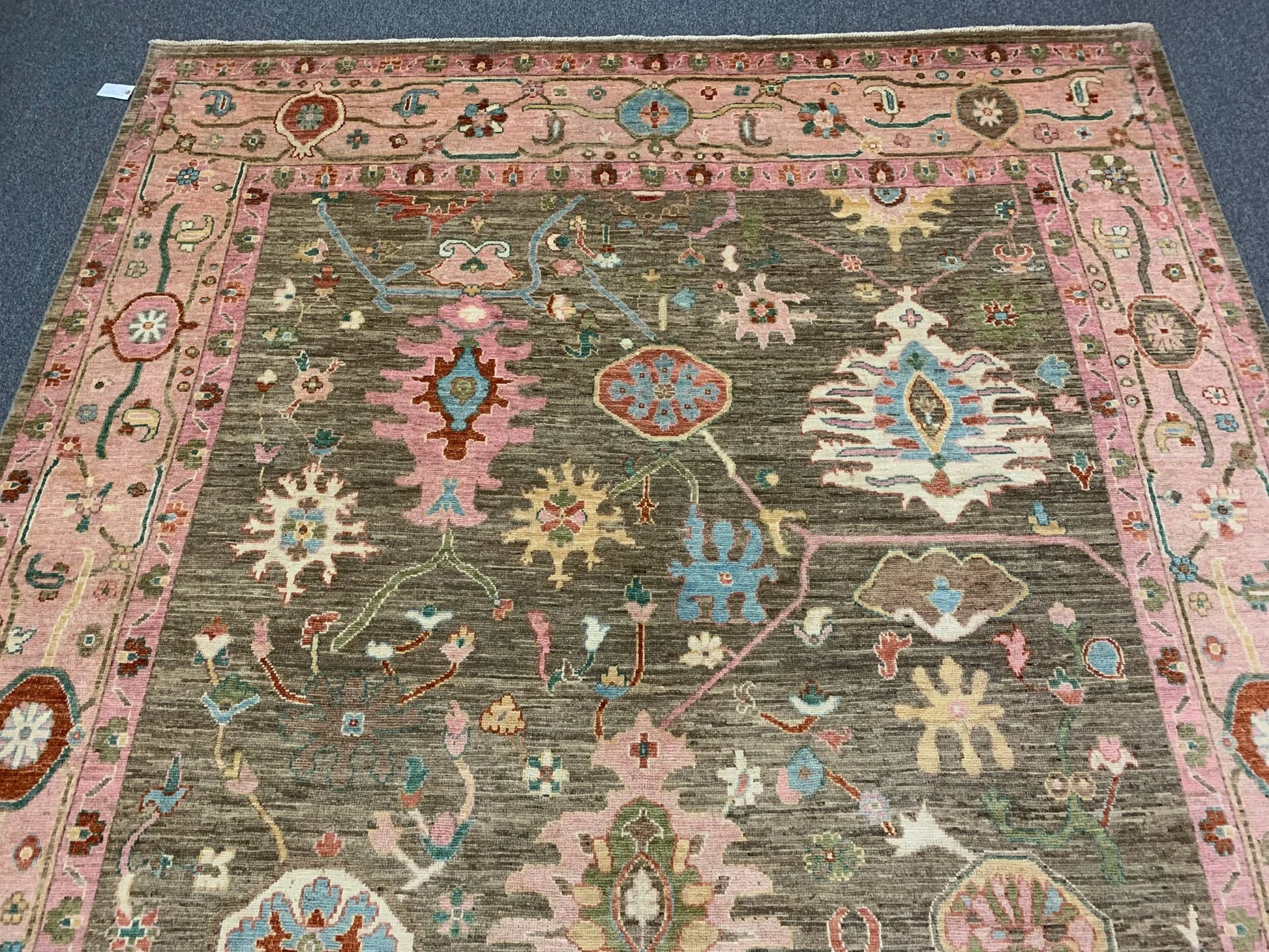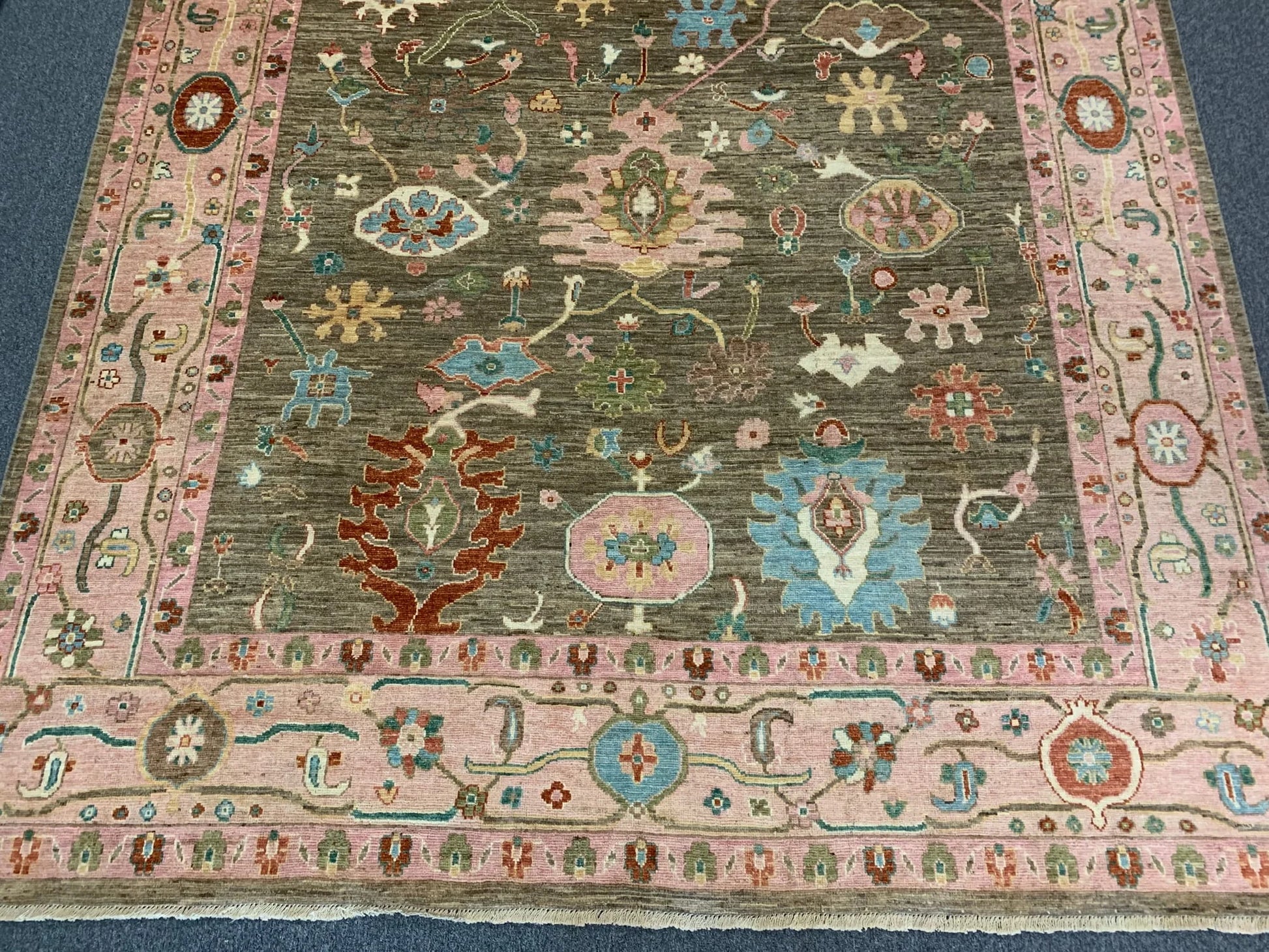 Green/Pink Oushak 9X12 Handmade Wool Rug # 12198
