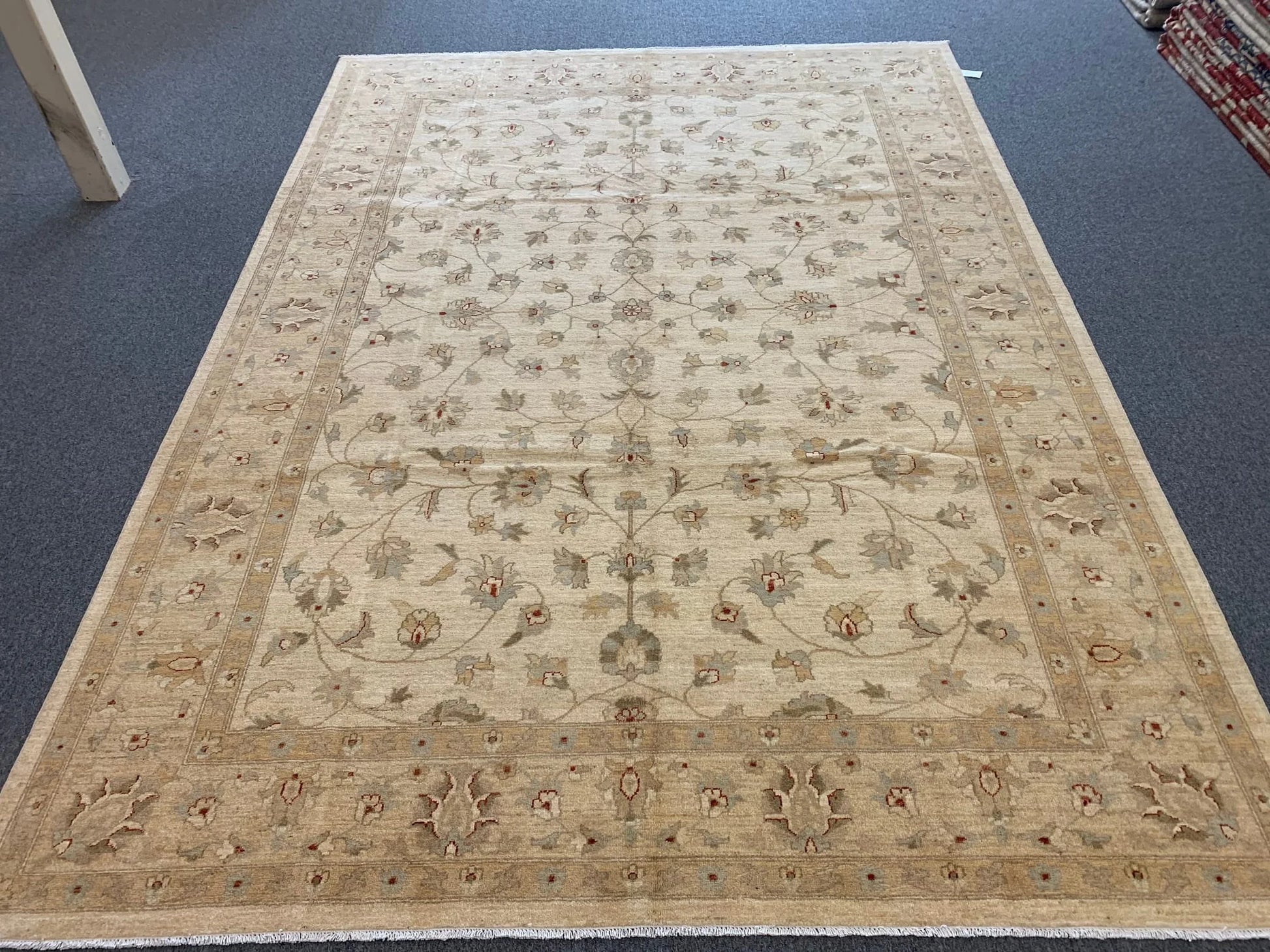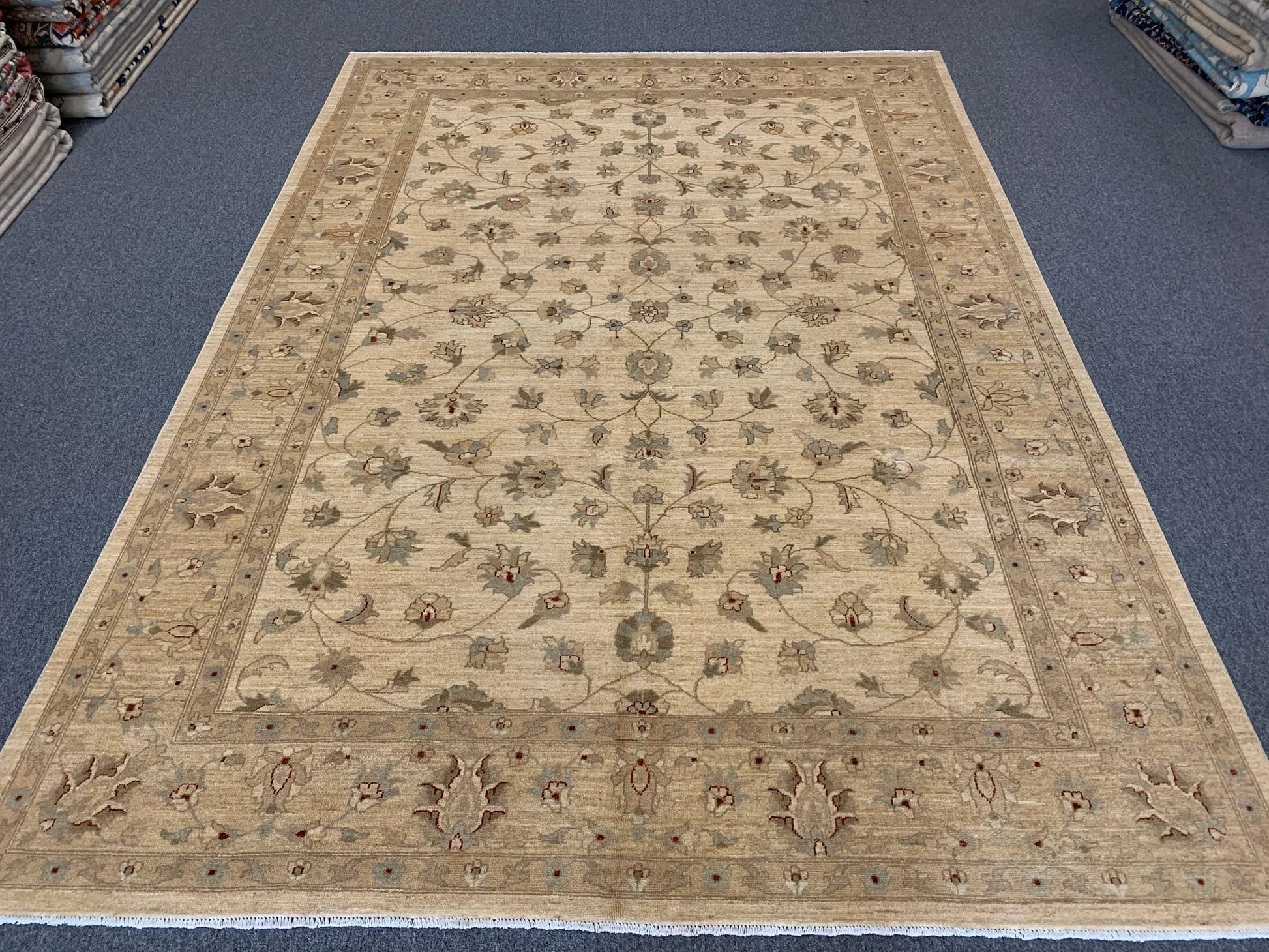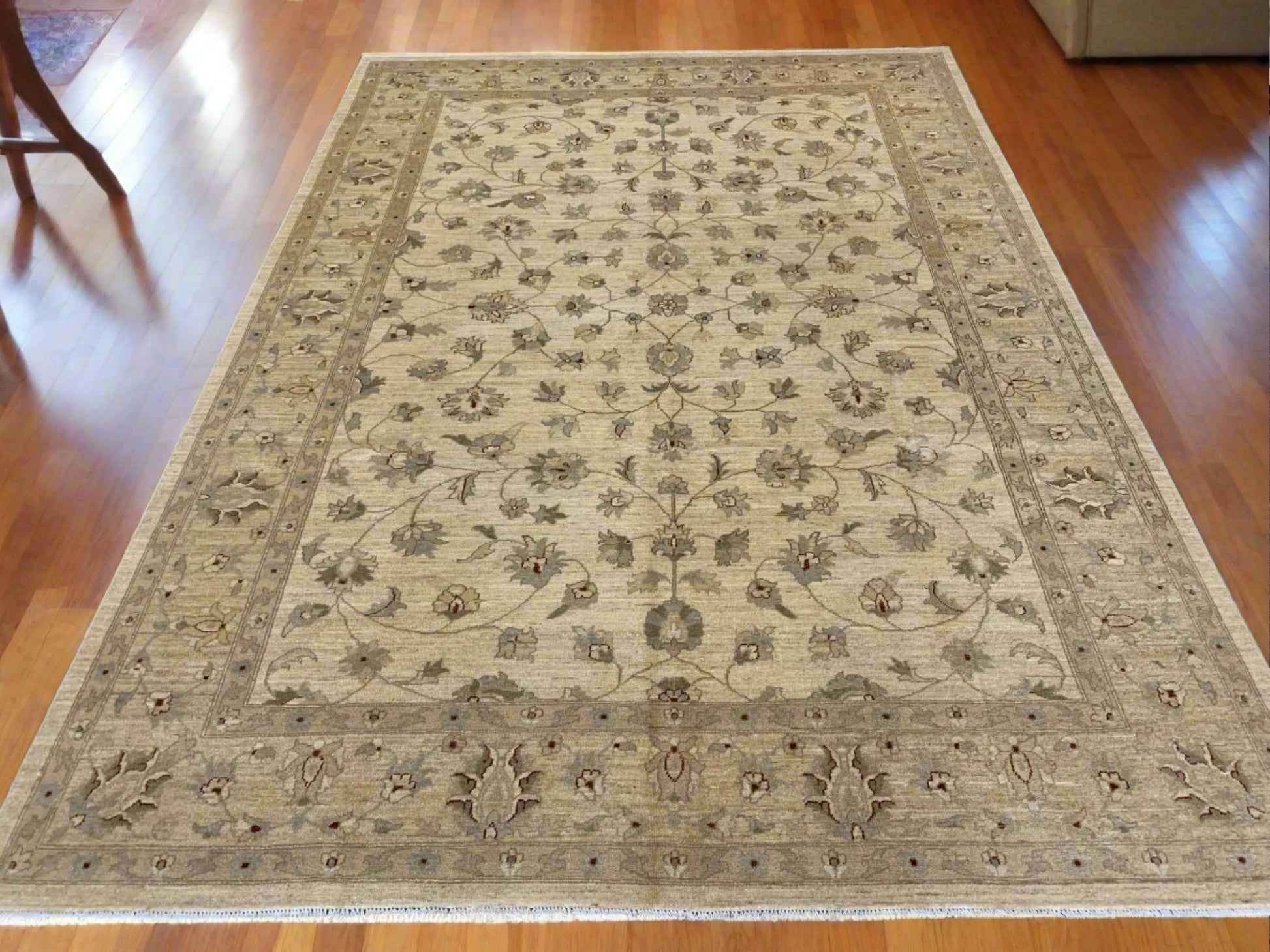 Ivory/Gold Chobi 8X11 Ziegler Handmade Wool Rug # 7960