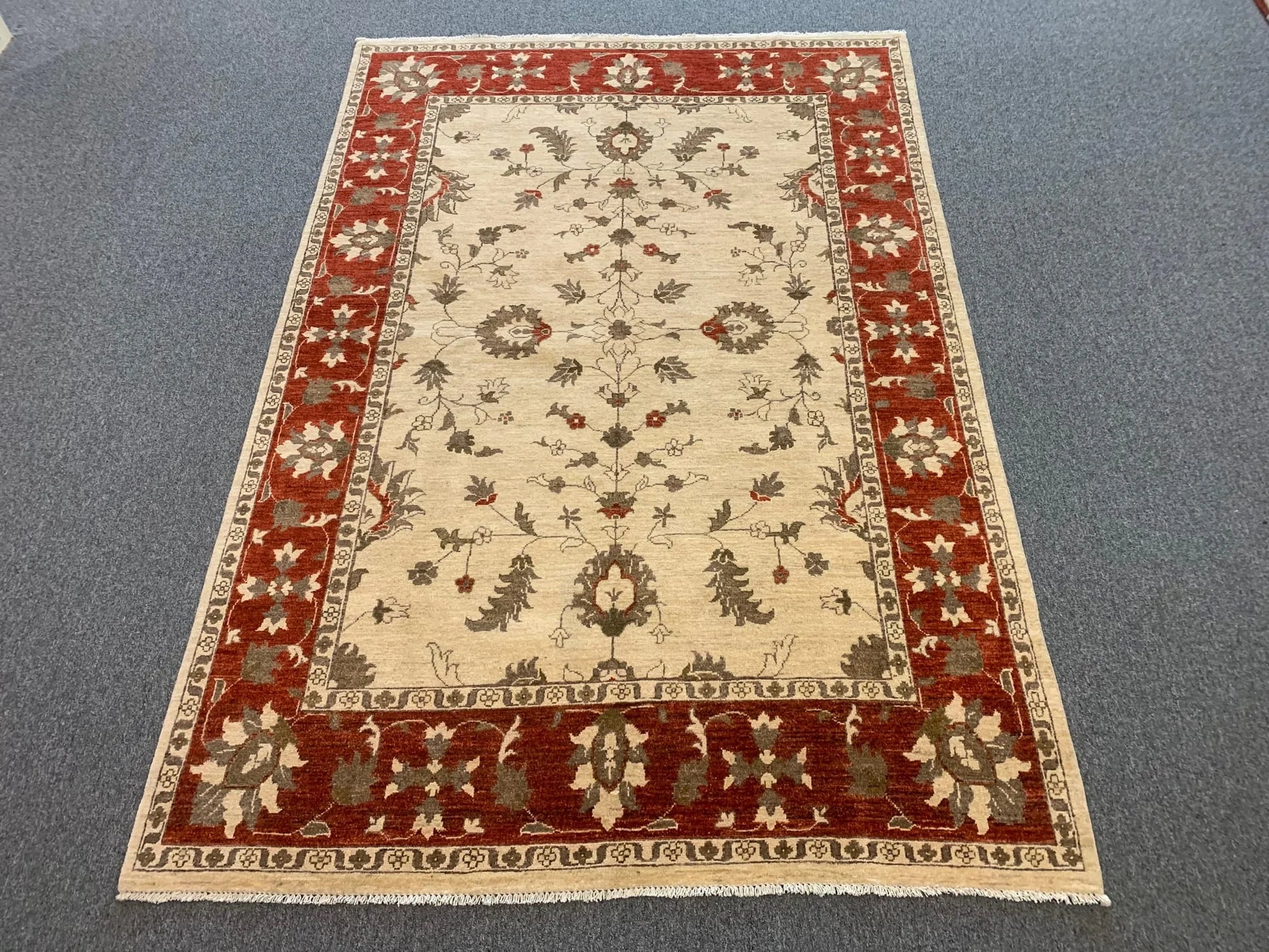 Ivory/Rest Oushak 6X8 Handmade Wool Rug # 8710