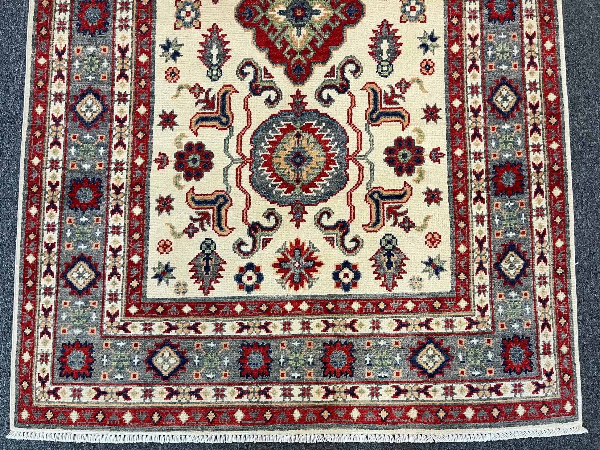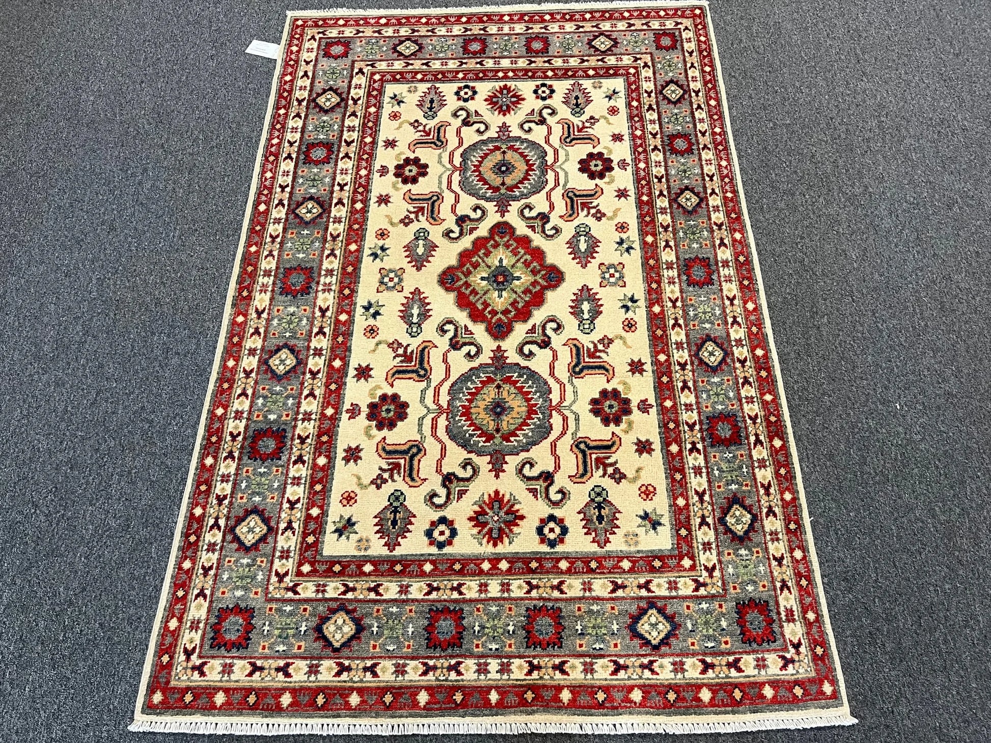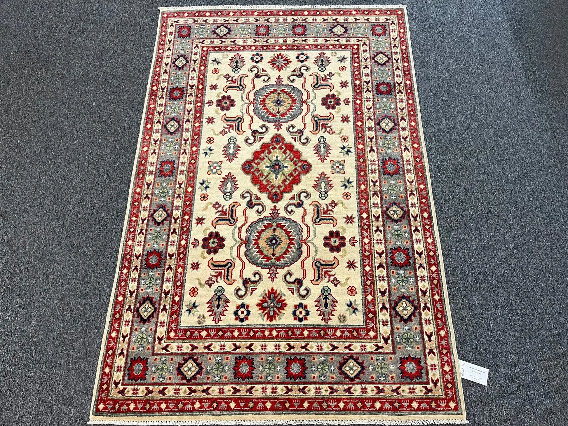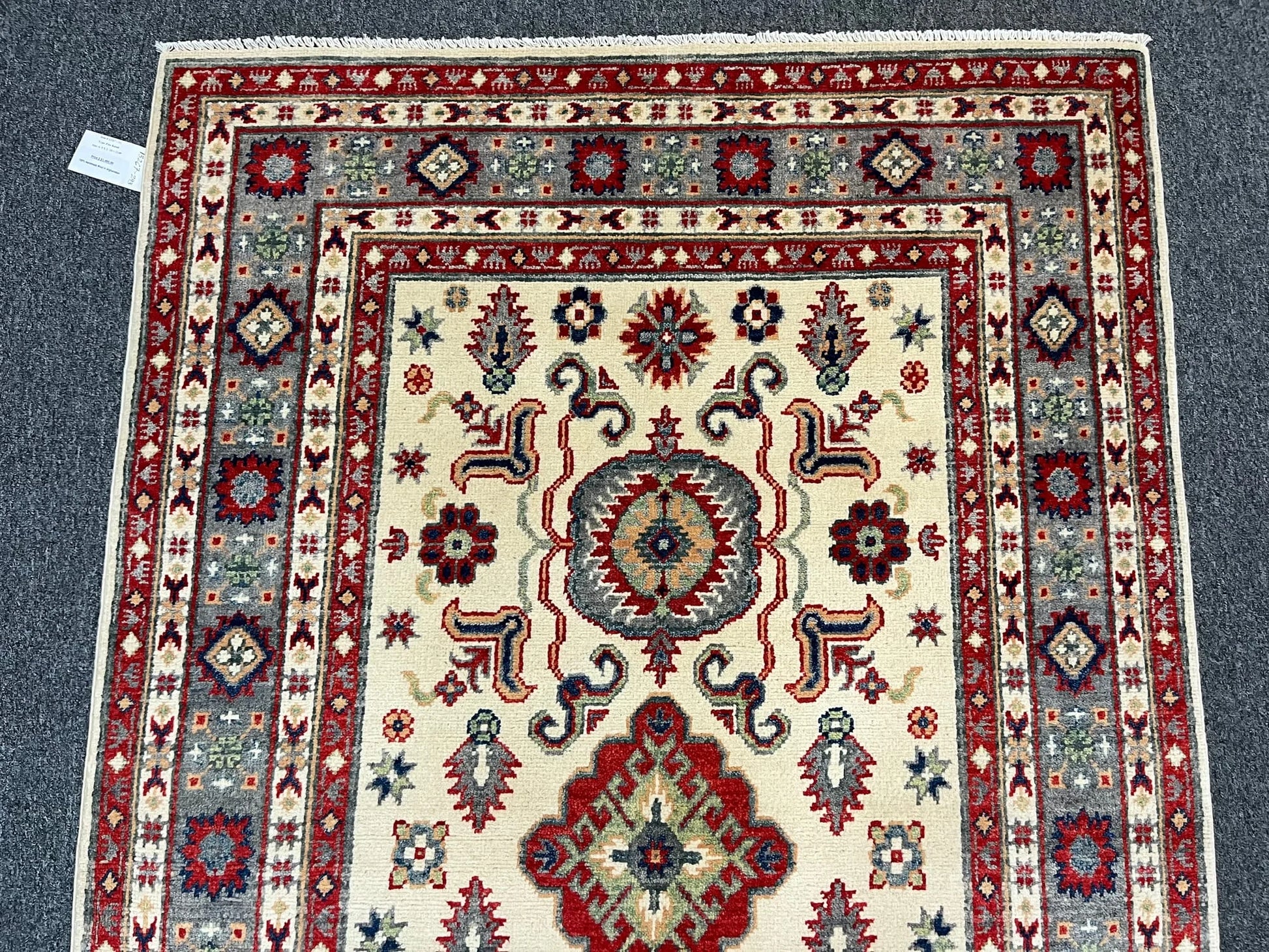 Kazak Beige Geometric 4X6 Handmade Wool Rug # 13267