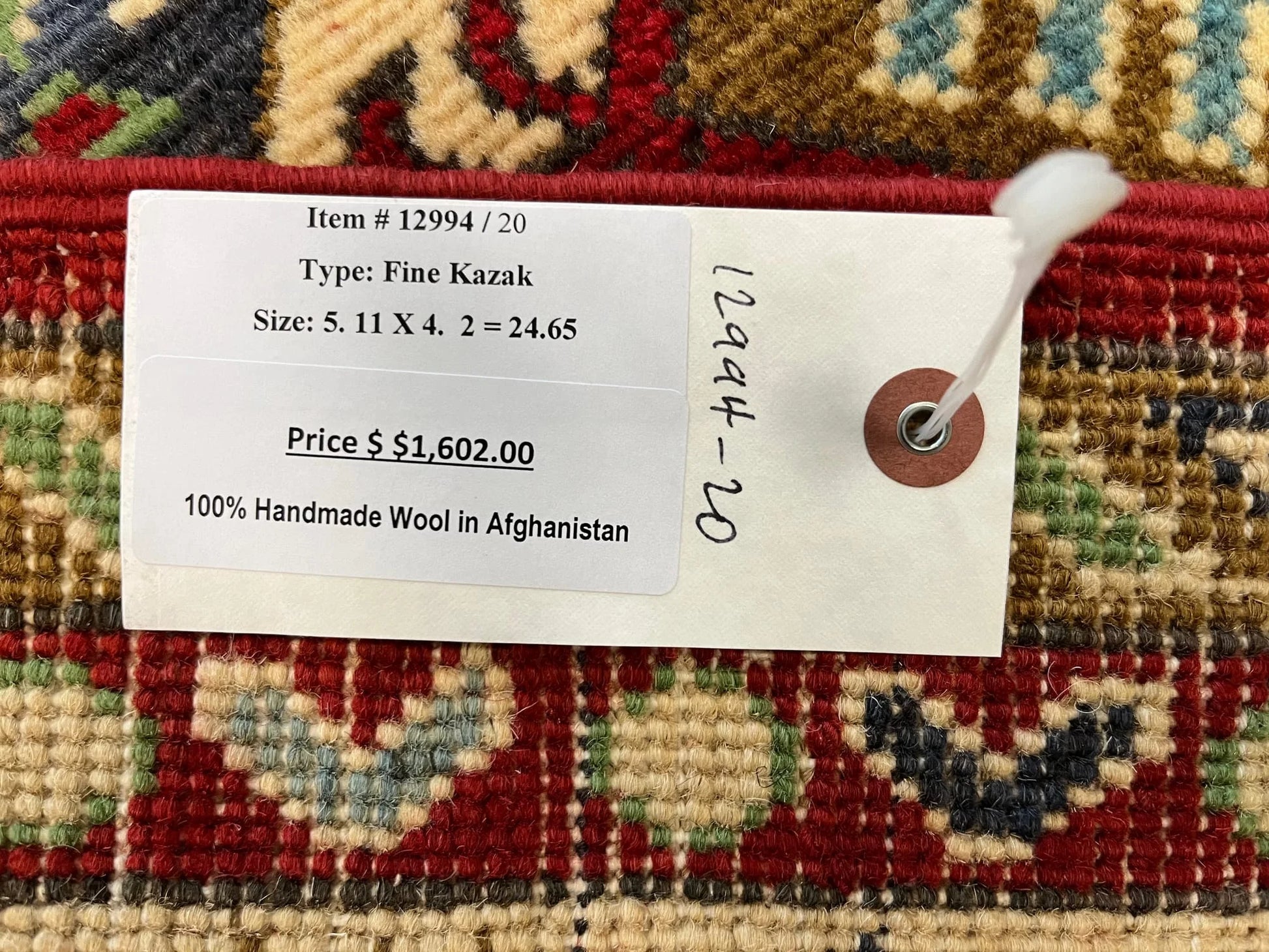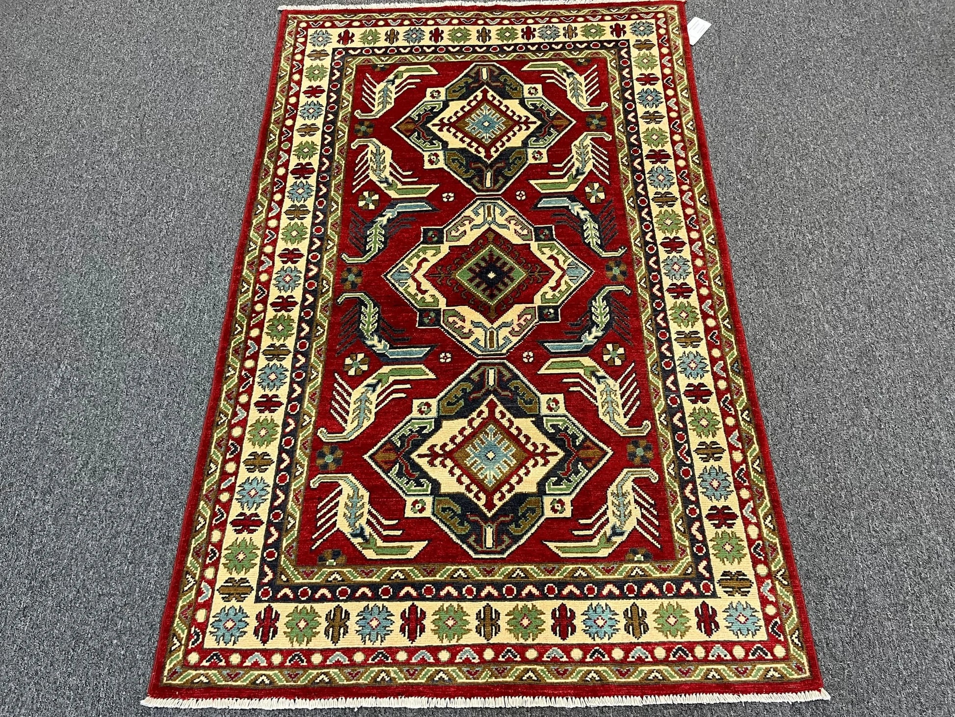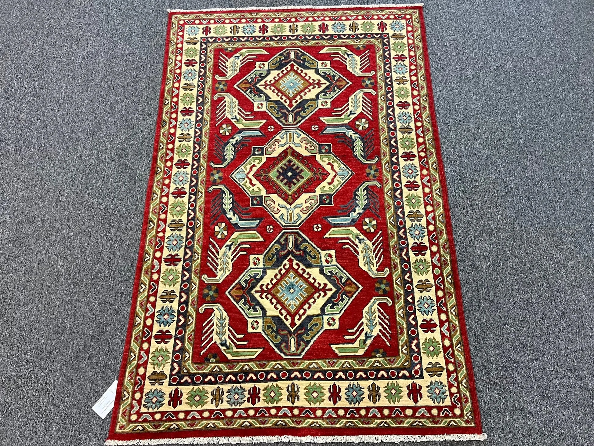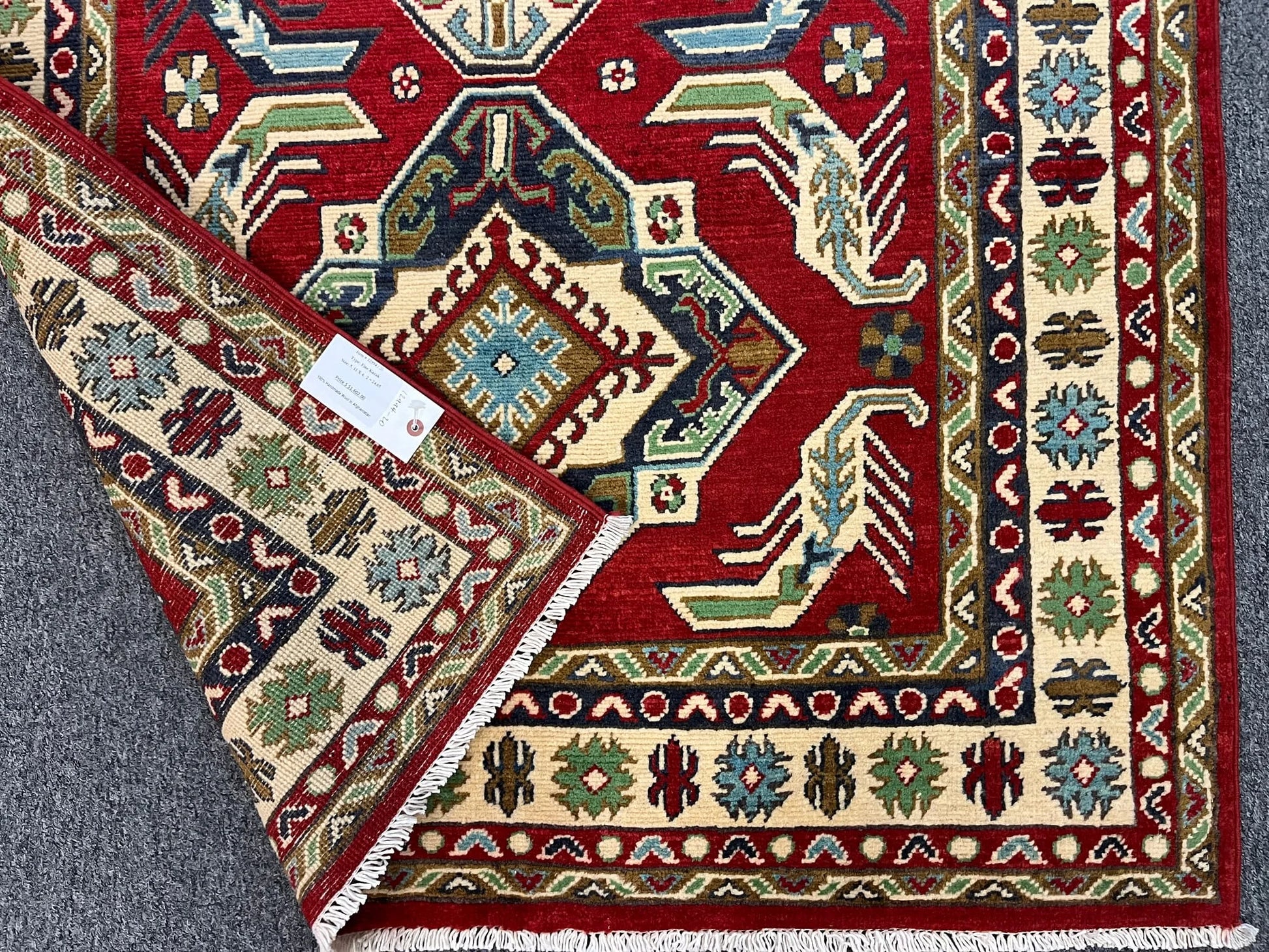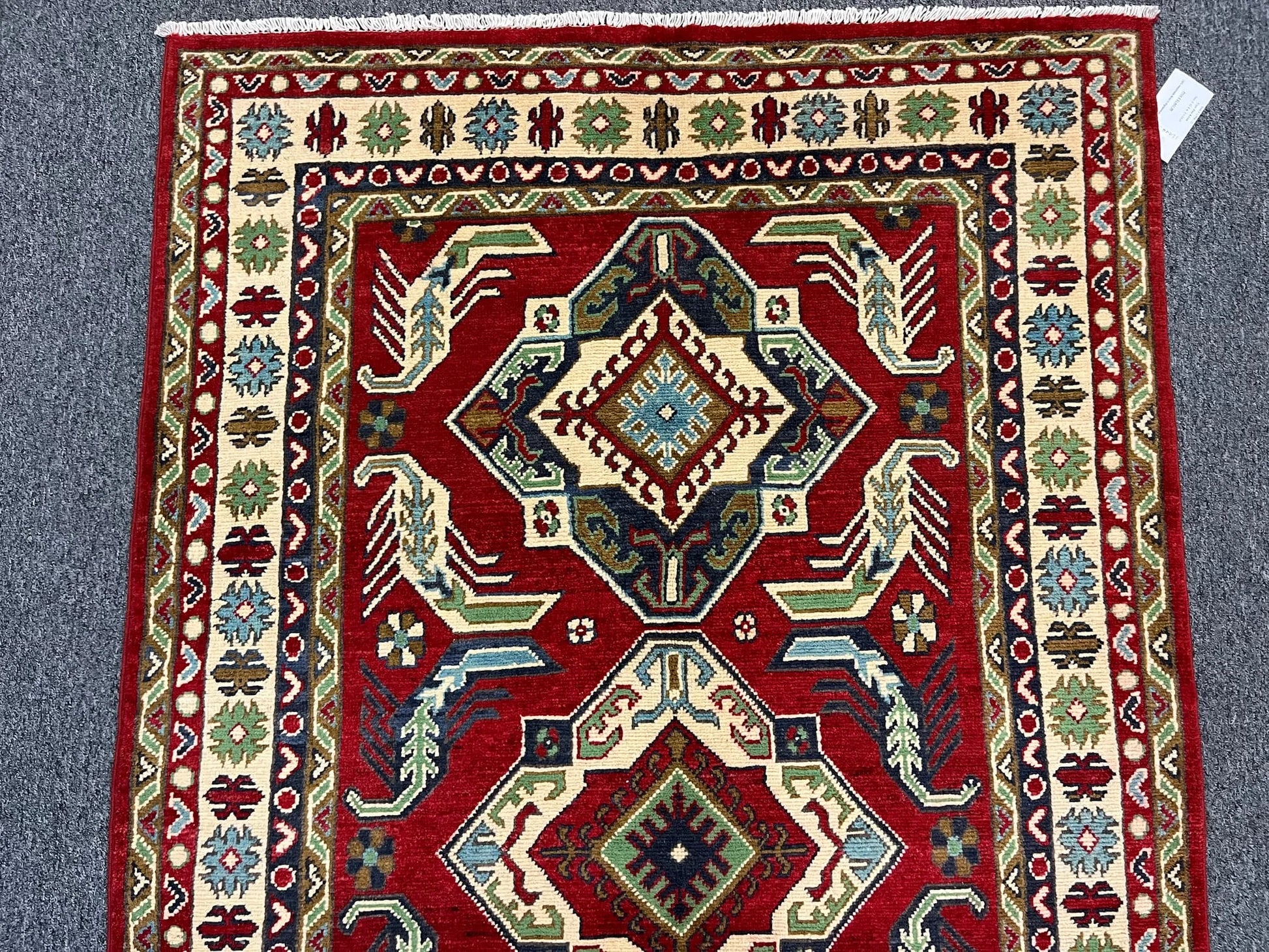 Kazak Dark Red Geometric 4X6 Handmade Wool Rug # 12994