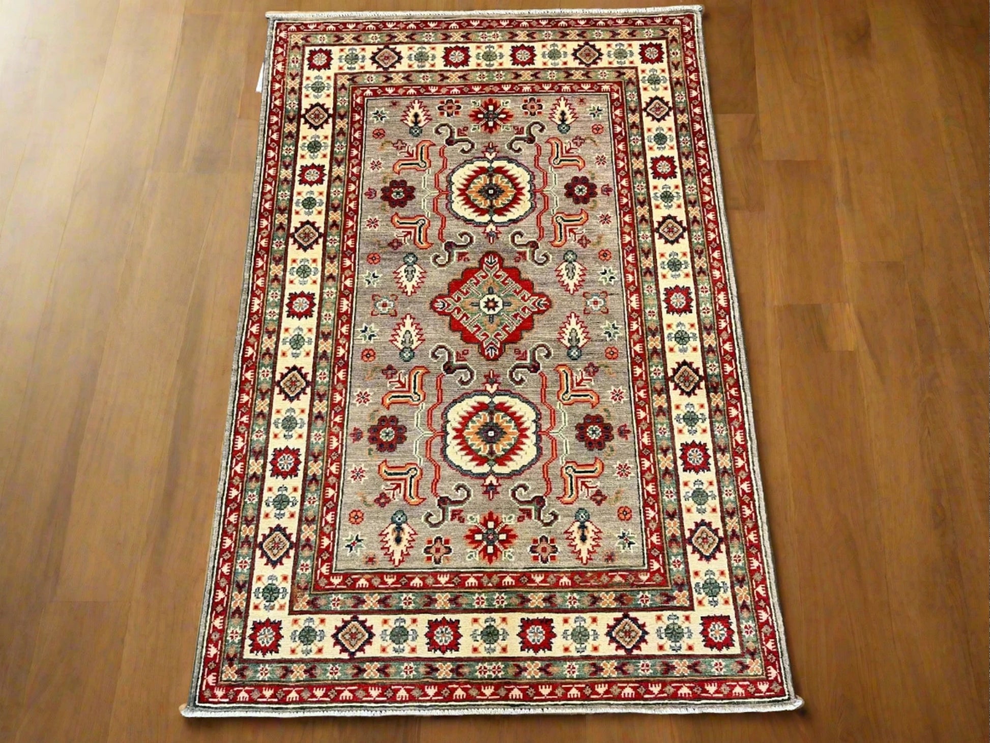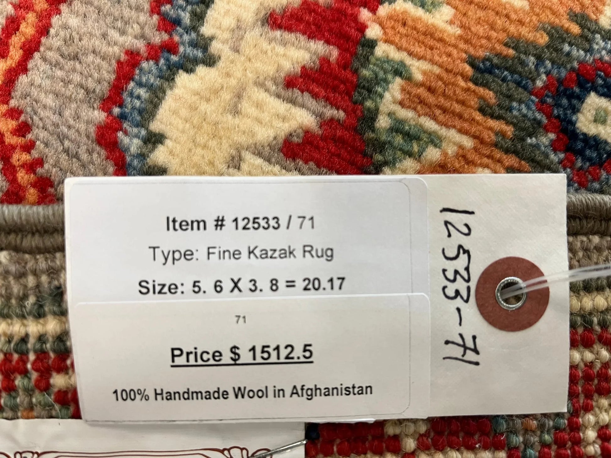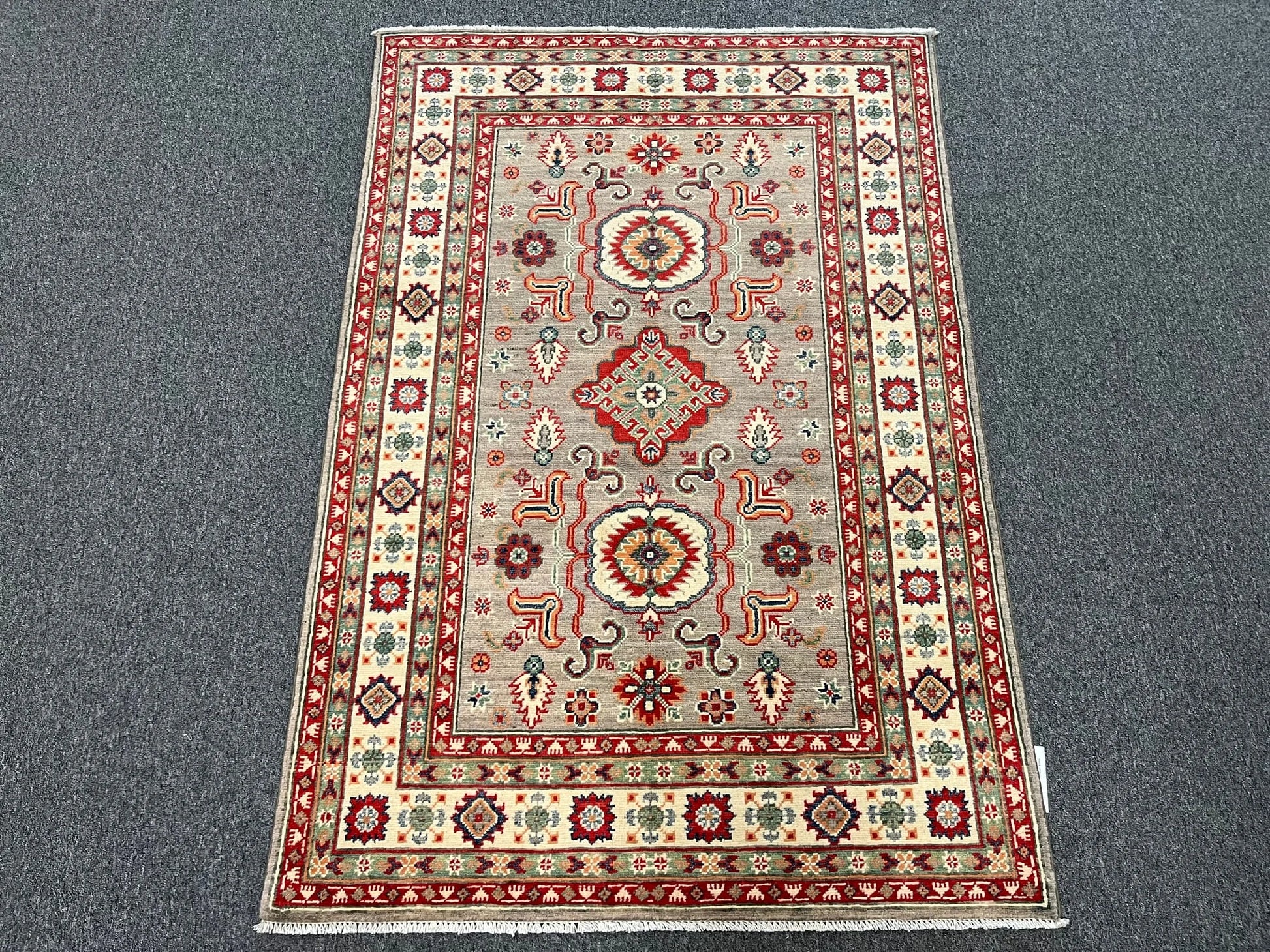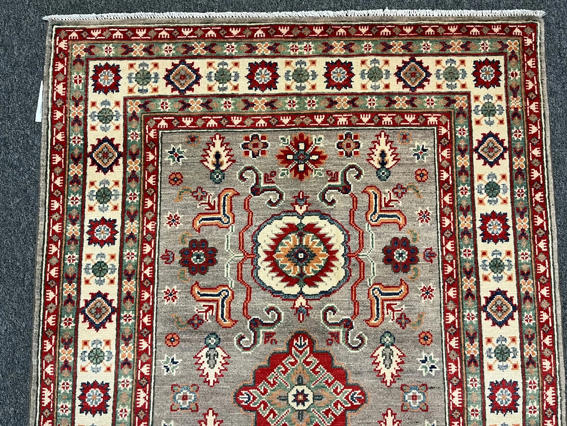 Kazak Gary Brown 4X6 Handmade Wool Rug # 12533