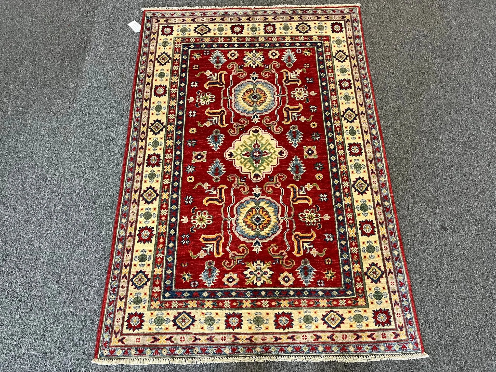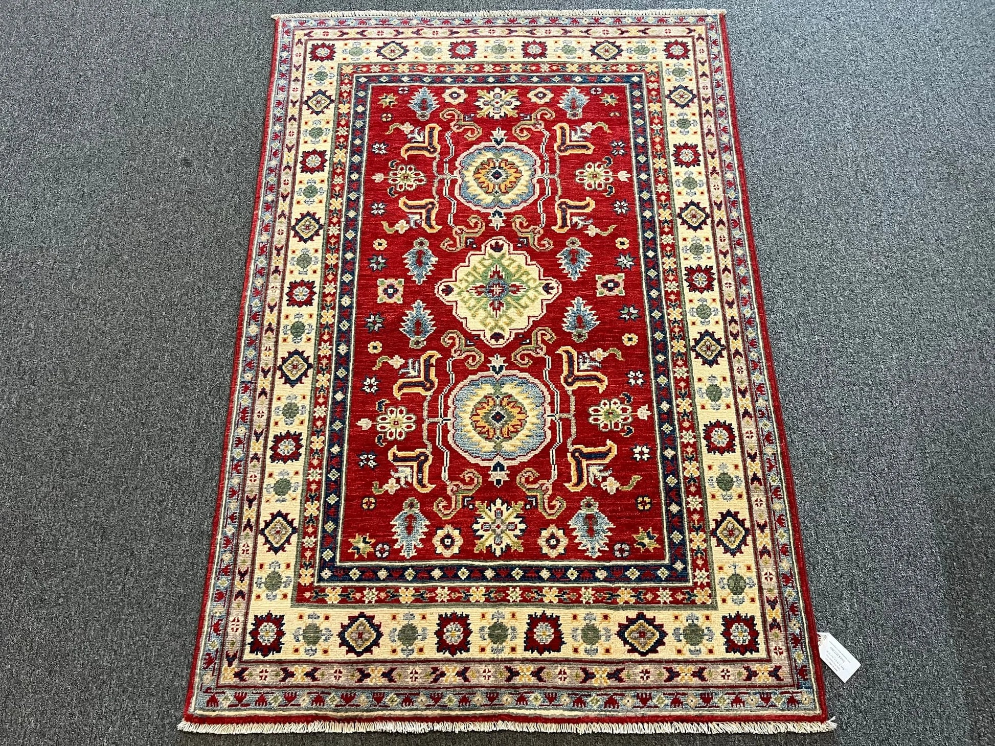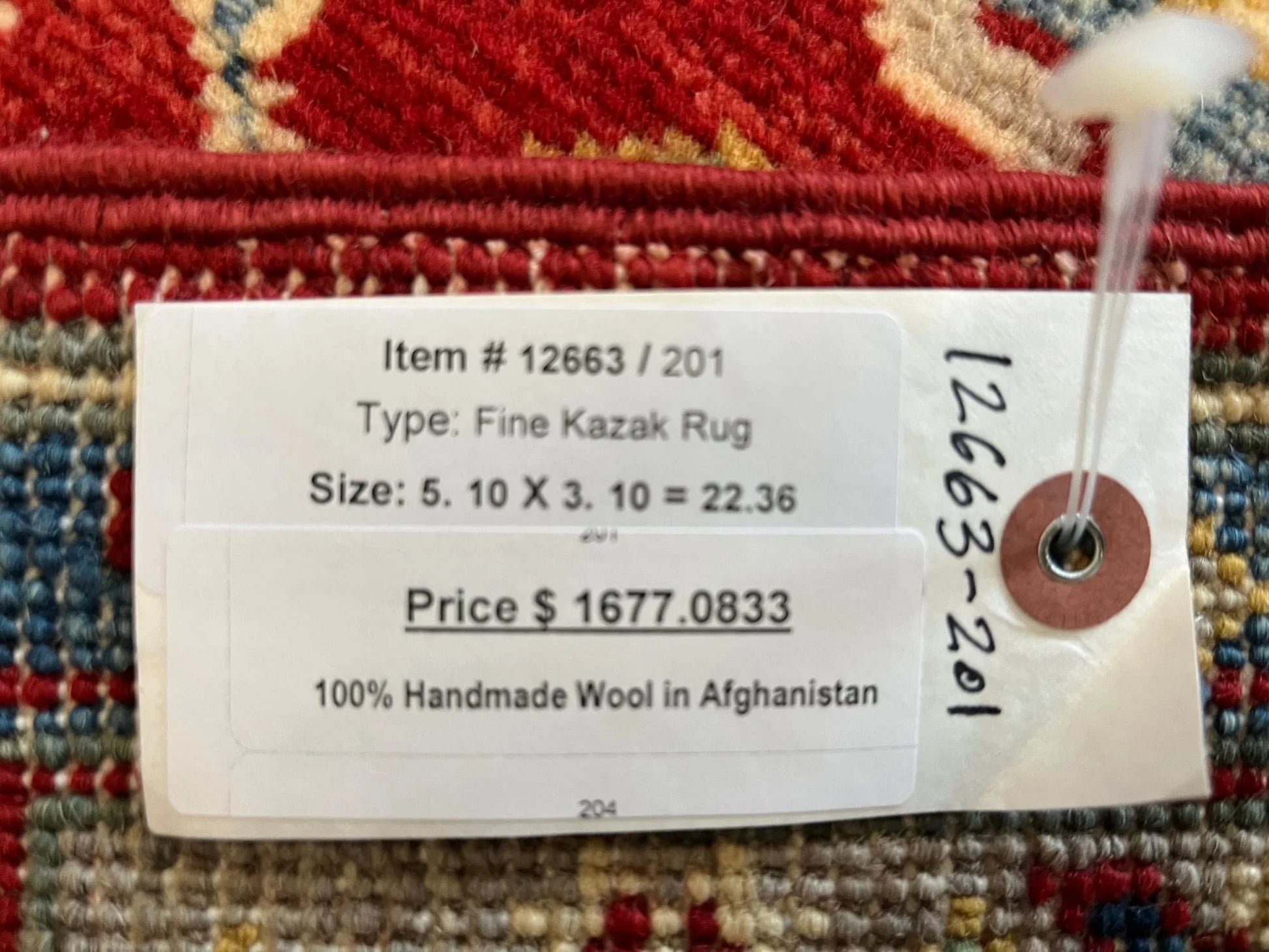 Kazak Geometric 4X6 Handmade Wool Rug # 12663