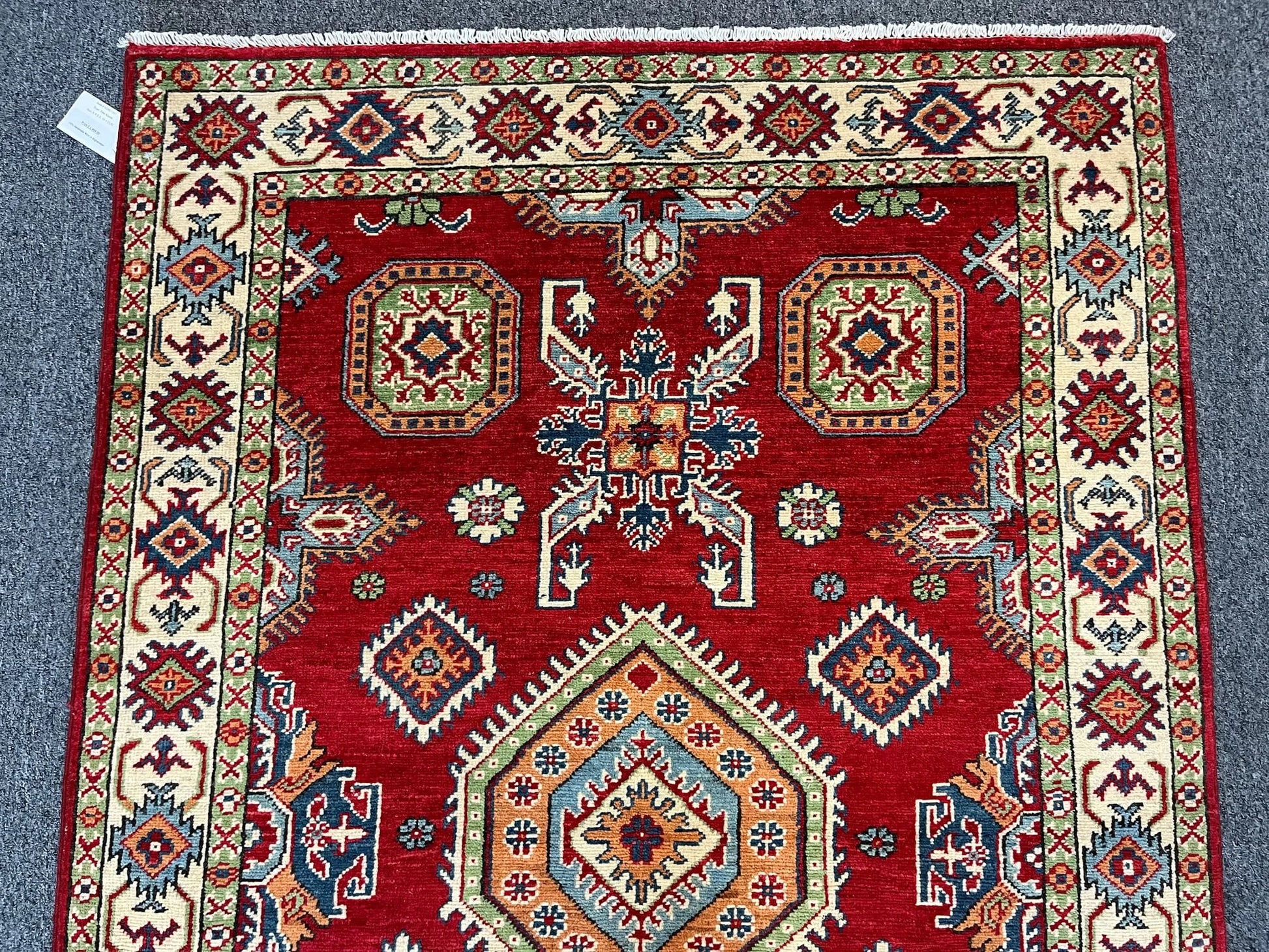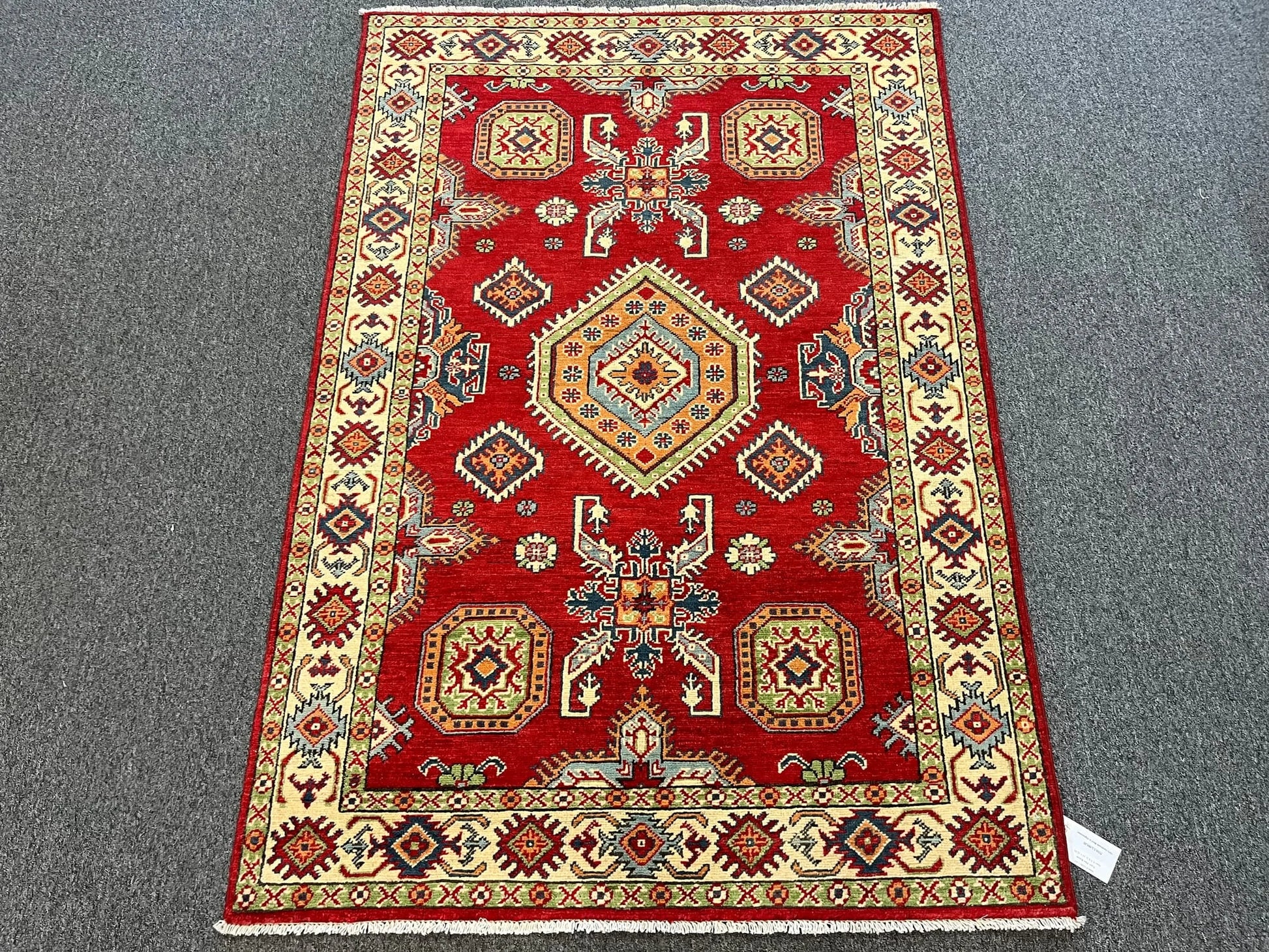 Kazak Geometric 4X6 Handmade Wool Rug # 13281