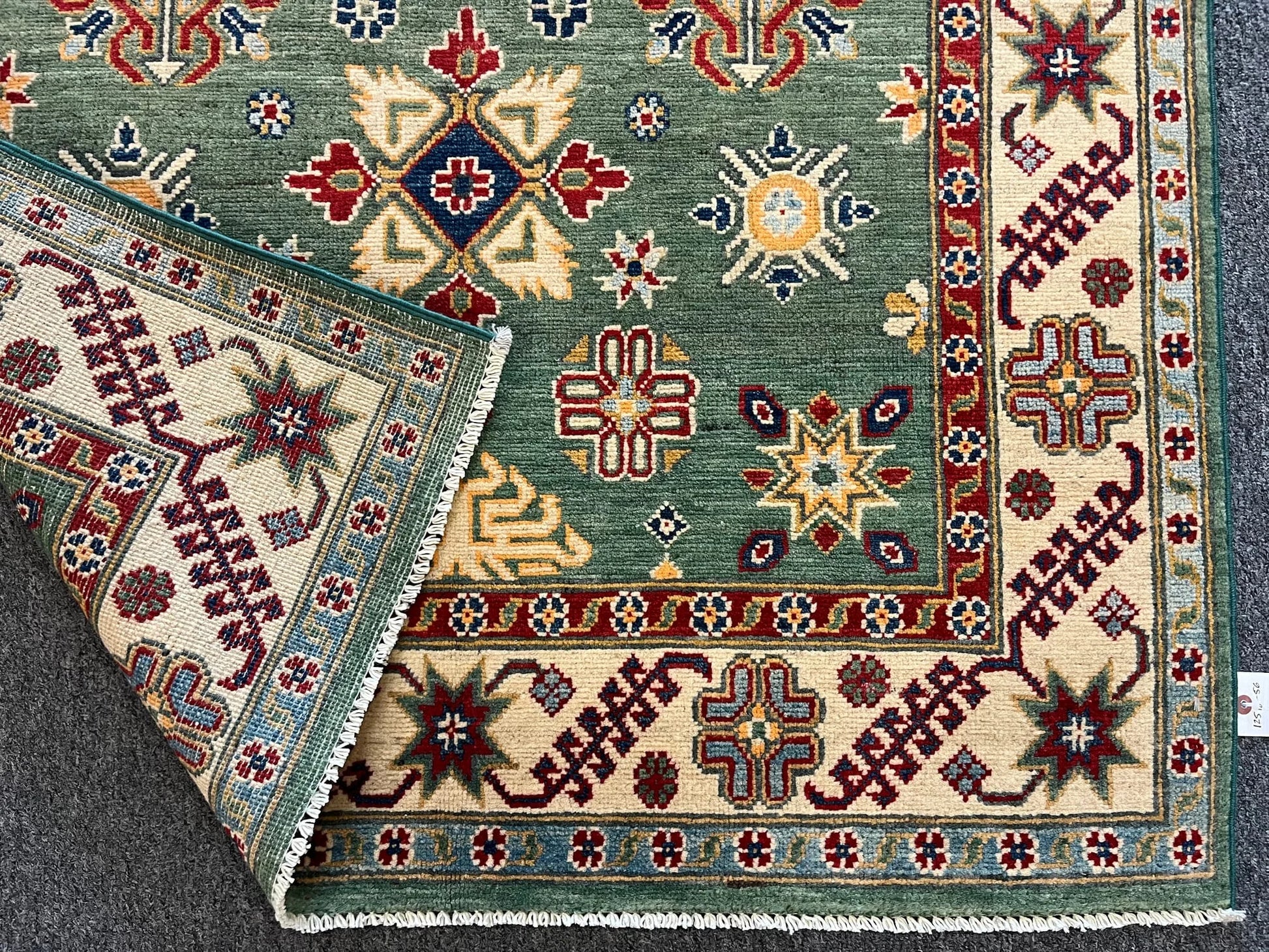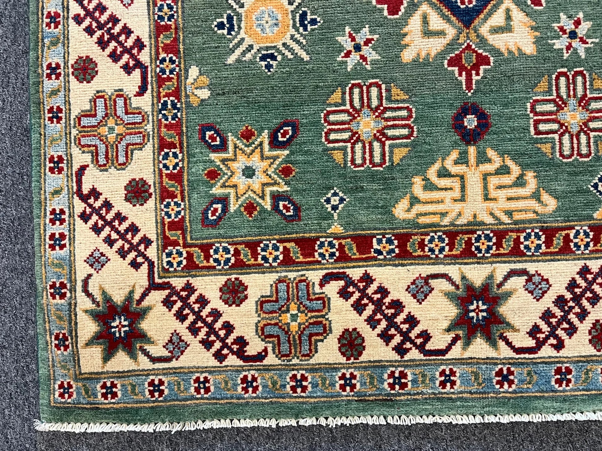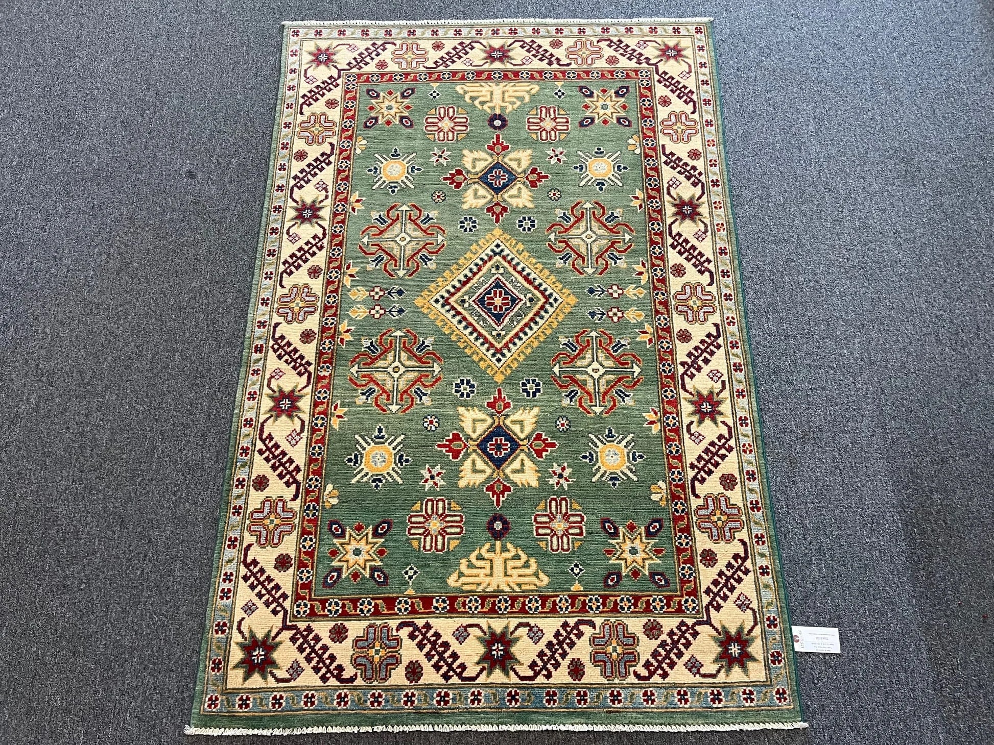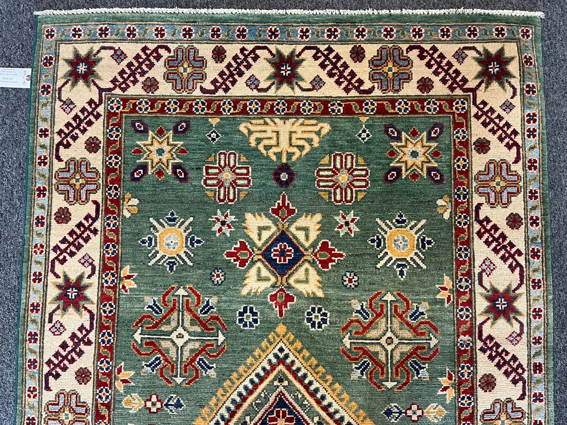 Kazak Geometric Green 4X6 Handmade Wool Rug # 12518