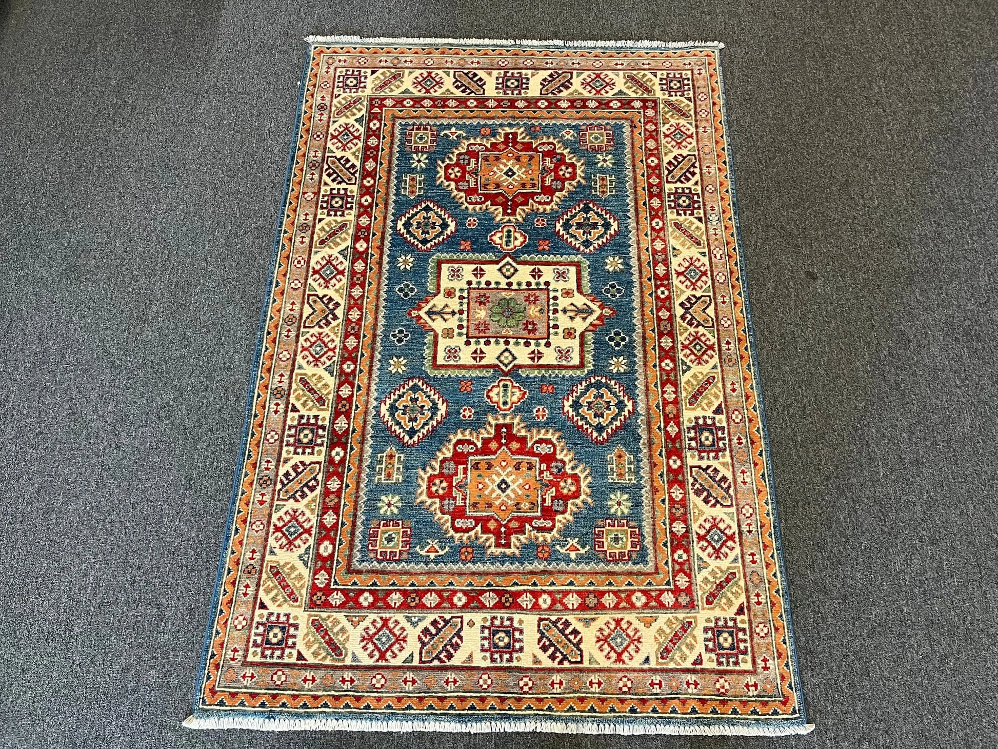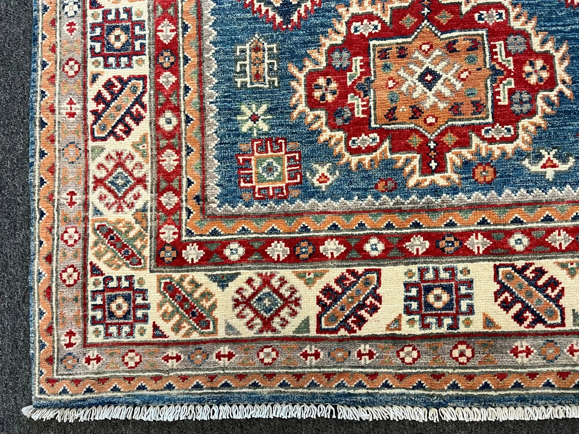 Kazak Geometric Light Blue 4X6 Handmade Wool Rug # 12668